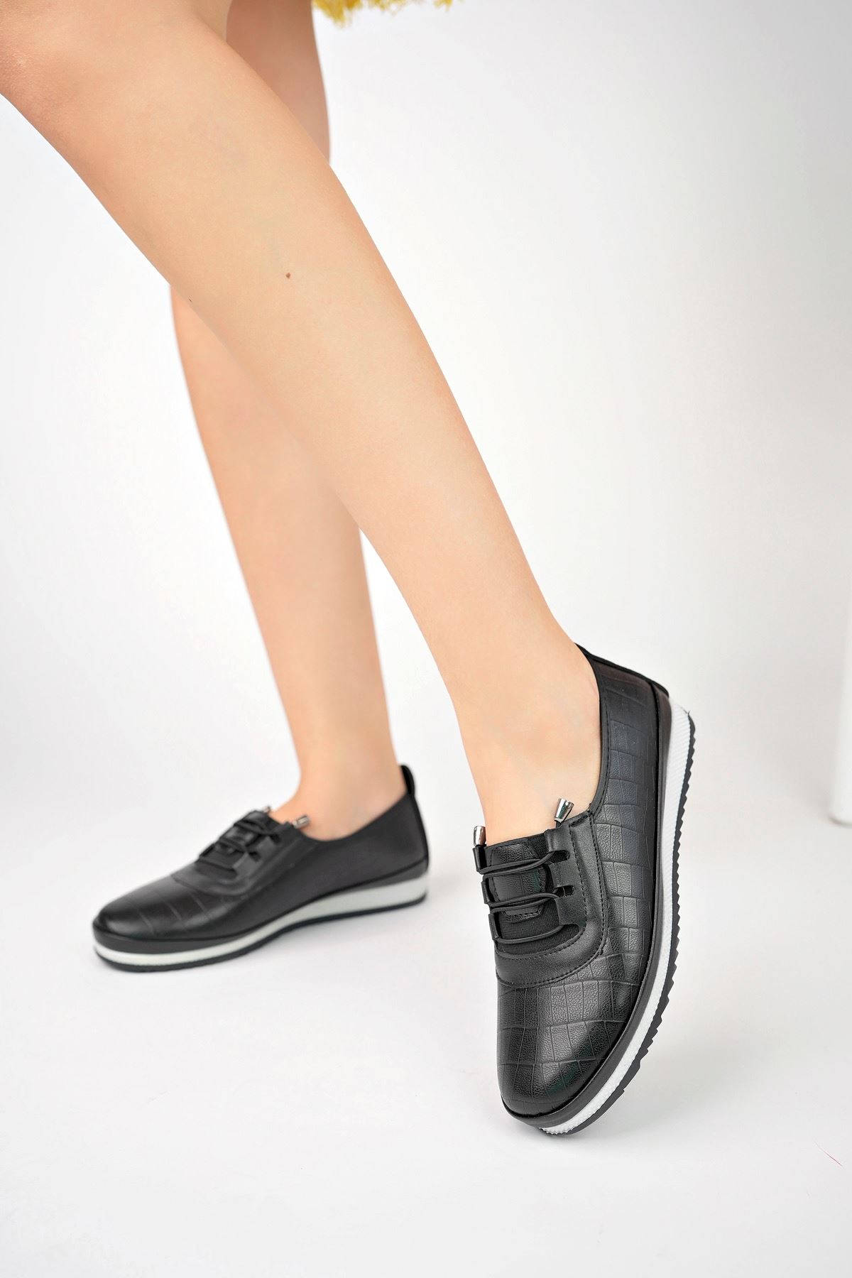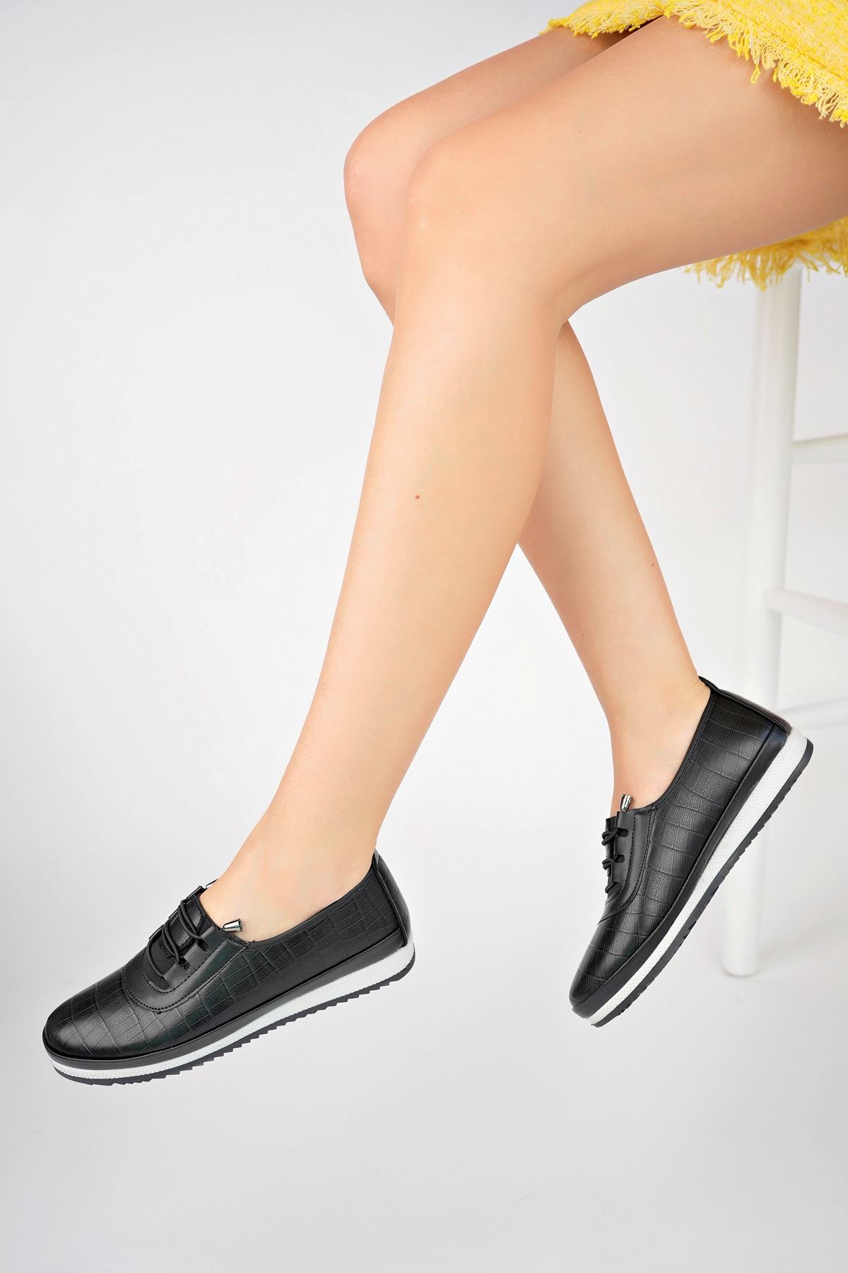 Ortopedik Ped Lastikli Siyah Kadın Ayakkabı