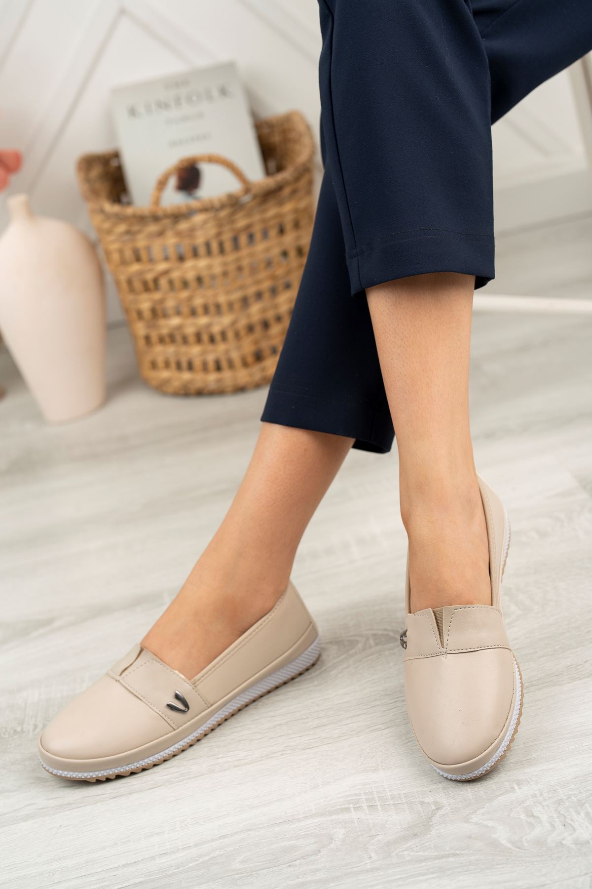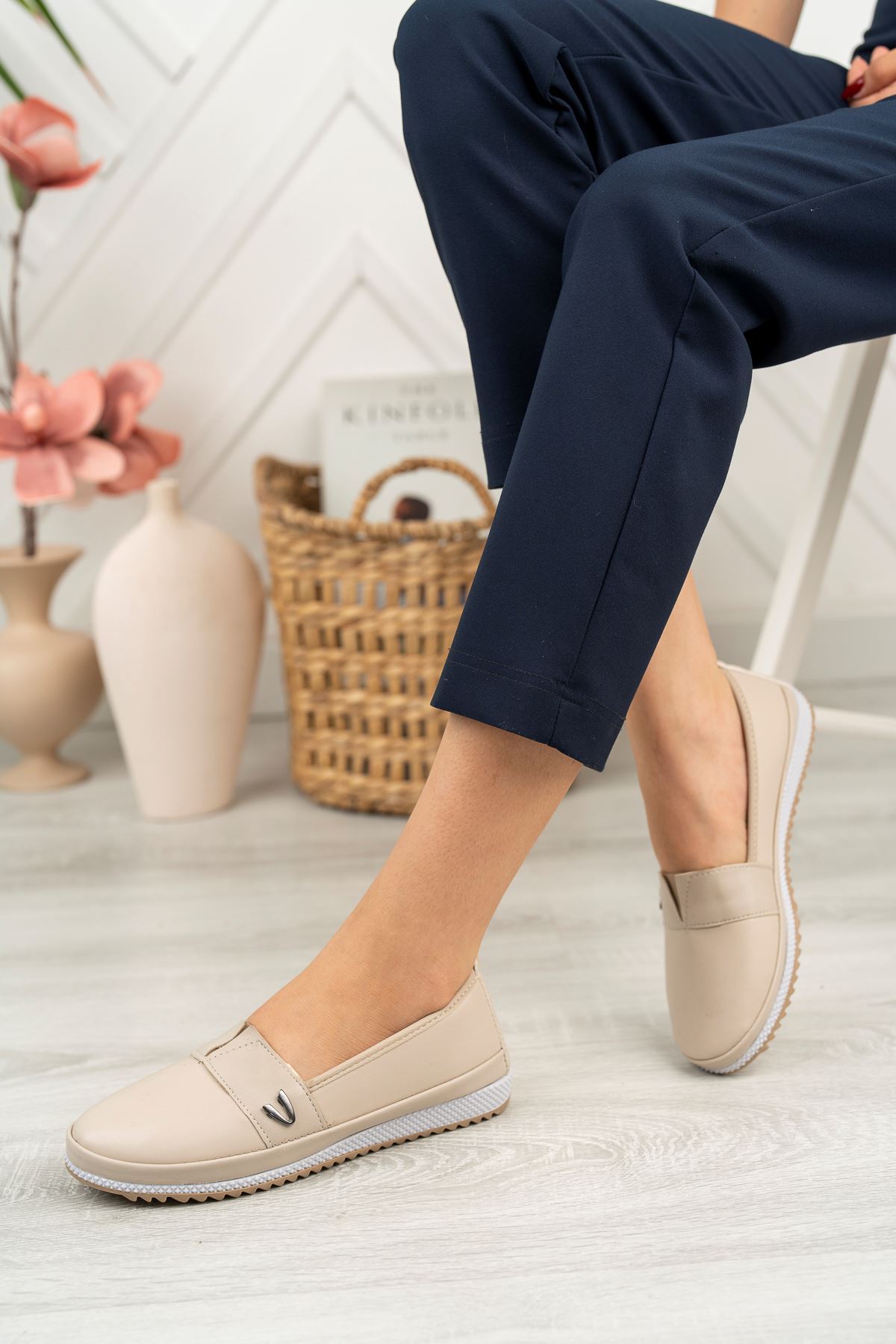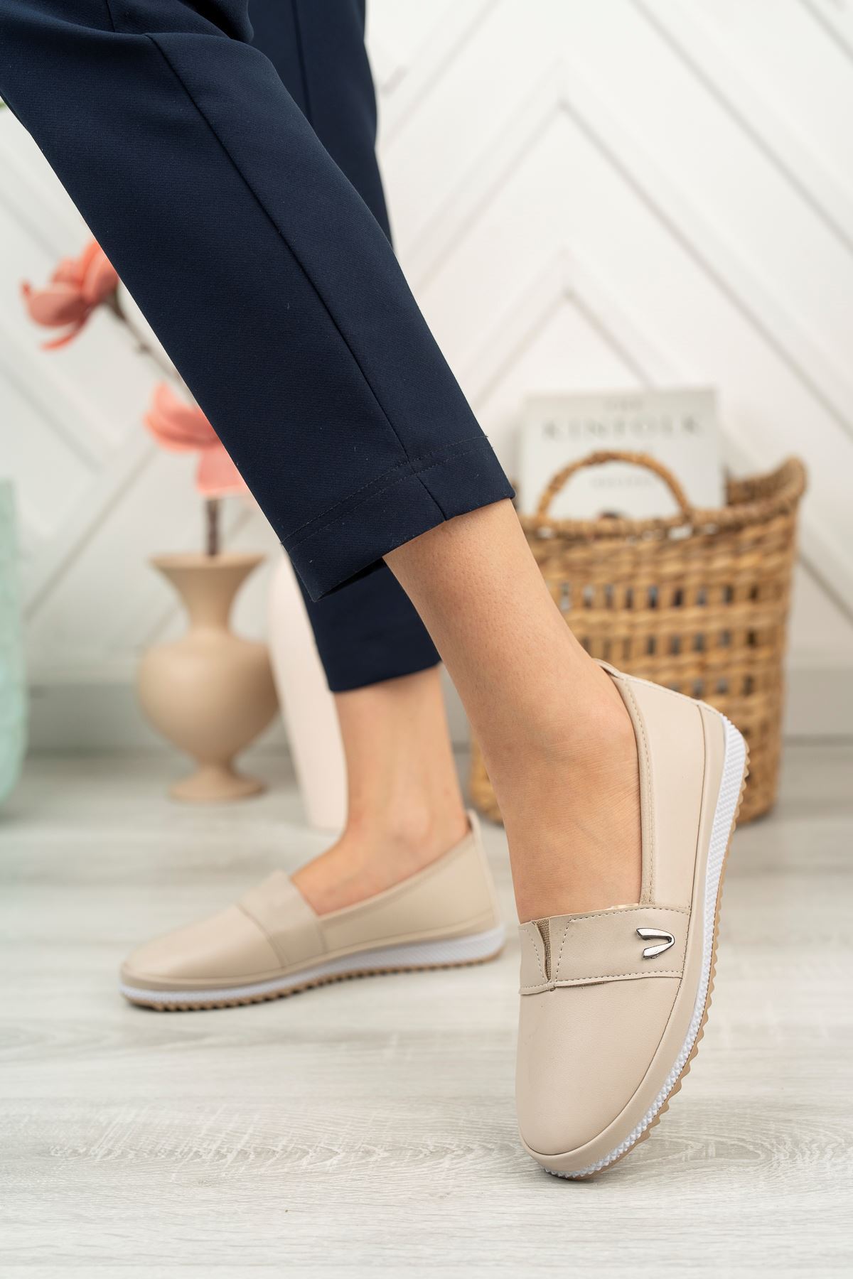 Ortapedik Taban Metal Detaylı Krem Kadın Ayakkabı