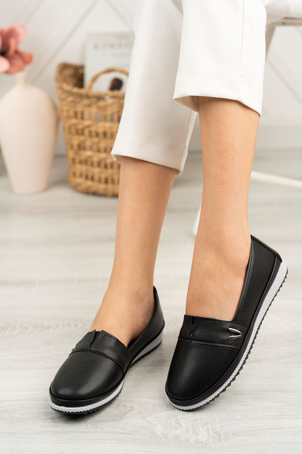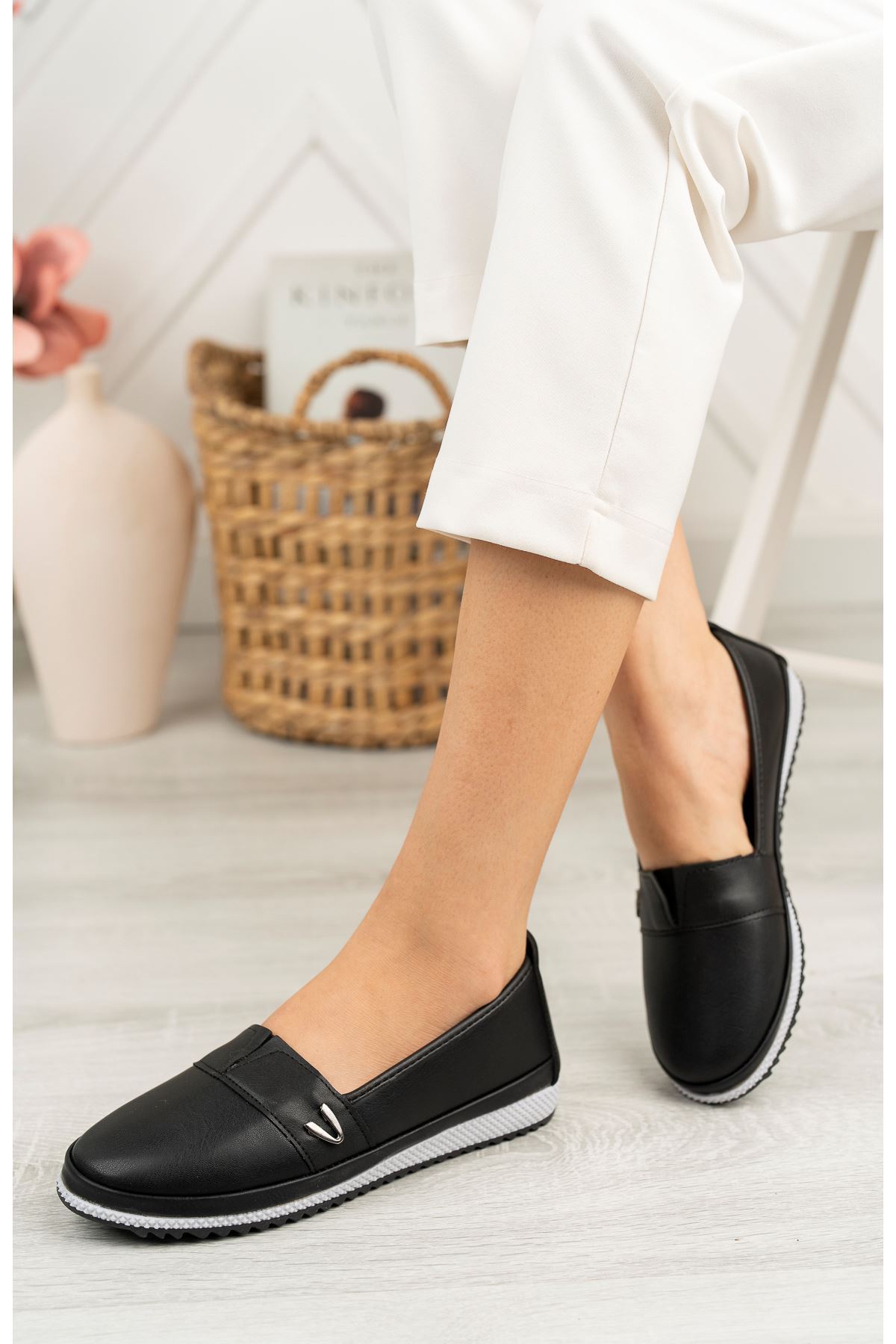 Ortapedik Taban Metal Detaylı Siyah Kadın Ayakkabı