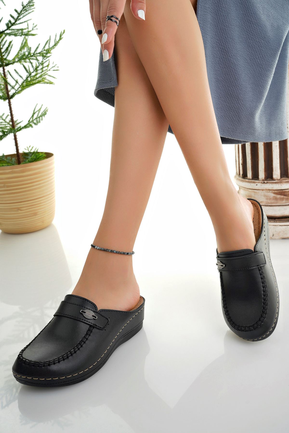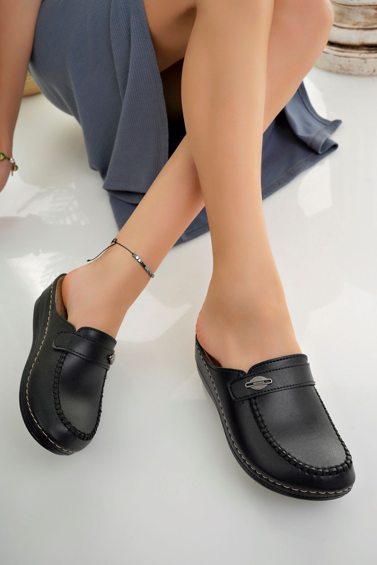 Ortapedik Taban Önü Kapalı Siyah Kadın Terlik