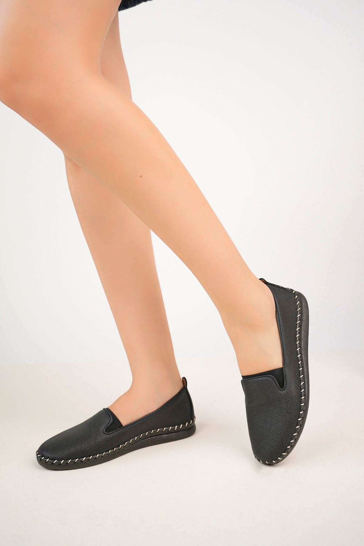 Ortopedik Ped Baskılı Siyah Kadın Ayakkabı