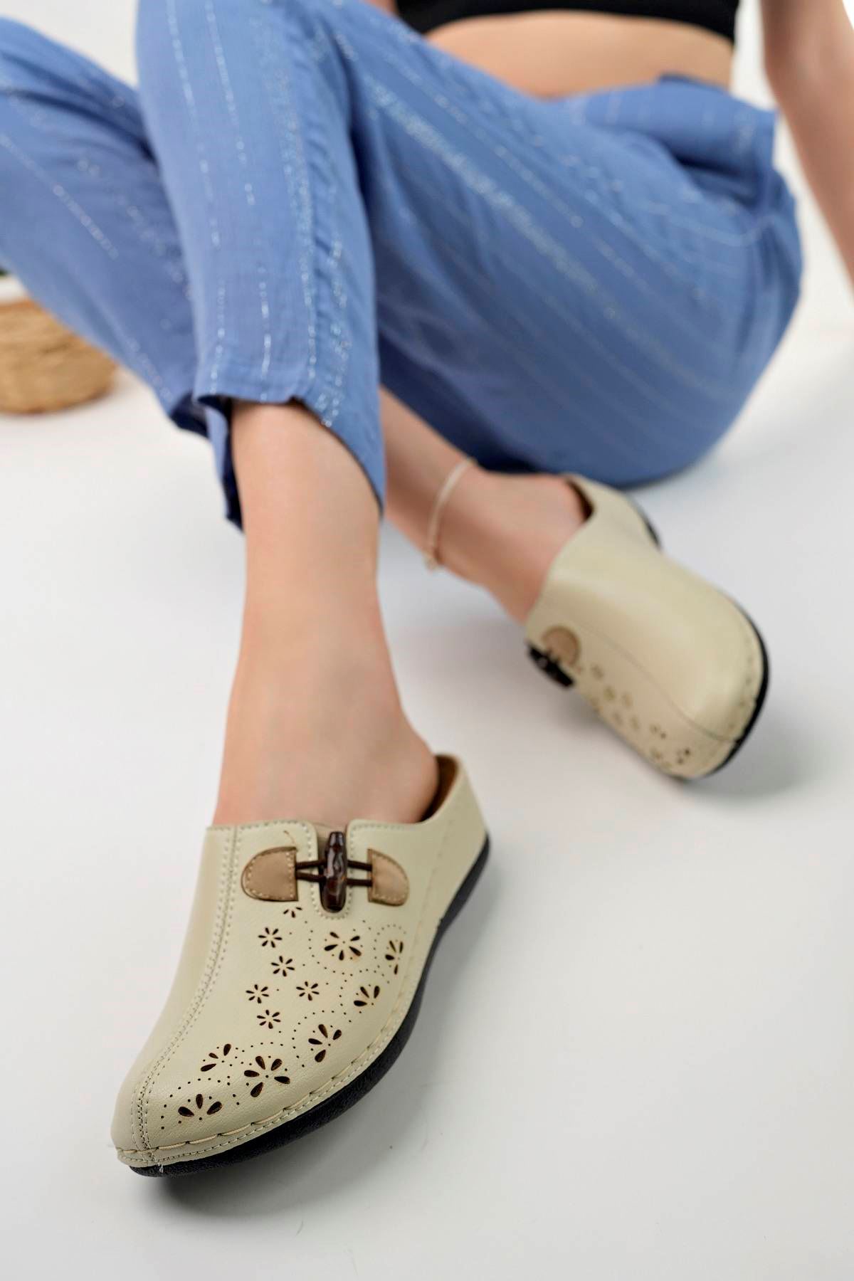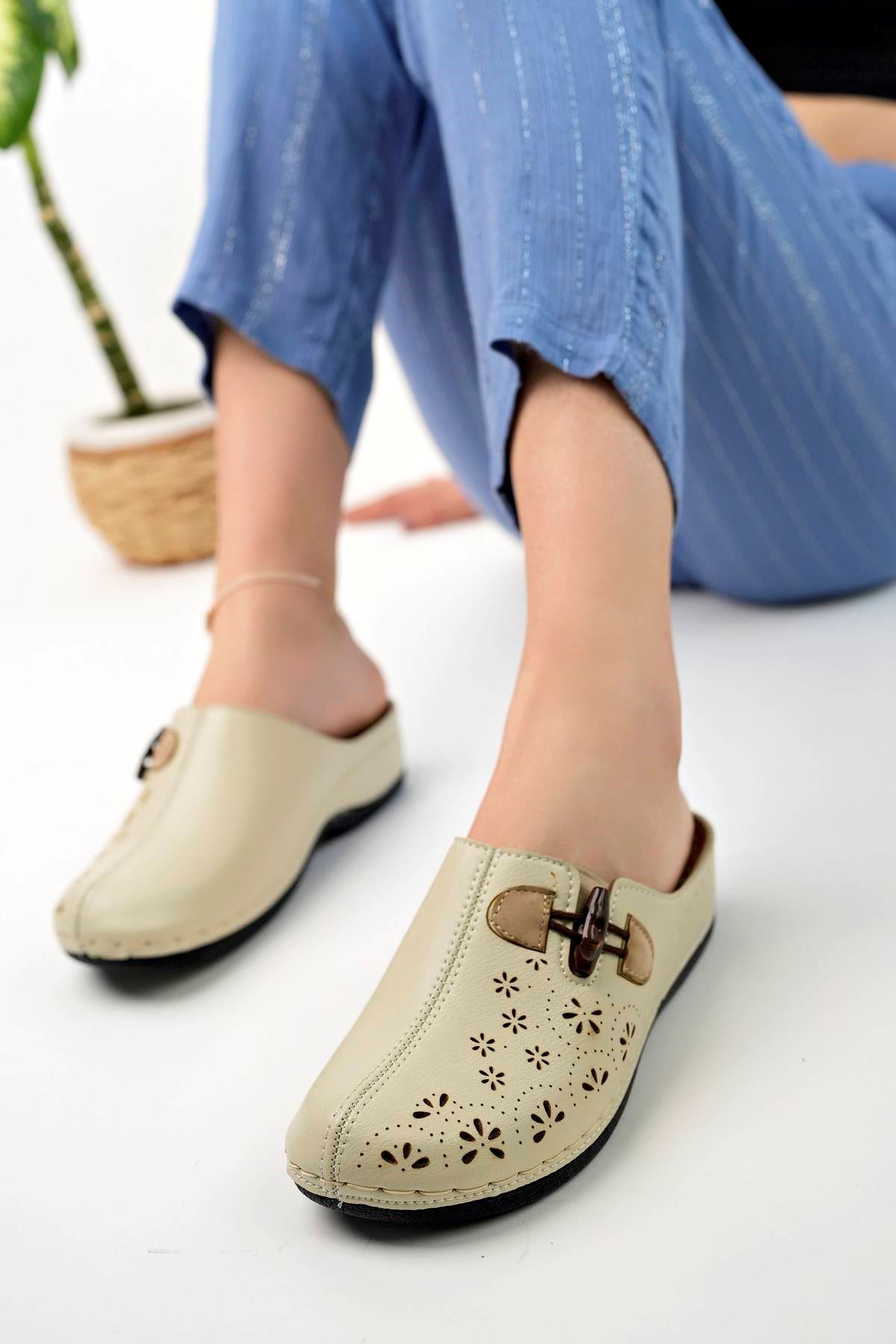 Ortopedik Ped Burnu Kapalı Krem Terlik