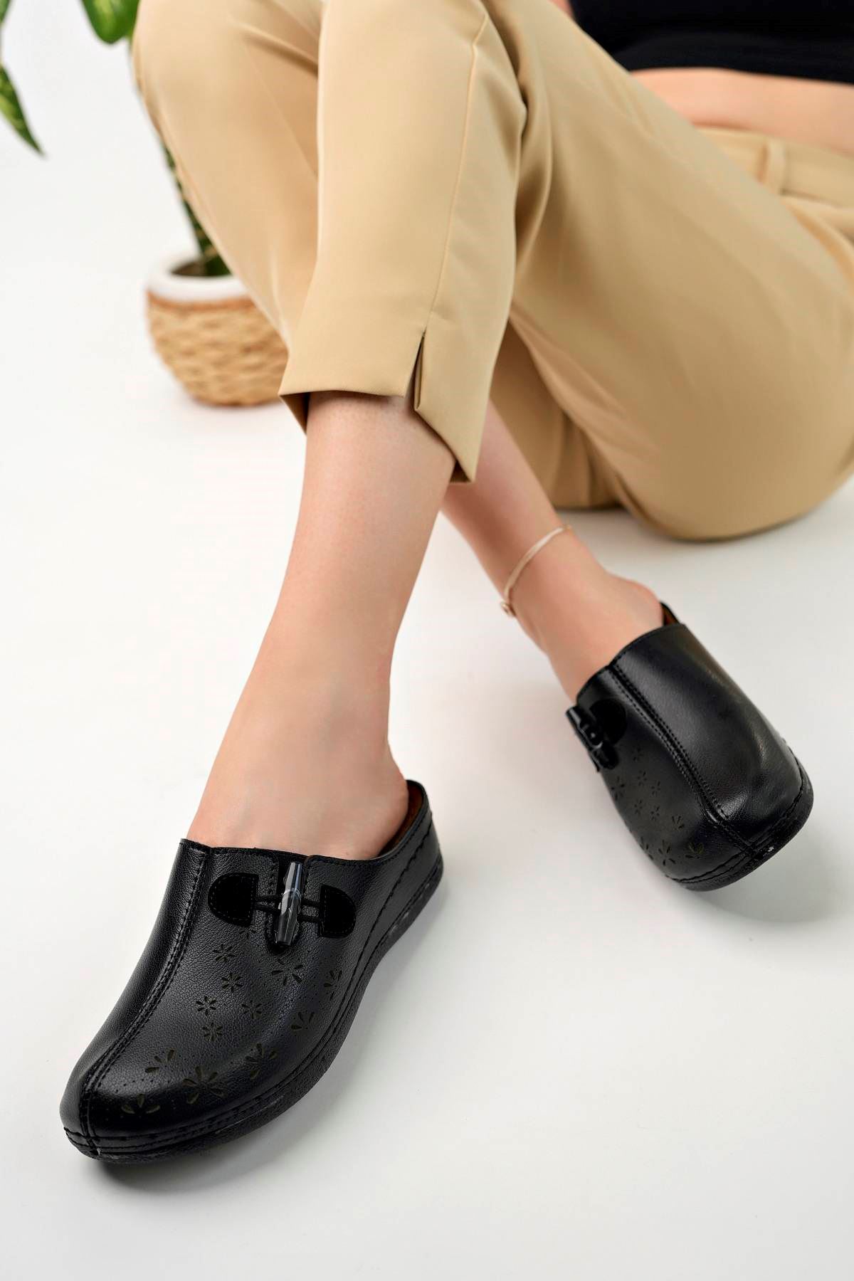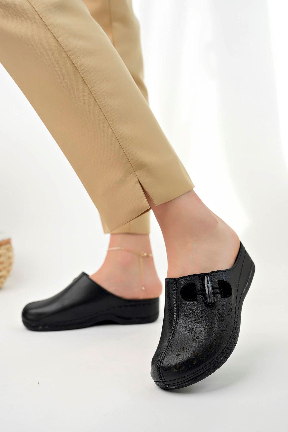 Ortopedik Ped Burnu Kapalı Siyah Terlik
