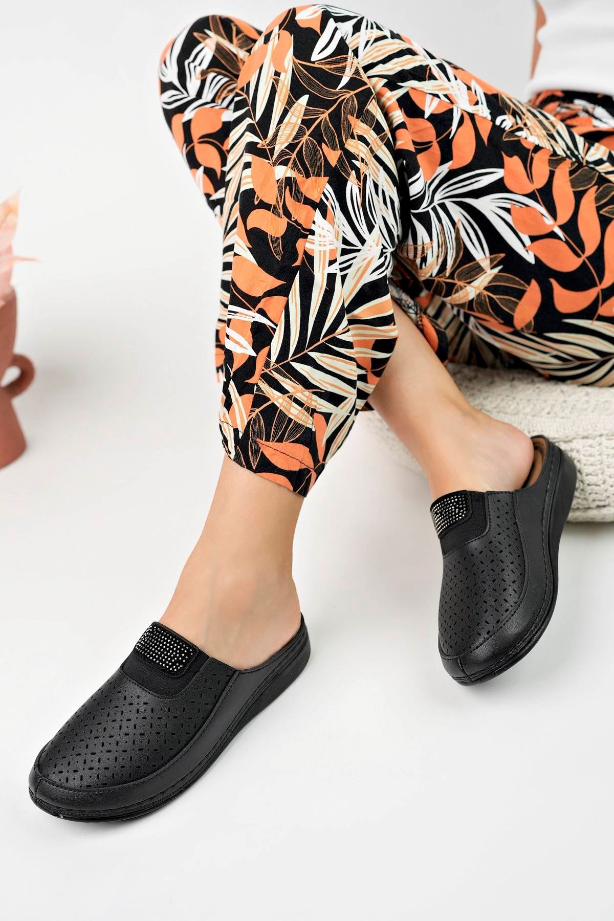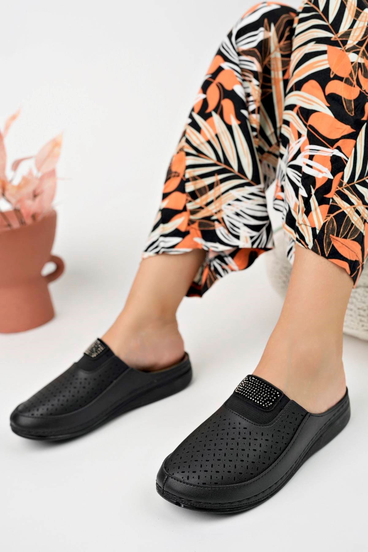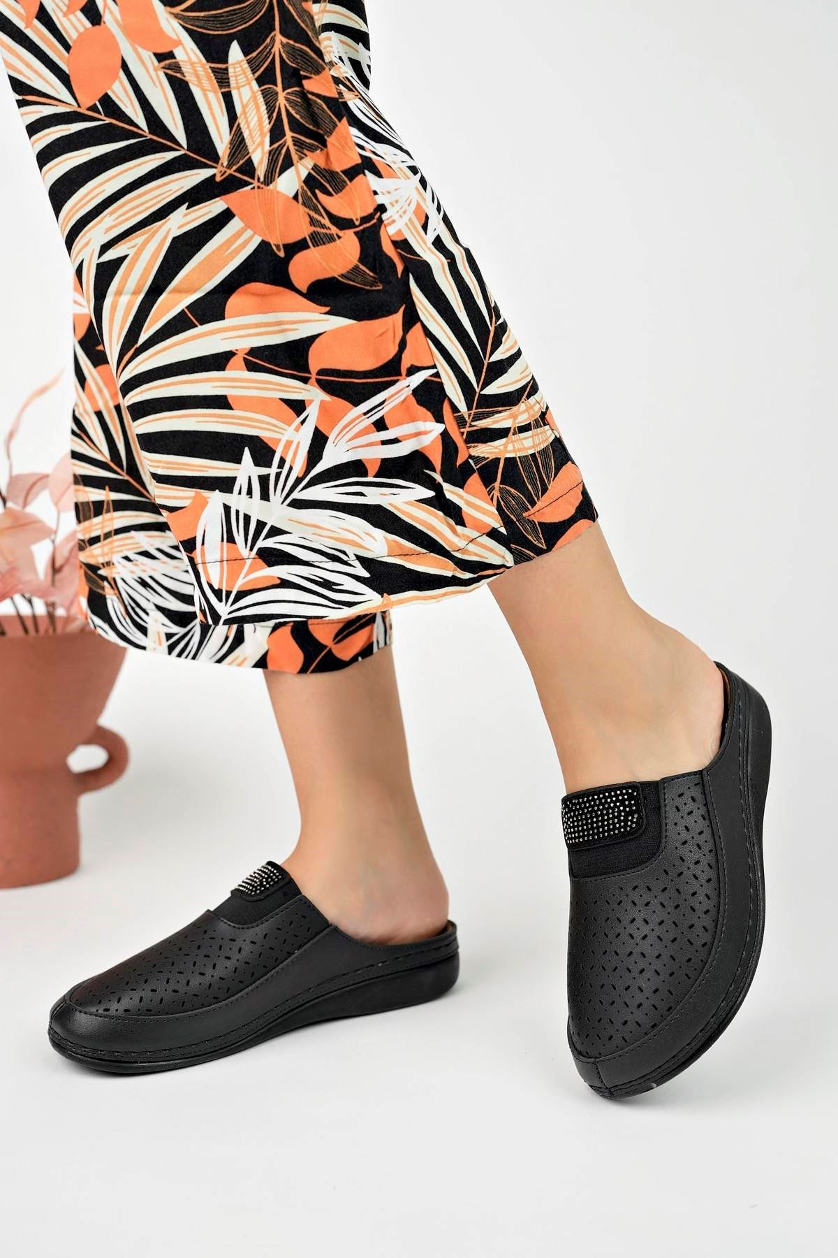Ortopedik Ped Burnu Kapalı Siyah Terlik