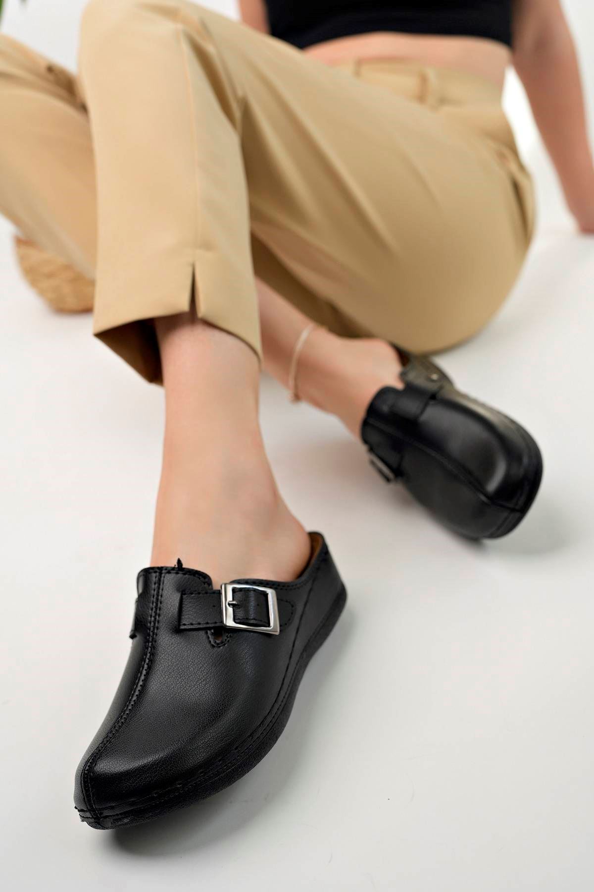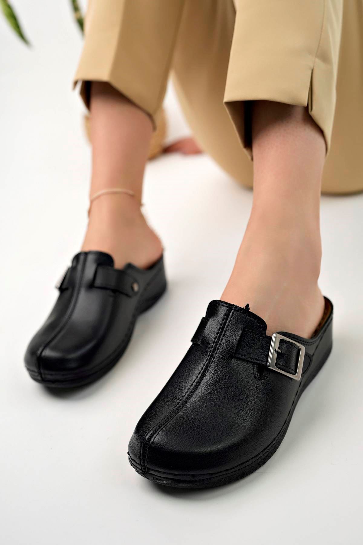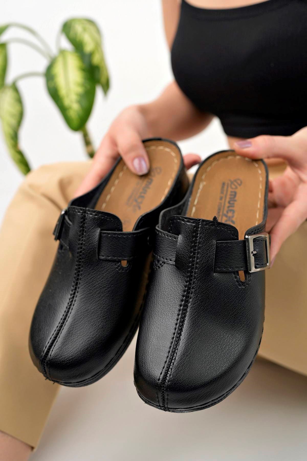 Ortopedik Ped Burnu Kapalı Tokalı Siyah Terlik