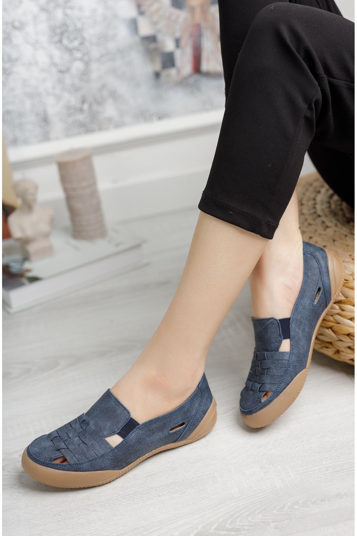 Ortopedik Ped Lastikli Lacivert Kadın Ayakkabı