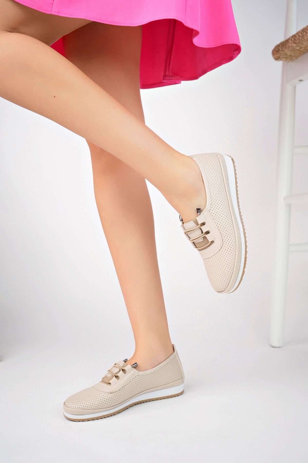 Ortopedik Pedli Lazerli Krem Ayakkabı