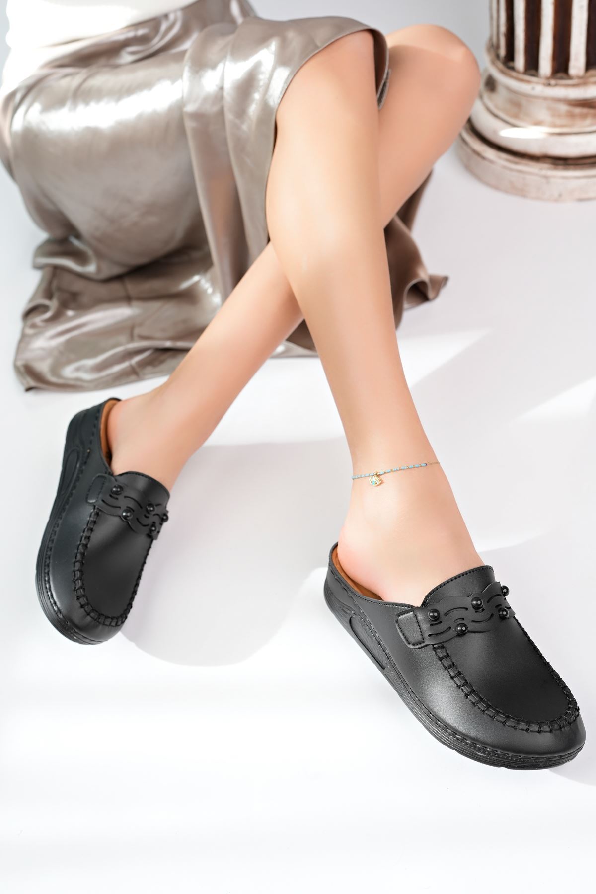 Ortopedik Taban Burnu Kapalı Siyah Terlik