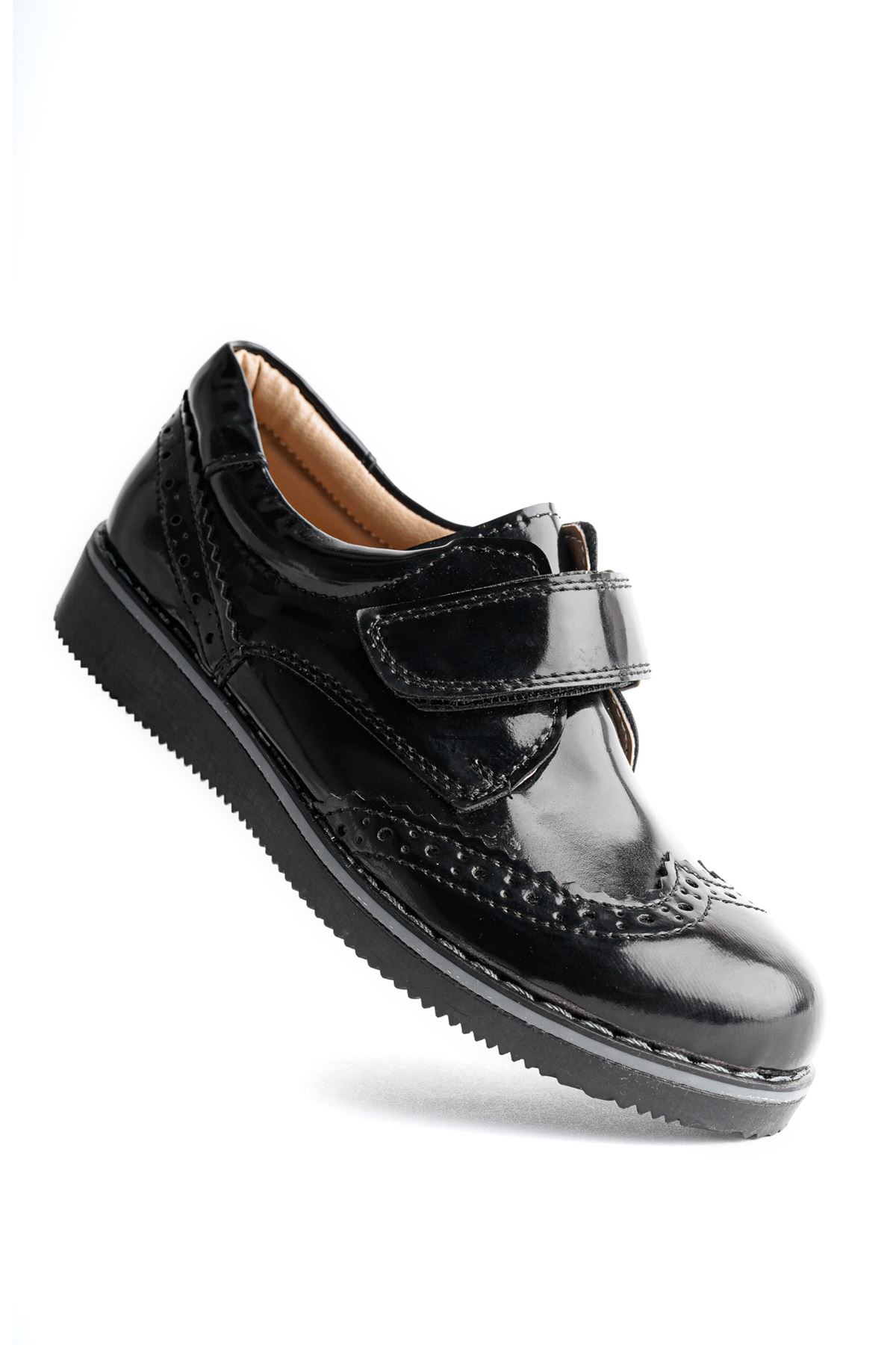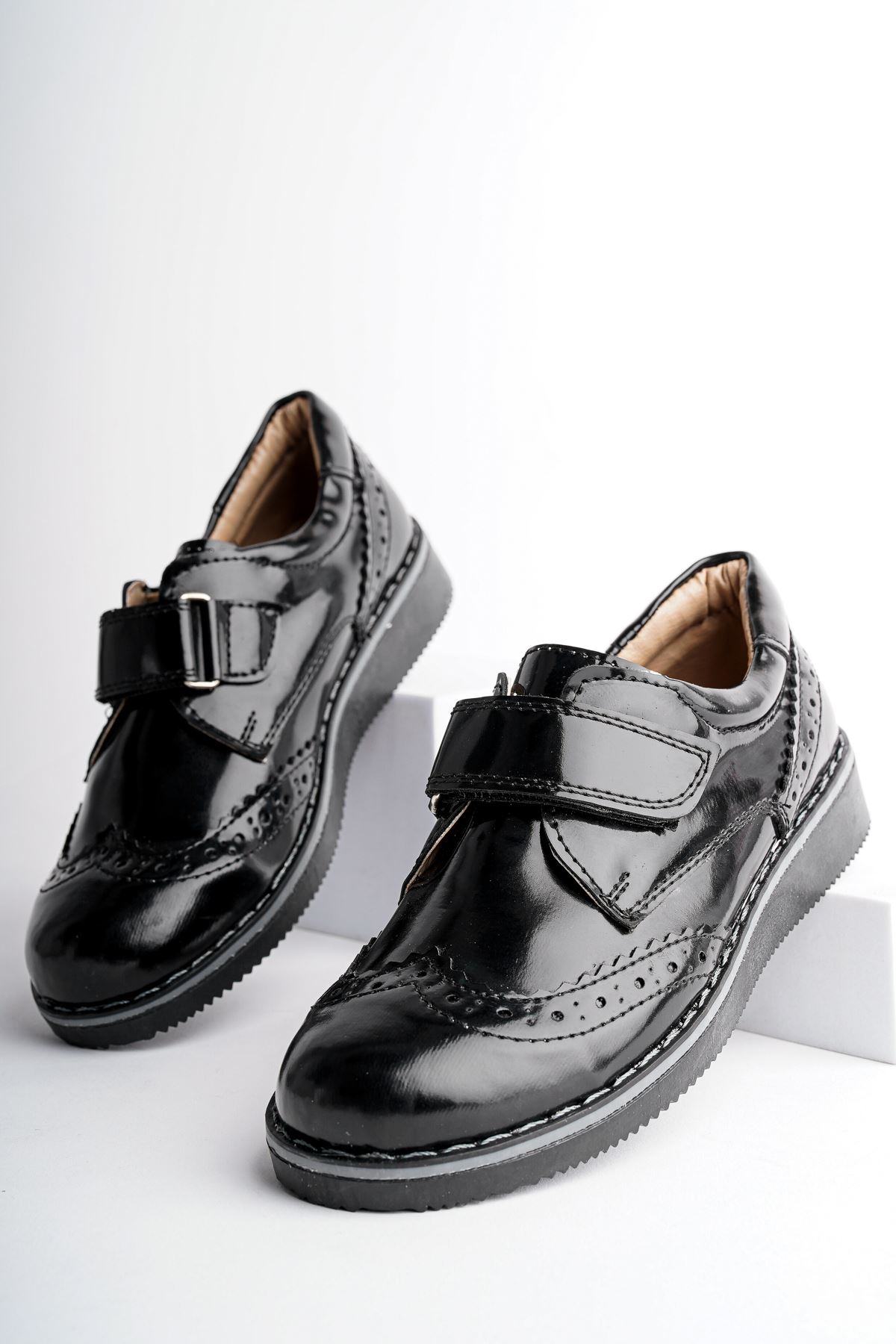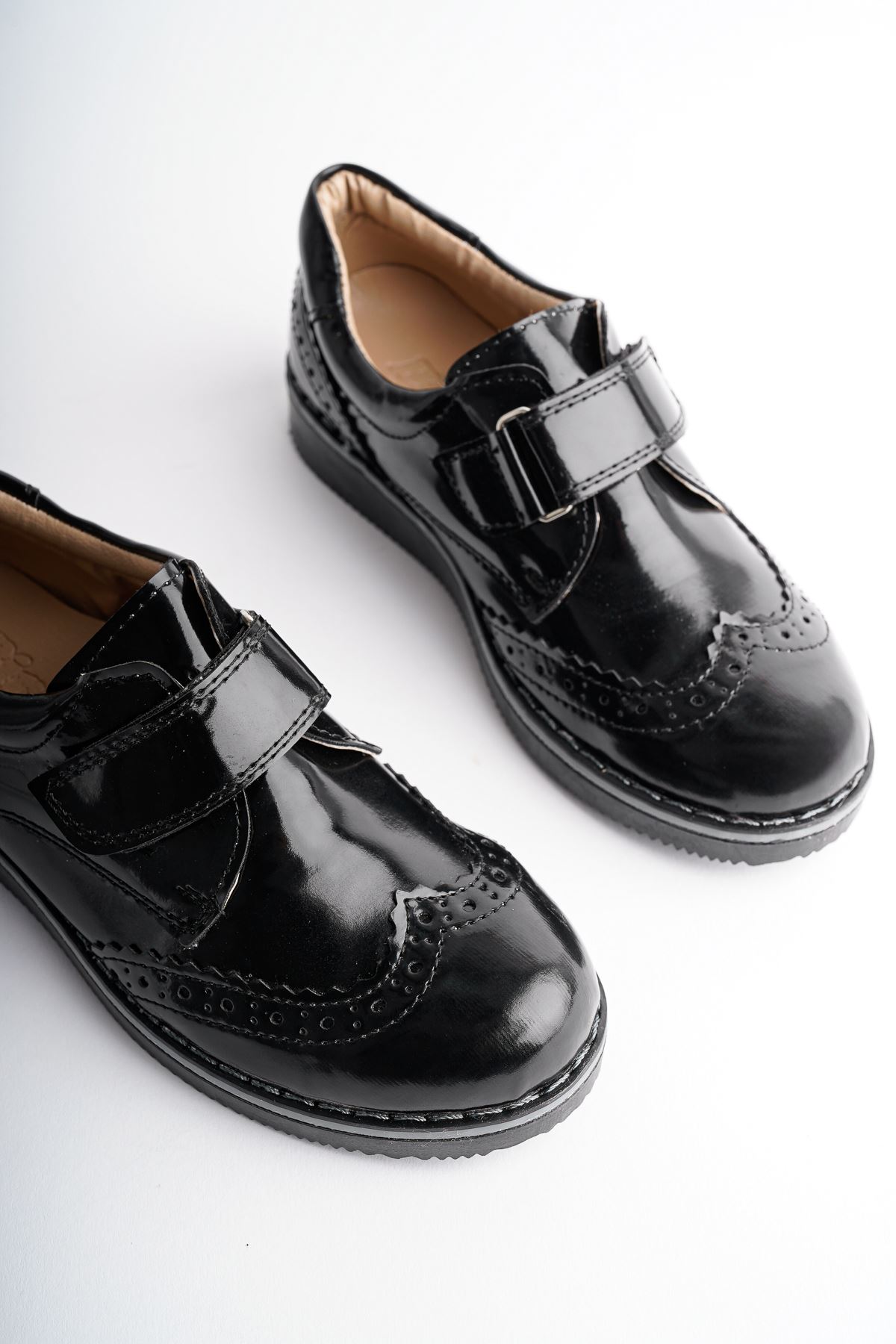 Ortopedik Termo Taban Cırtlı Siyah Rugan Çocuk Ayakkabı