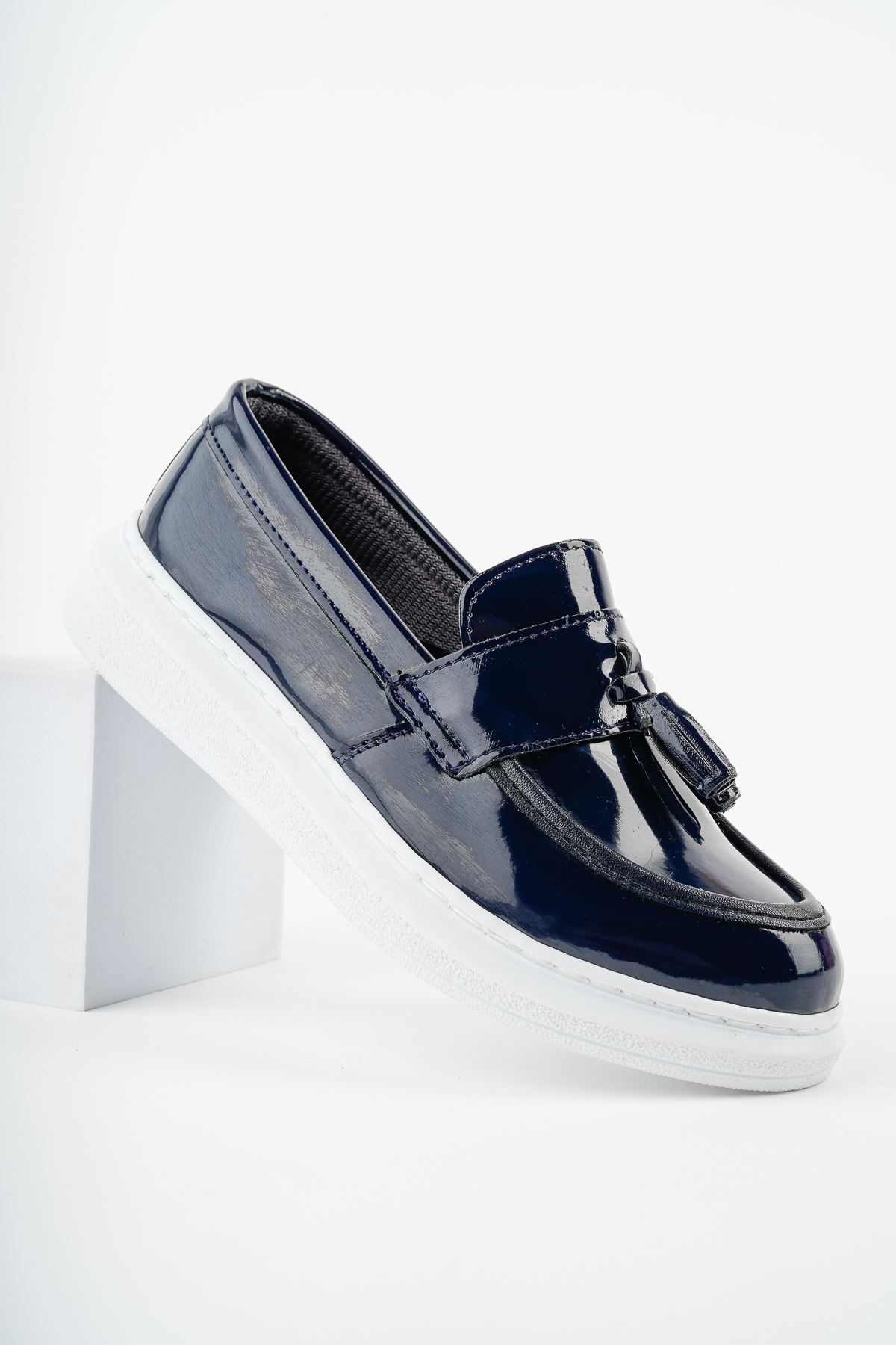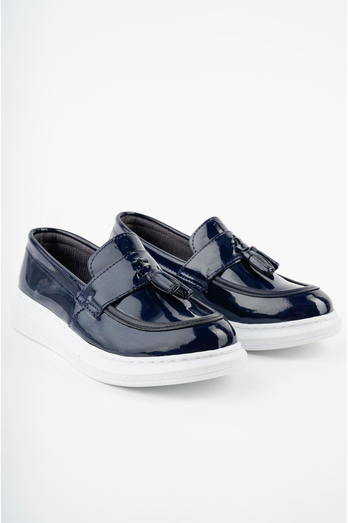 Püsküllü Lacivert Rugan Erkek Çocuk Ayakkabı