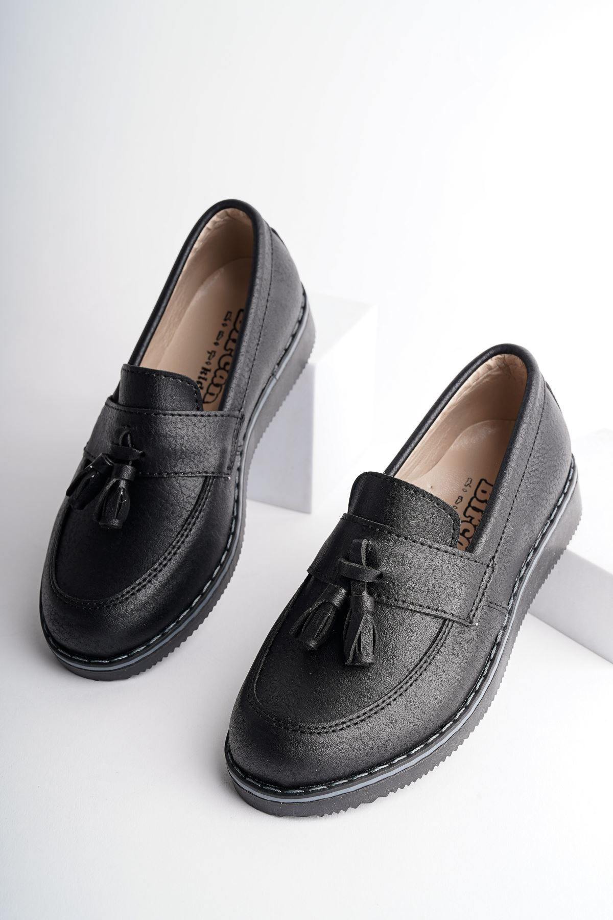 Ortopedik Taban V Tokalı Siyah Ayakkabı