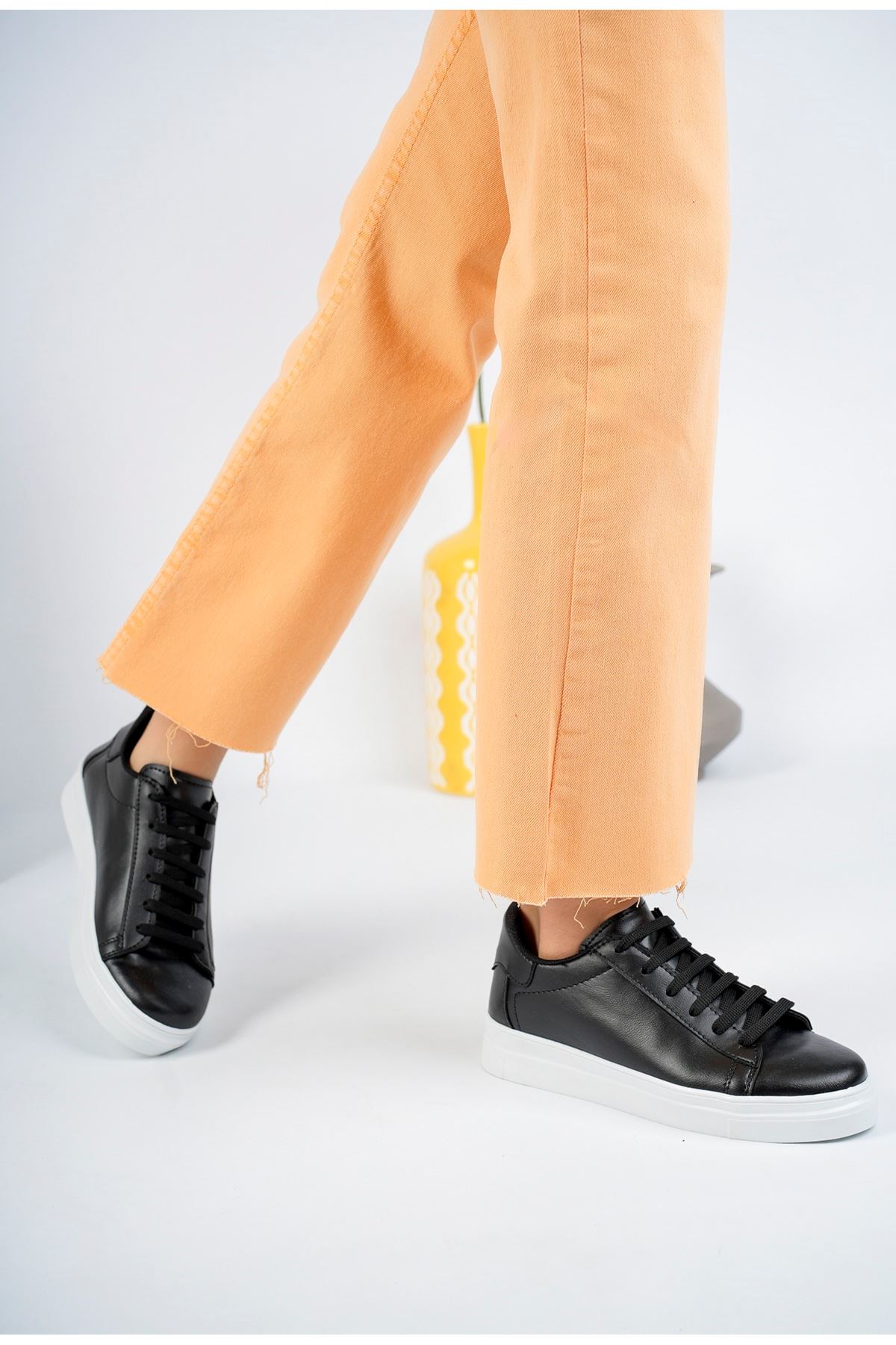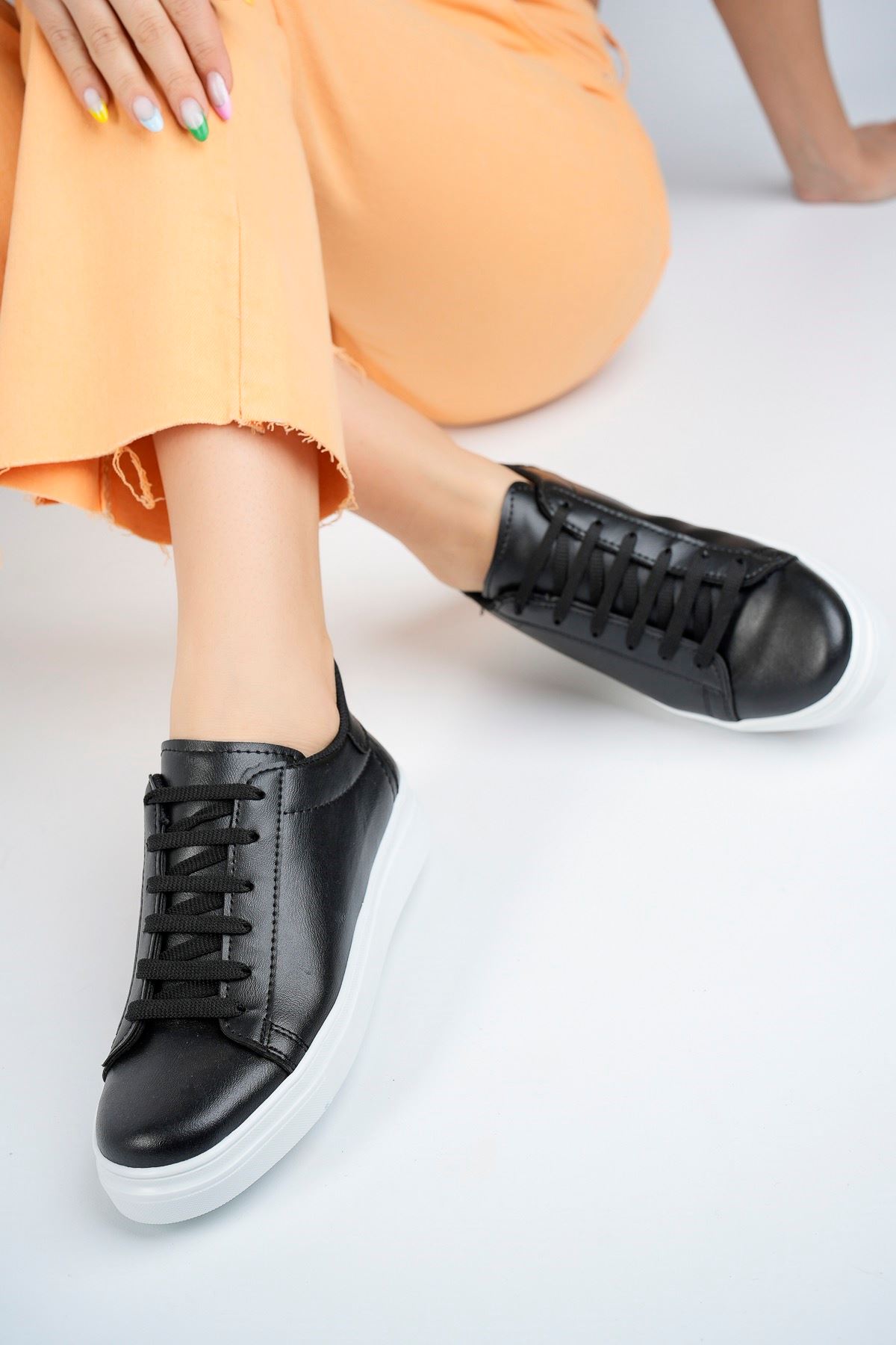Siyaha Beyaz Taban Cilt Spor Ayakkabı