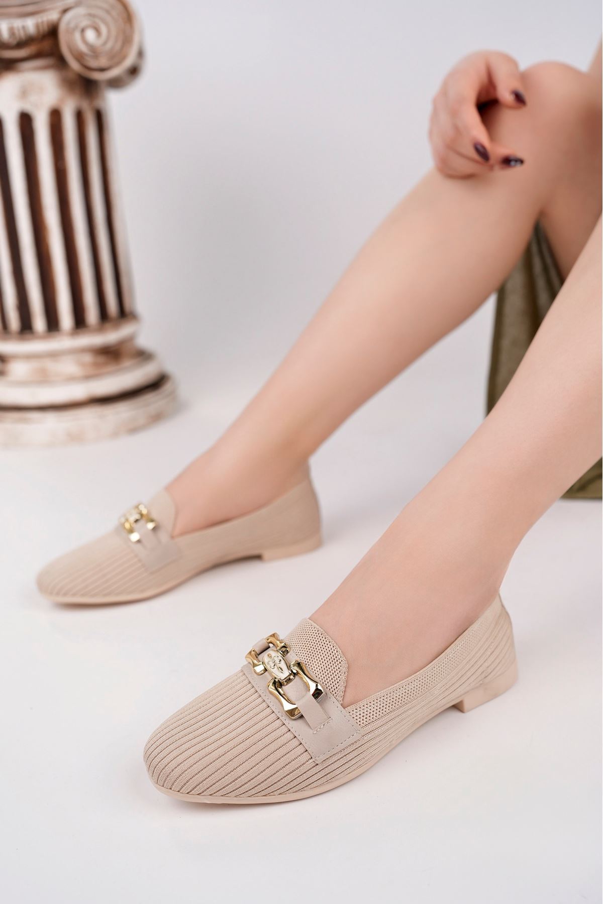 Topan Kalıp Krem Tokalı Triko Ayakkabı