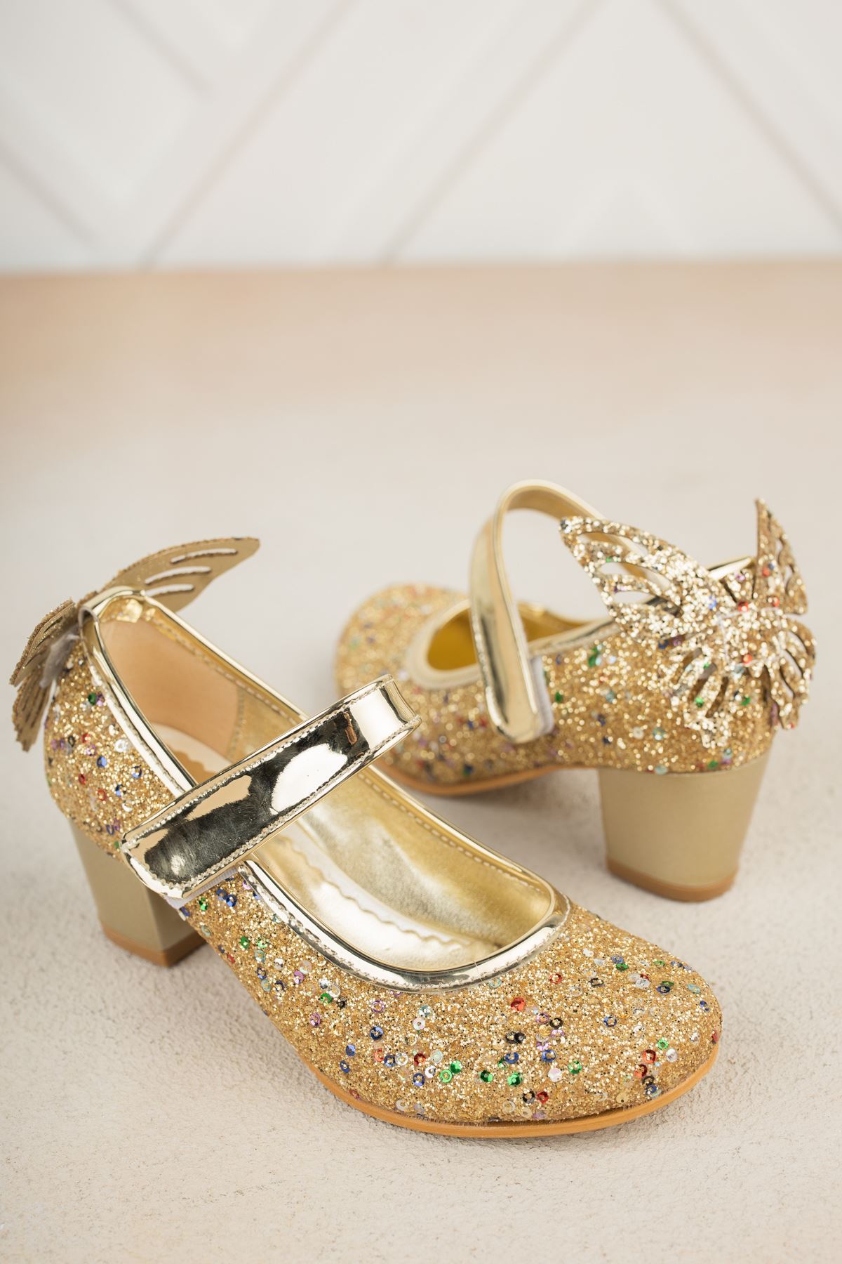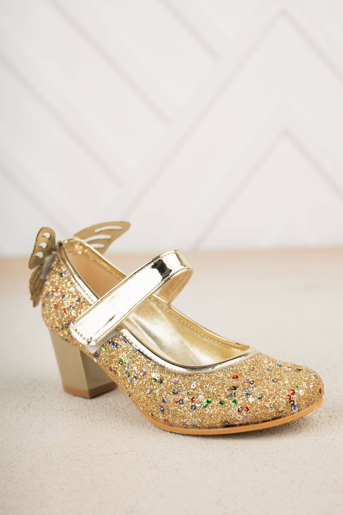 Topuklu Arkası Kelebekli Altın Taşlı Ayakkabı