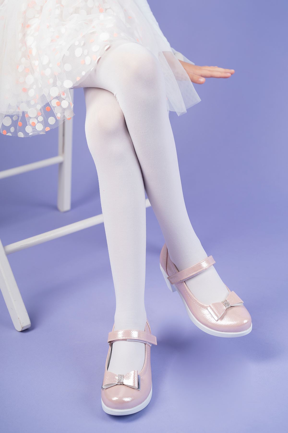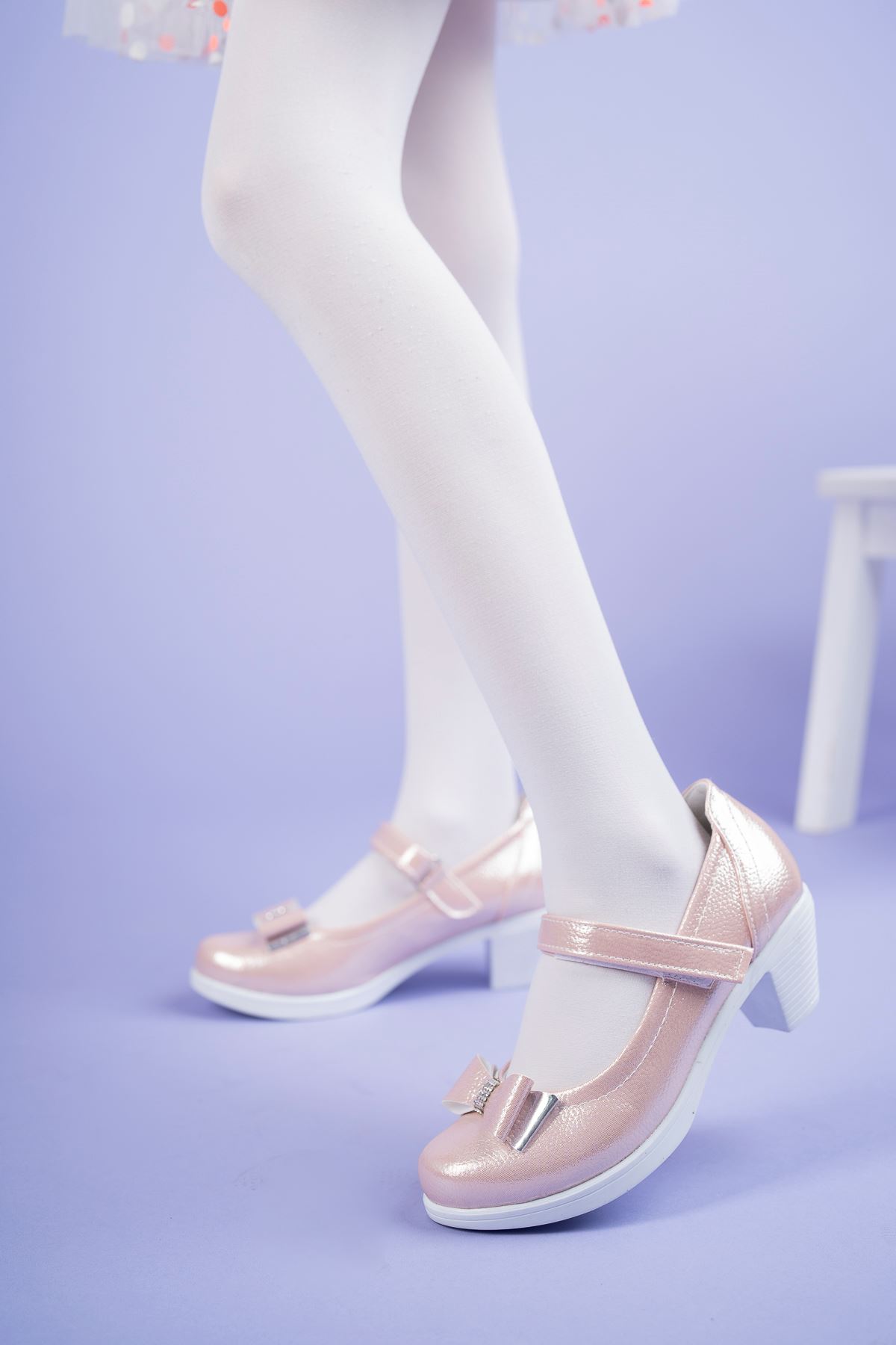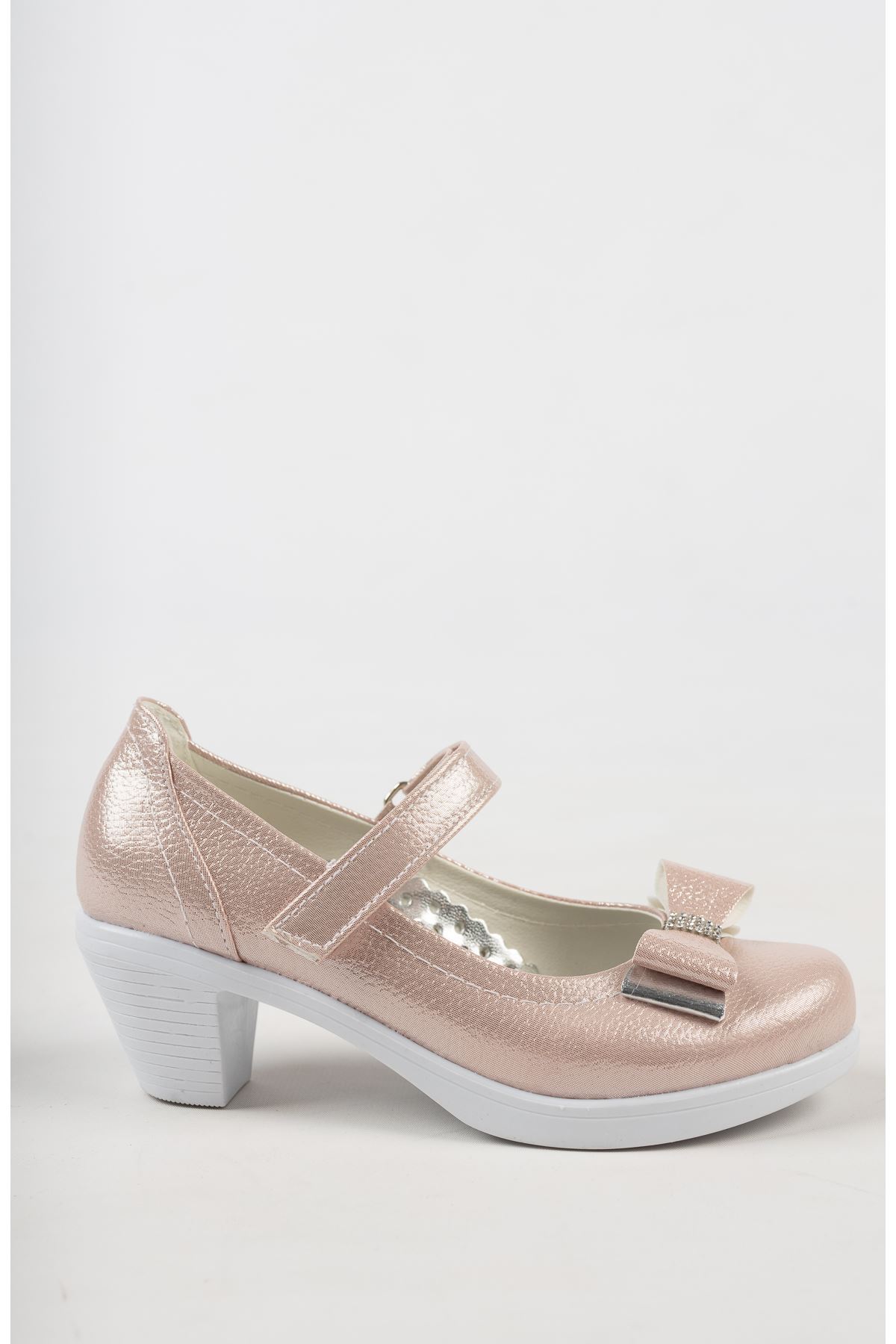 Topuklu Fiyonklu Pudra Kız Çocuk Ayakkabı