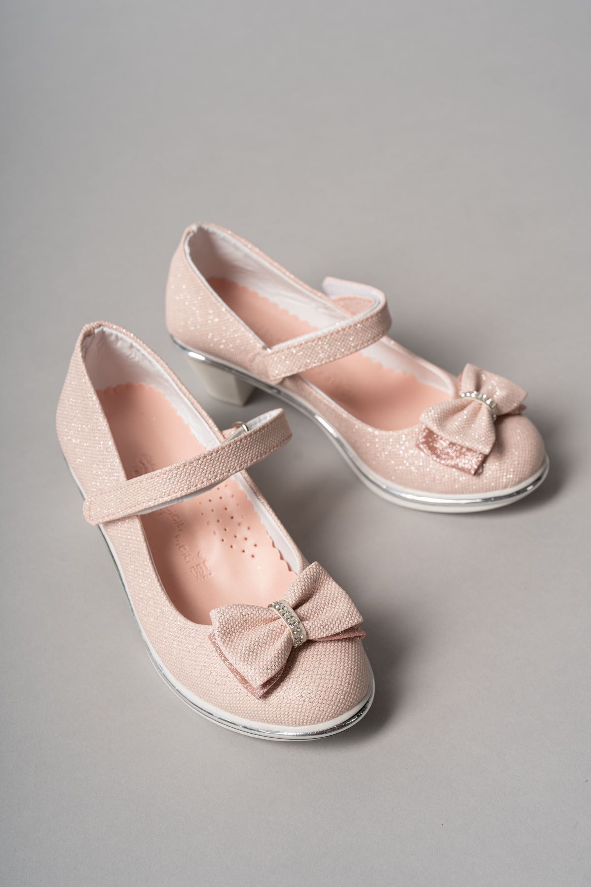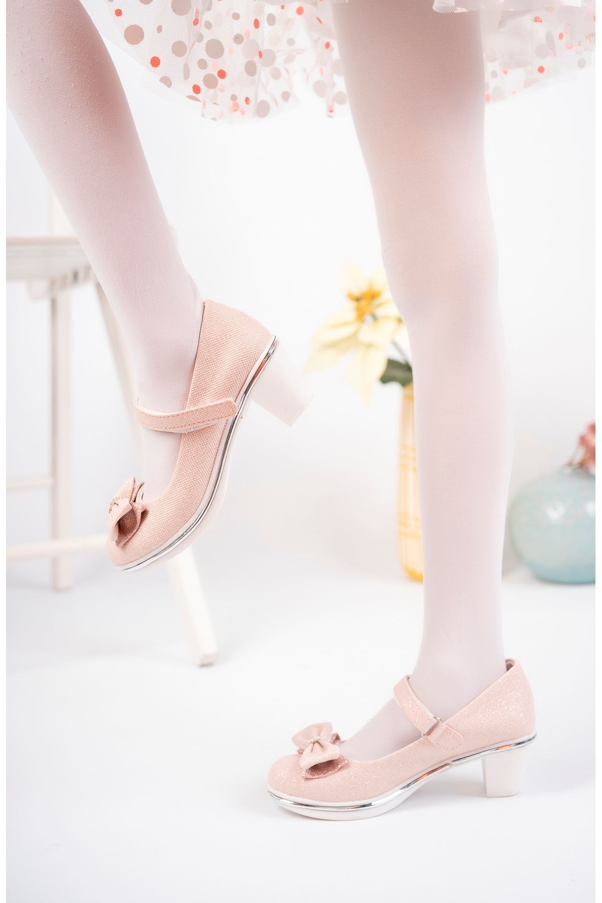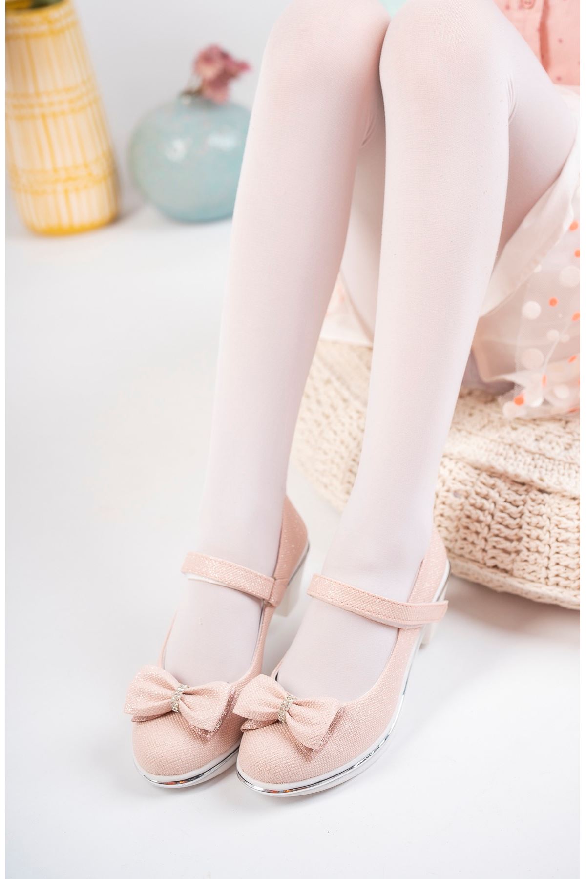 Topuklu Fiyonklu Pudra Star Kız Çocuk Ayakkabı