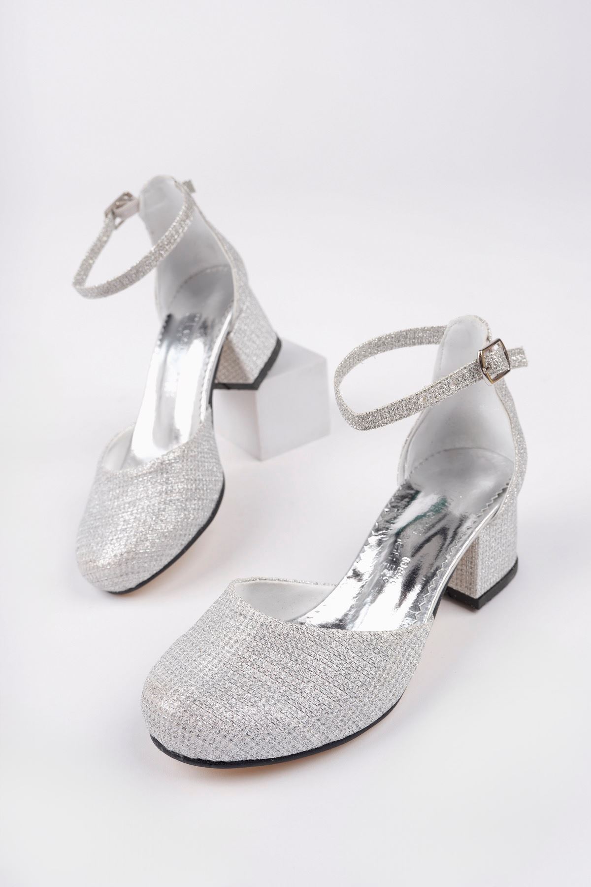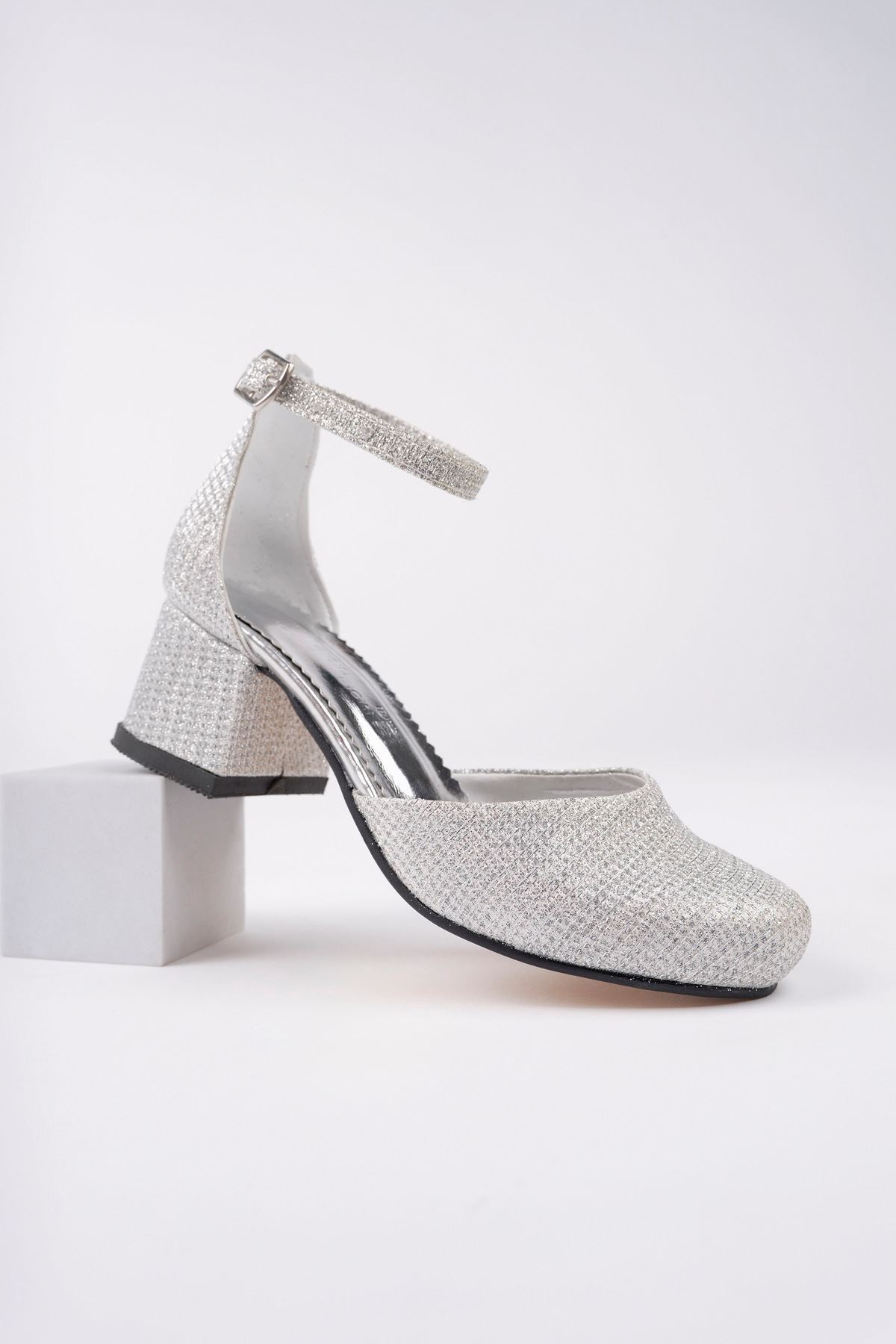 Topuklu Gümüş Karnıyarık Ayakkabı