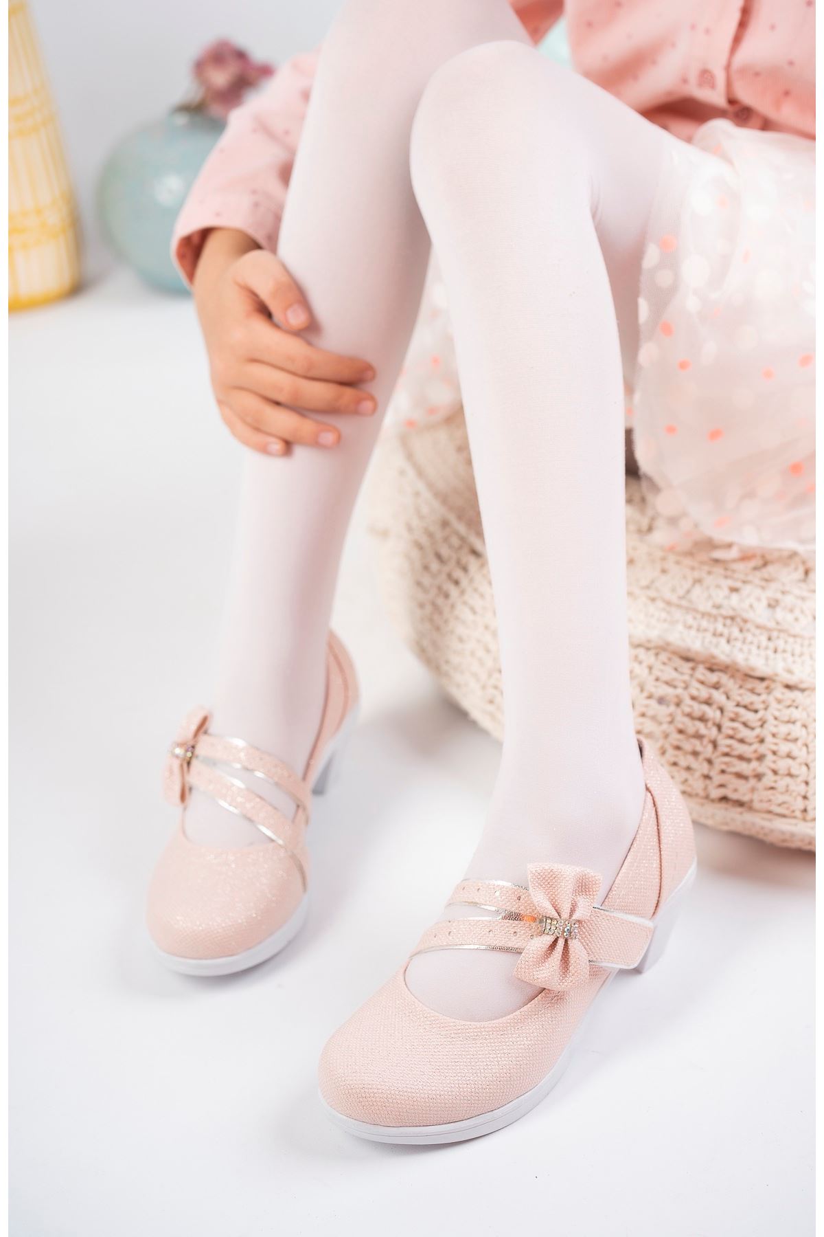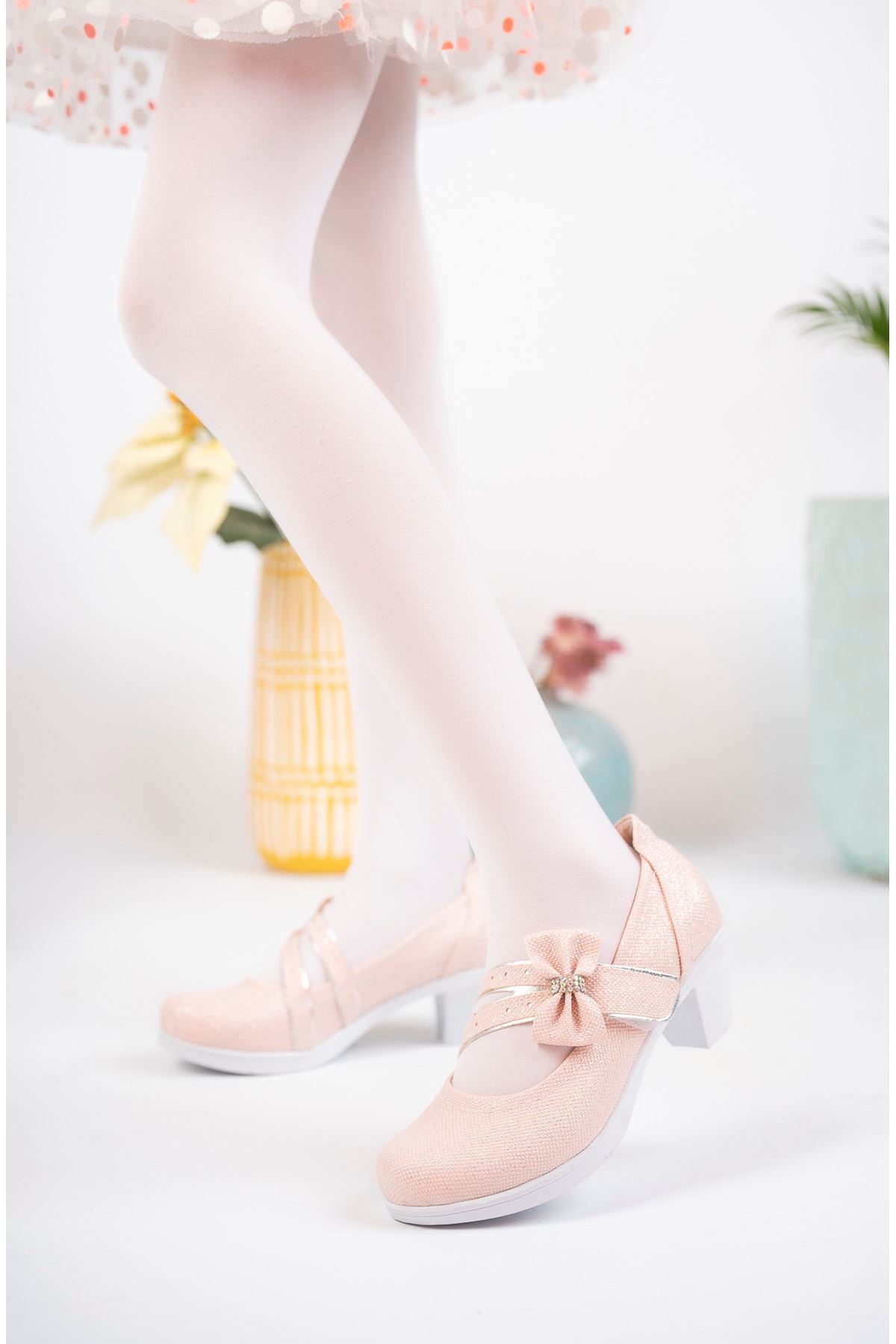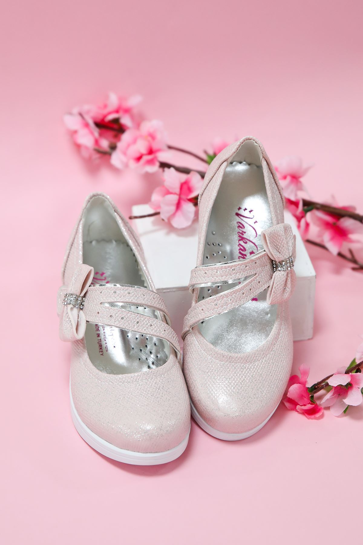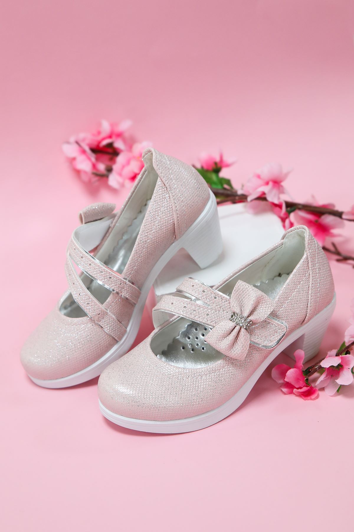 Topuklu Pembe Simli Kız Çocuk Ayakkabı