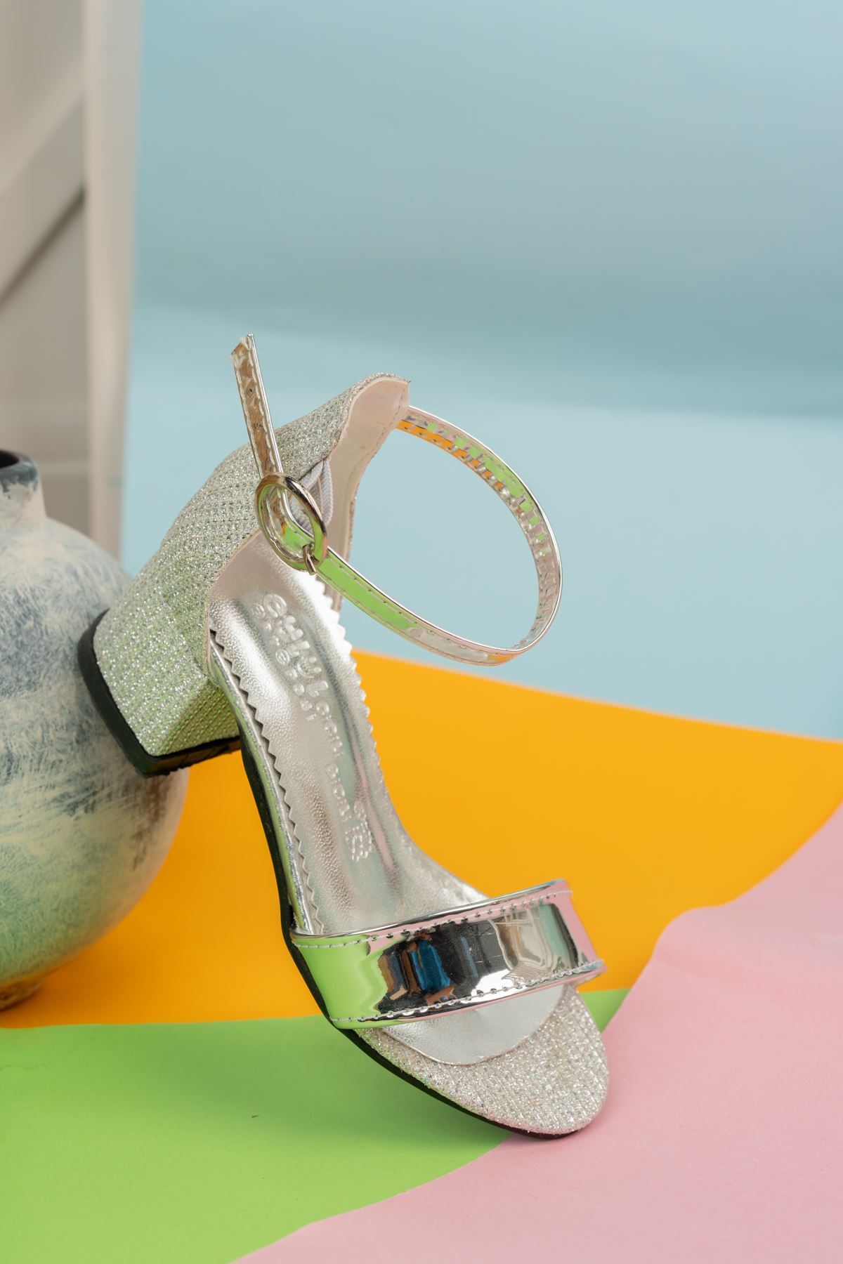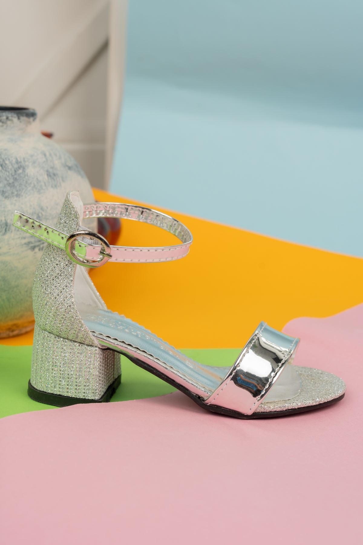 Topuklu Tek Bant Gümüş Kız Çocuk Sandalet