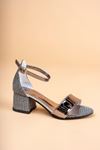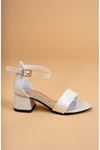 Topuklu Tek Bant Platin Kız Çocuk Sandalet