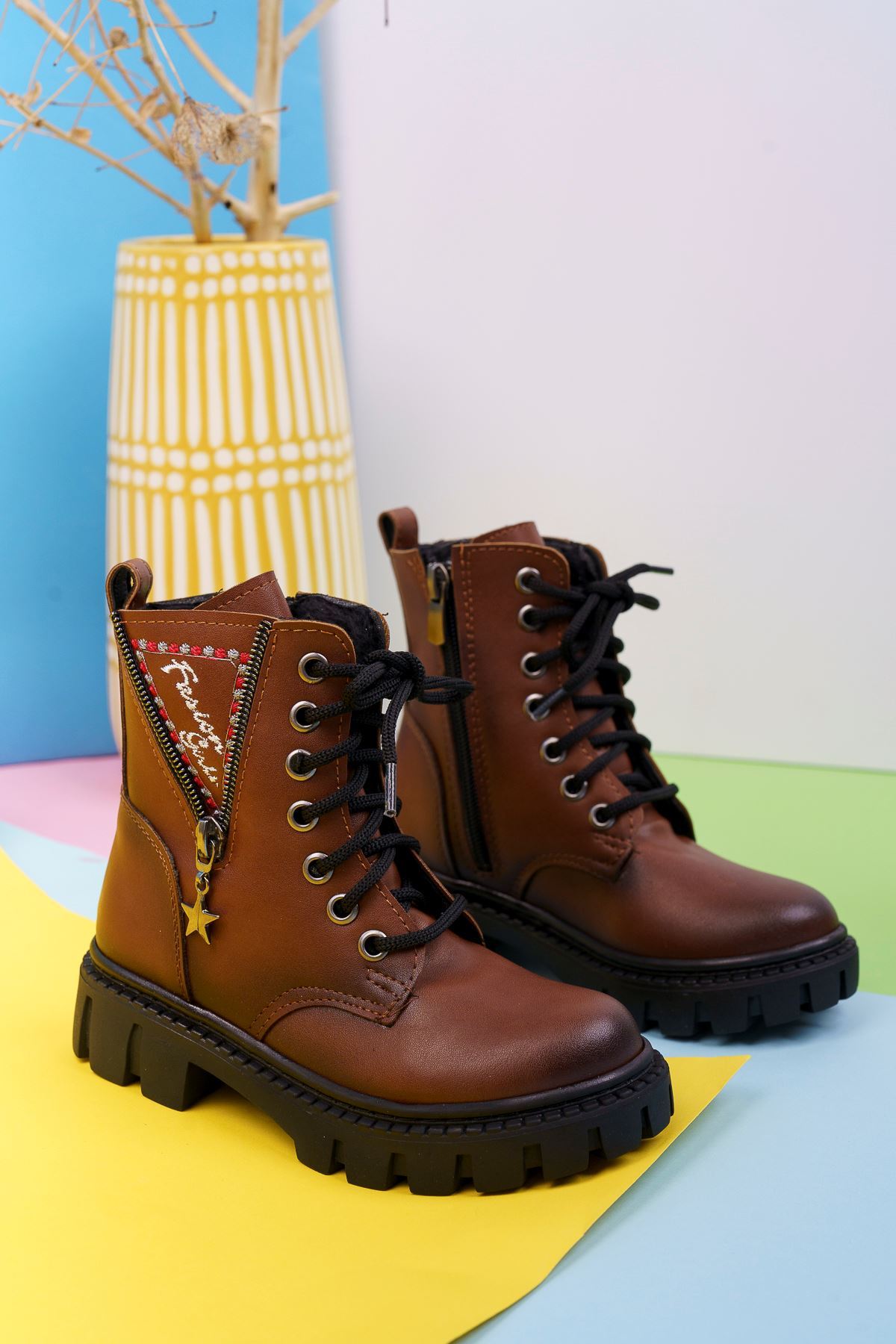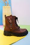 V Fermuarlı Taba Çocuk Postal Bot