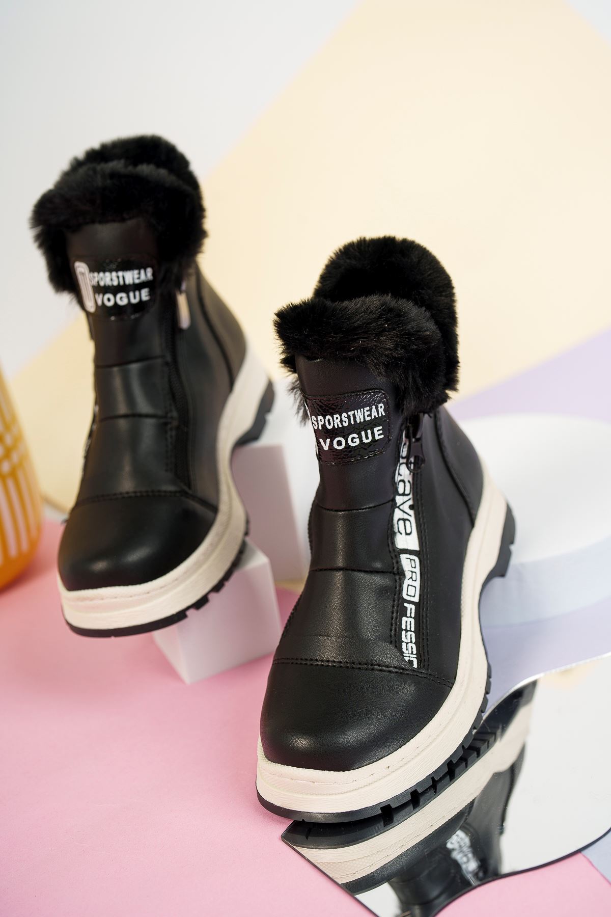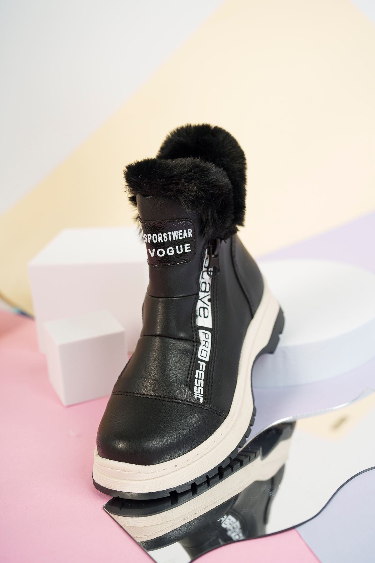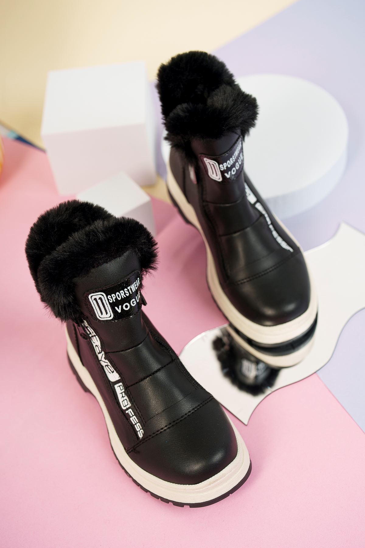 Yan Fermuarlı Siyah Cilt Kız Çocuk Bot