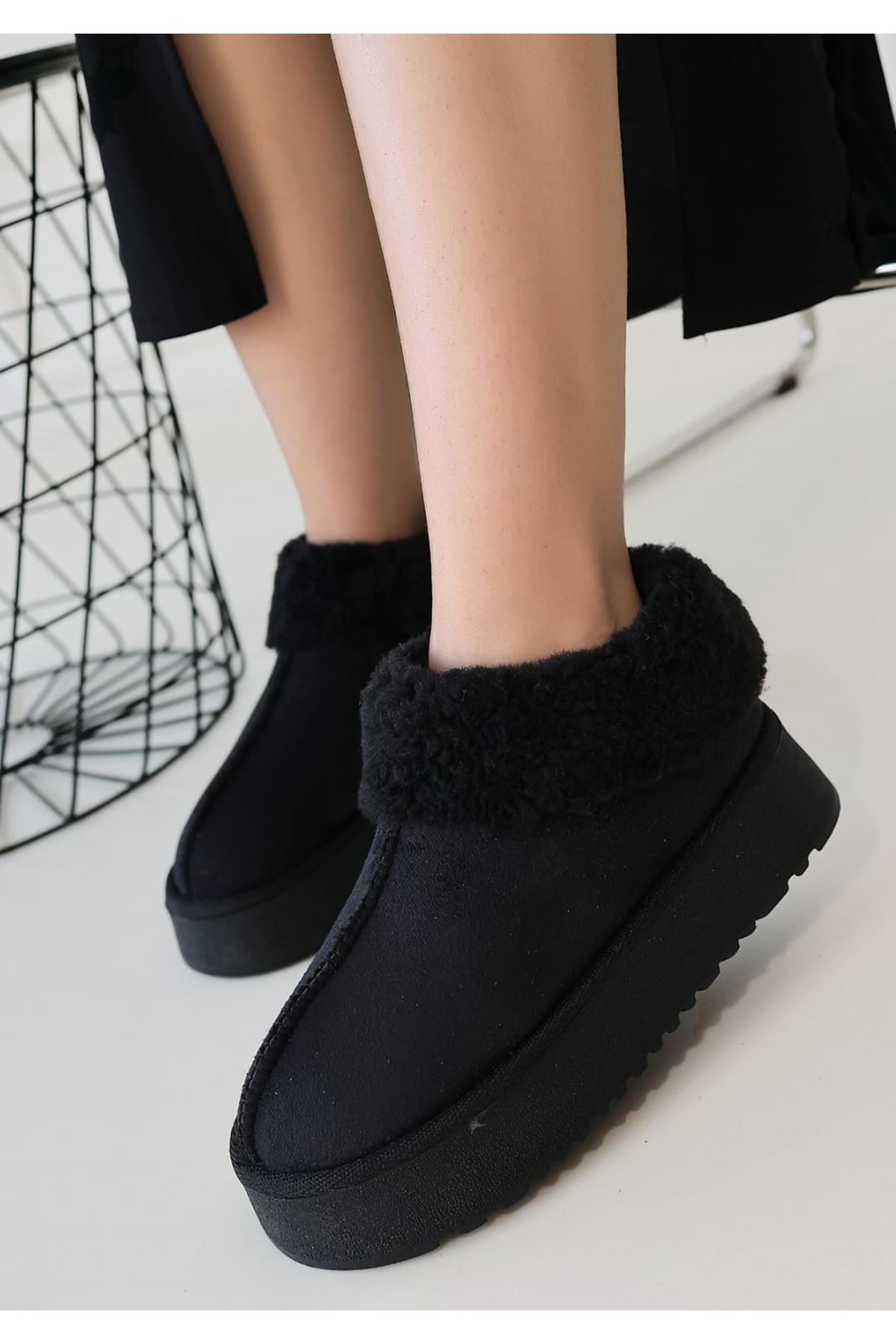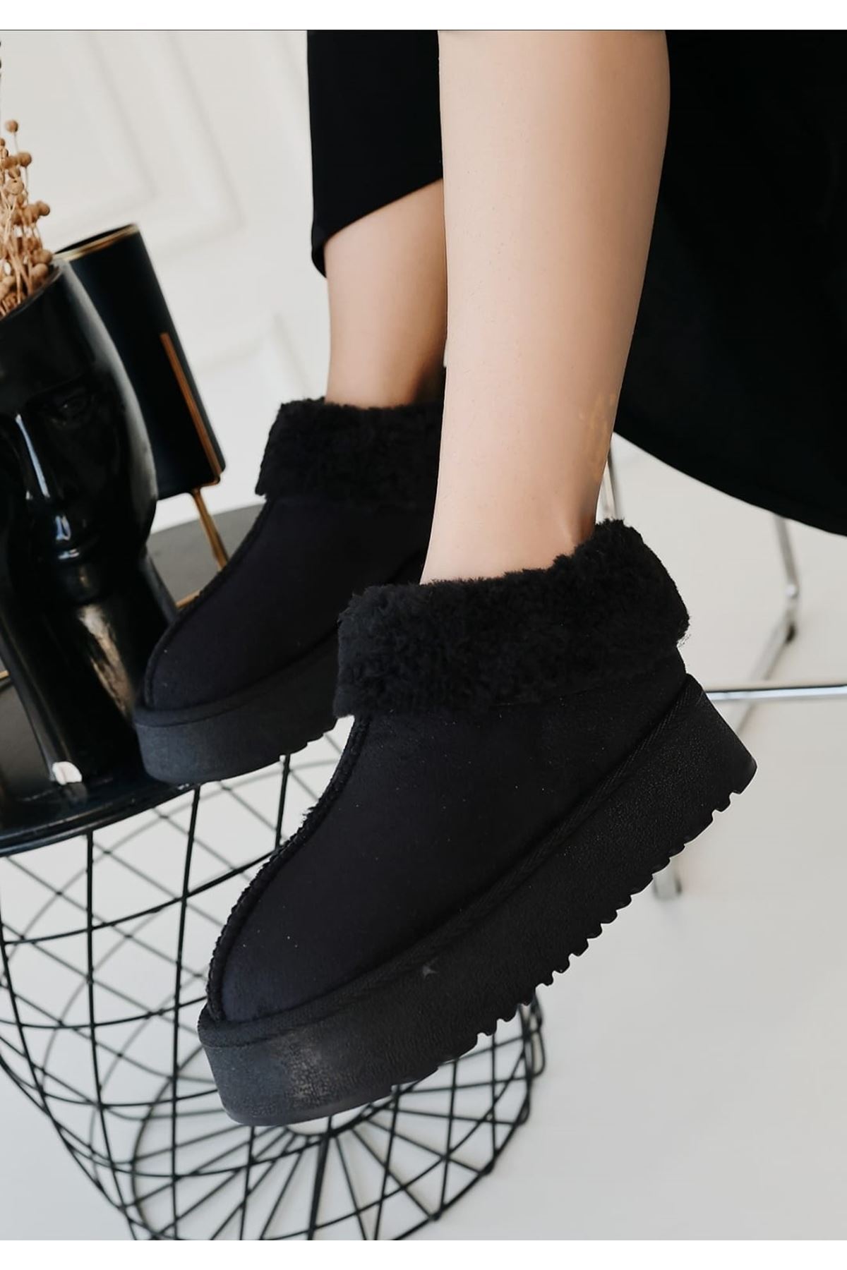 Yüksek Taban Kürklü Siyah Bot