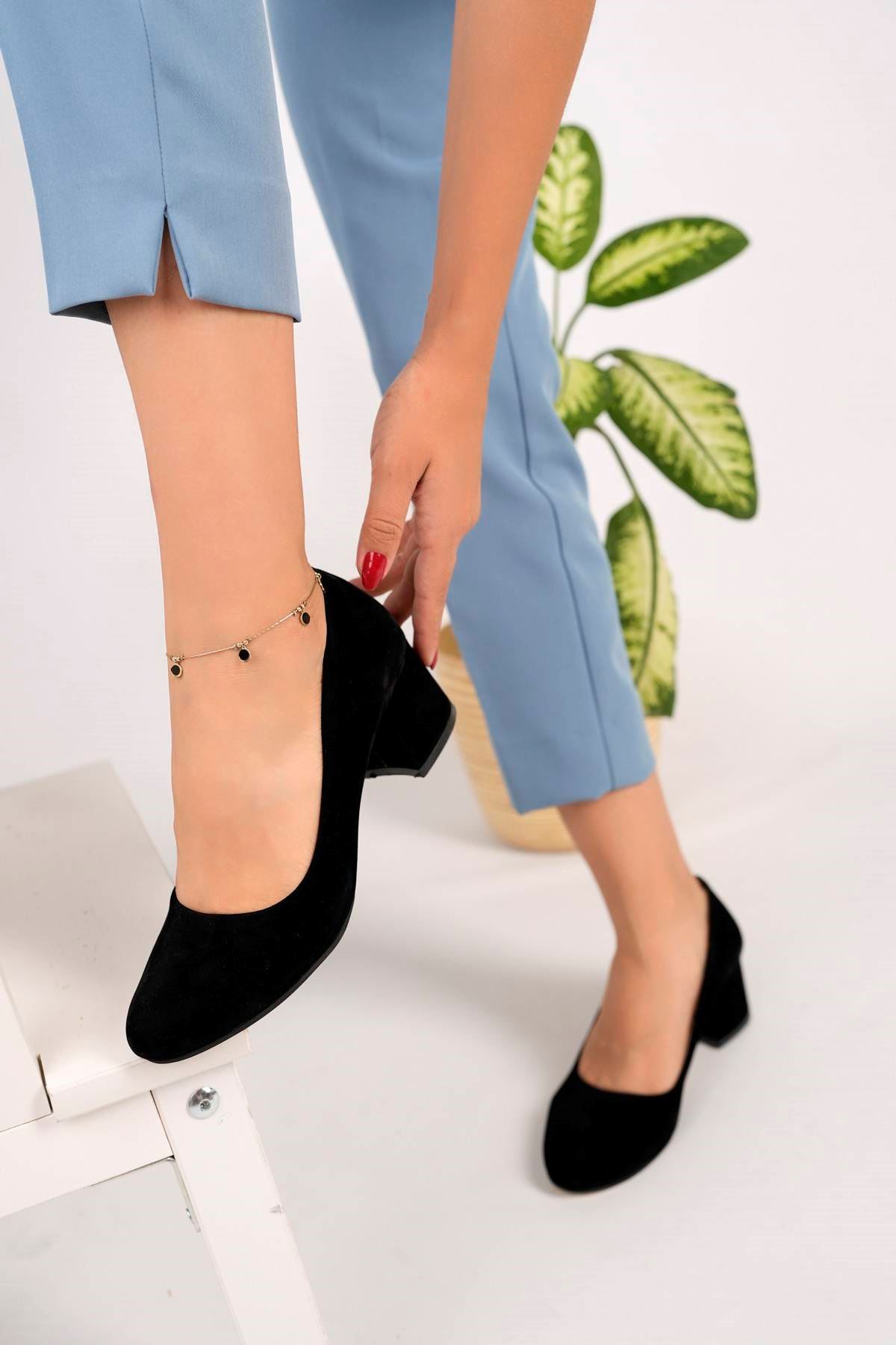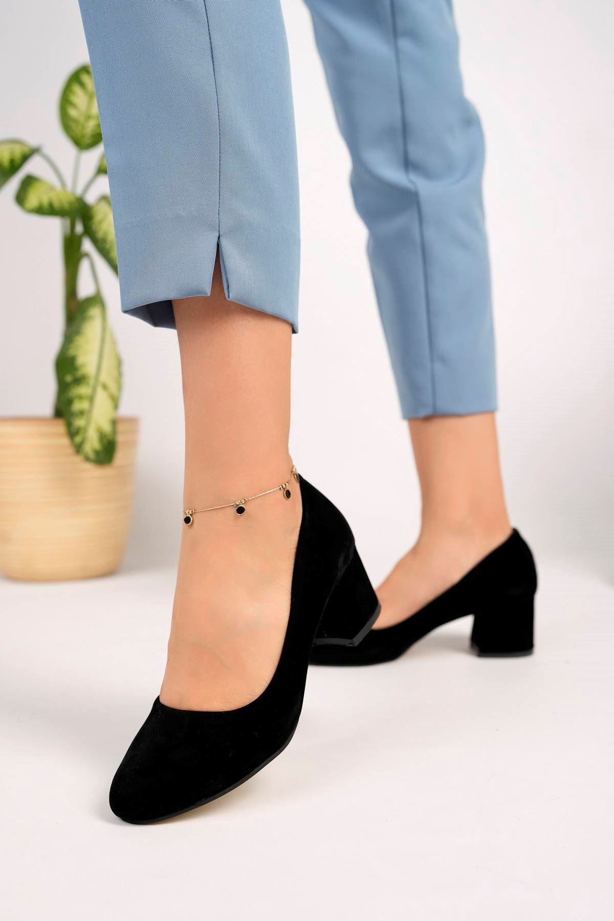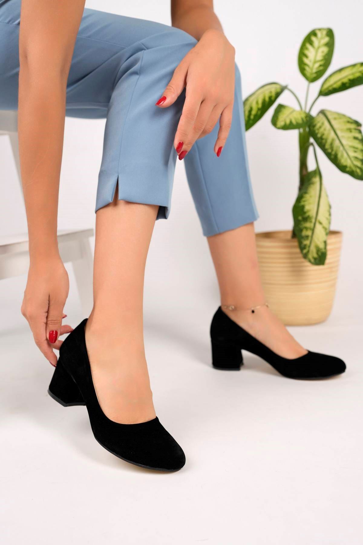 Alçak Topuk Yuvarlak Kalıp Siyah Süet Ayakkabı