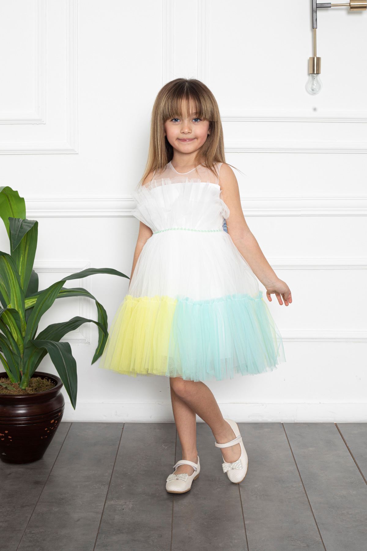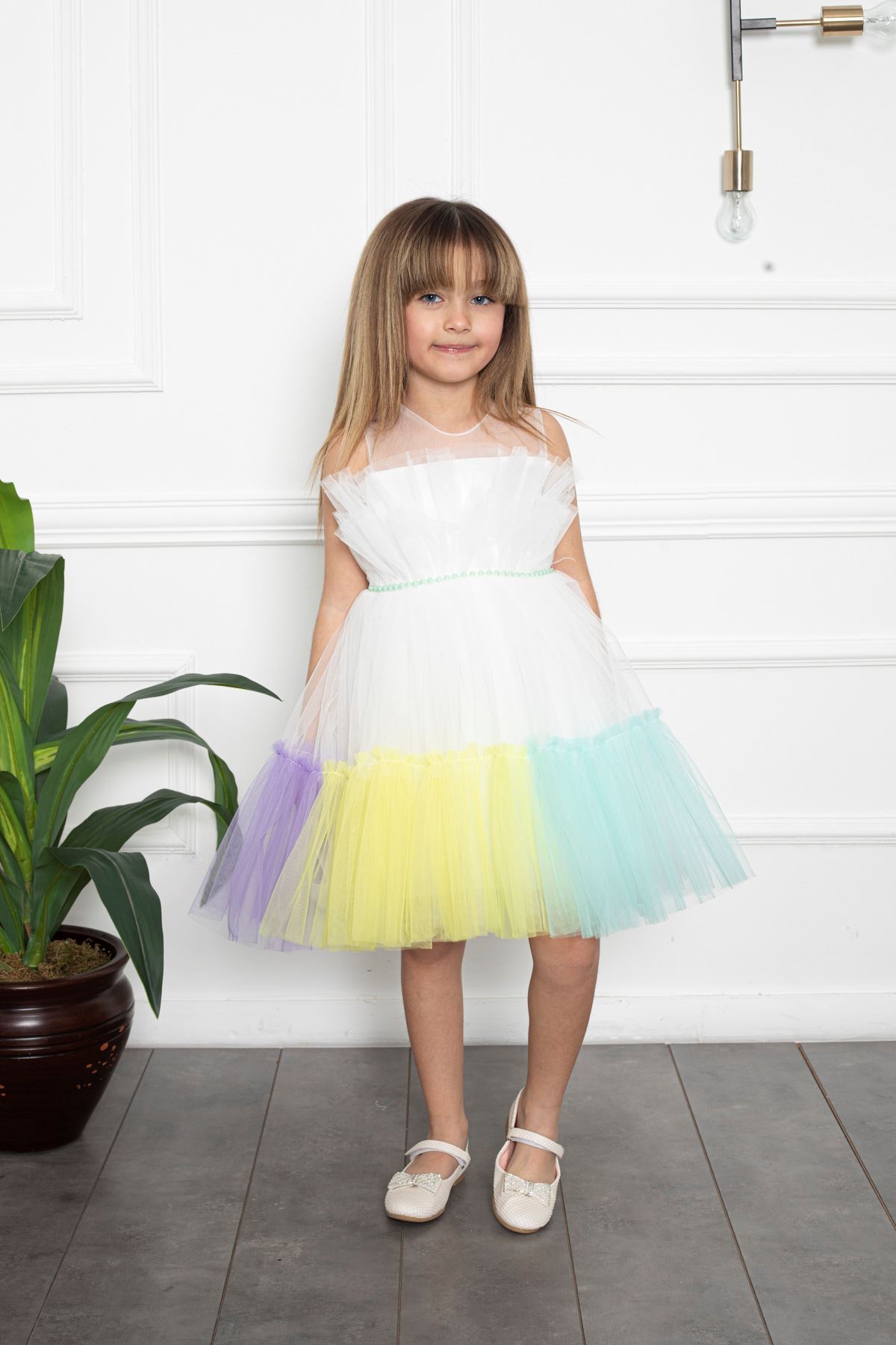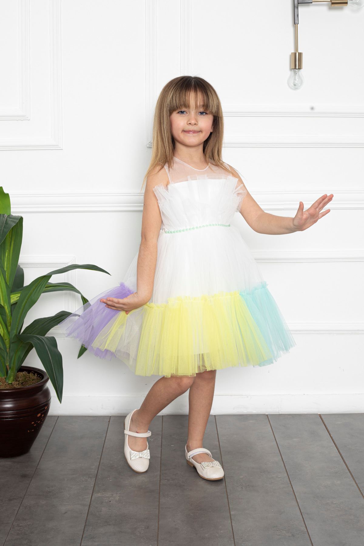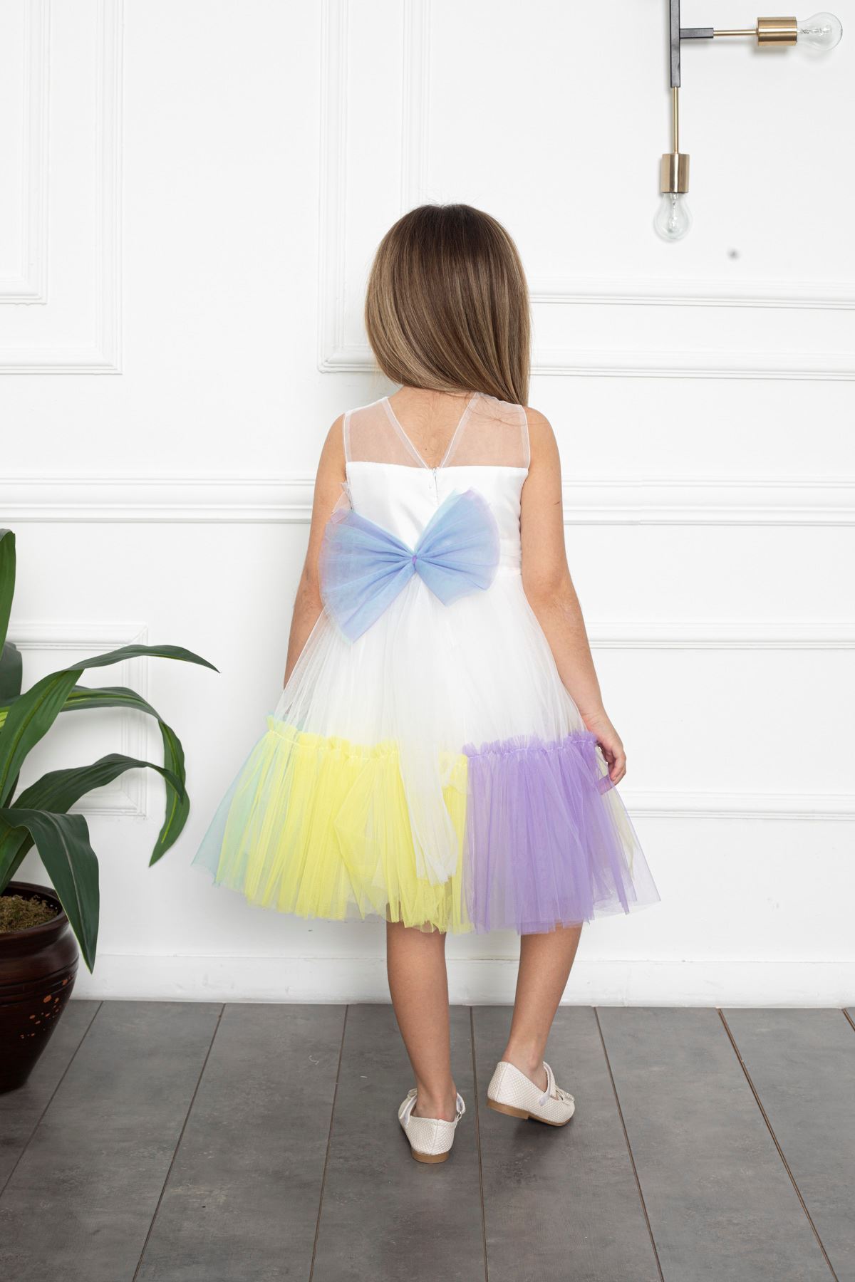 Arkası Fiyonklu Renkli Kız Çocuk Abiye Elbise