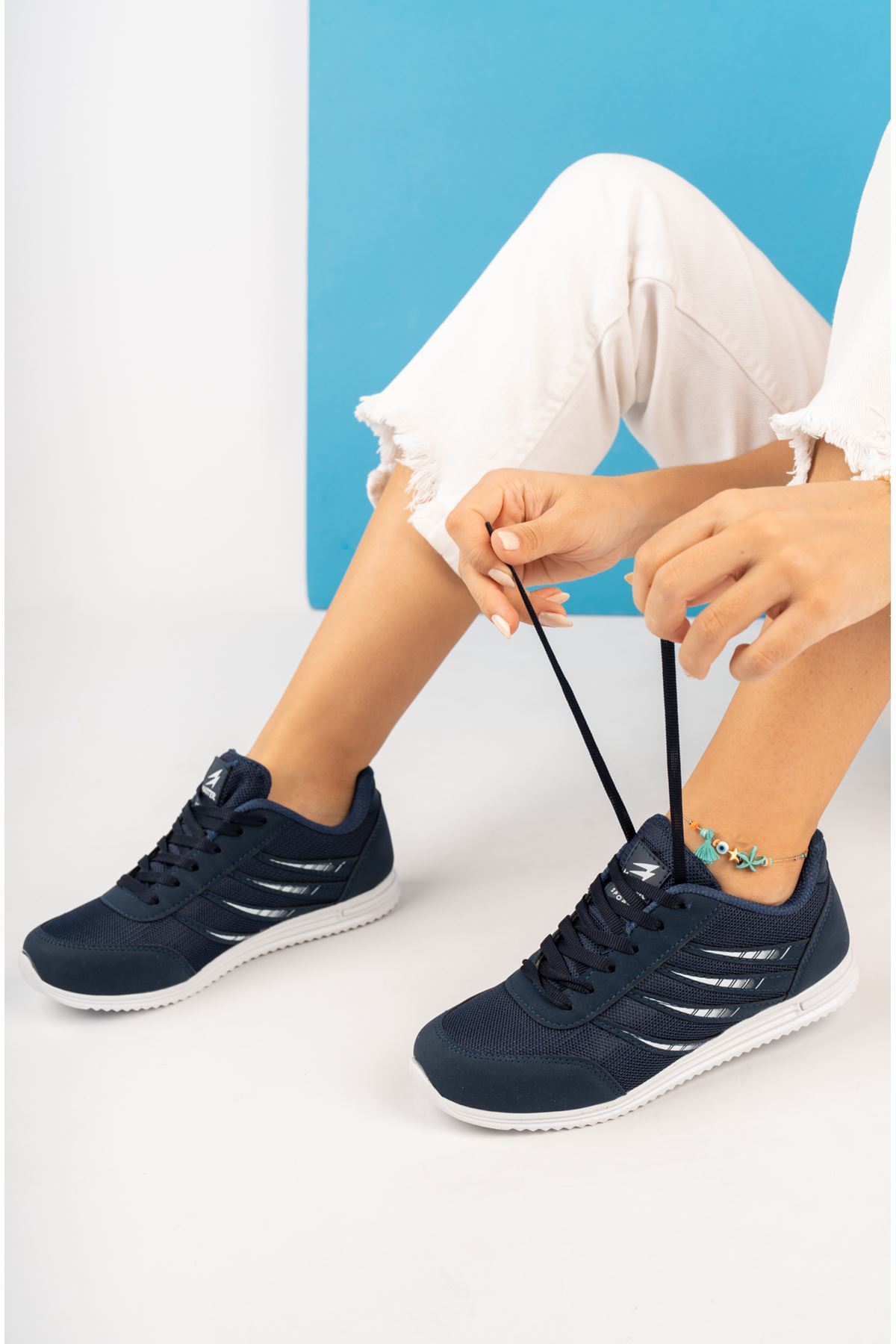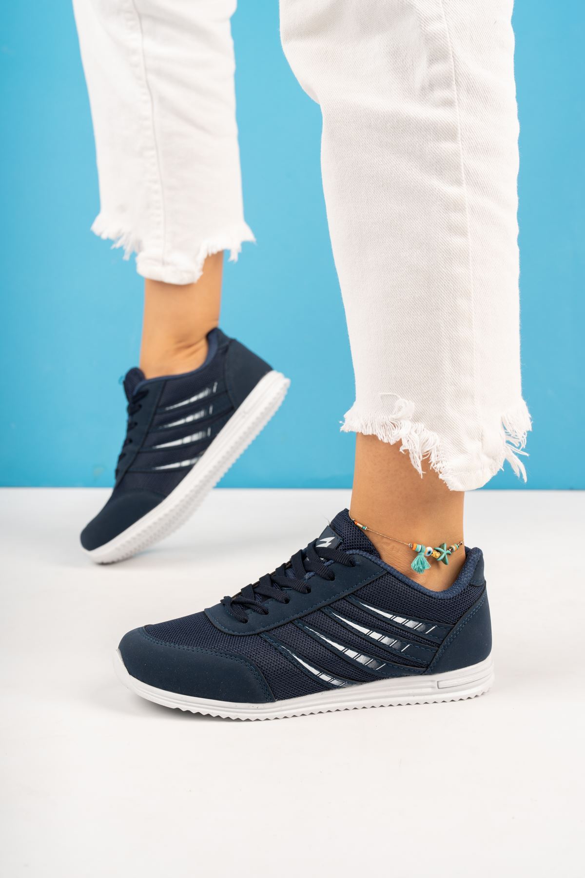 Bağcıklı Fileli Lacivert Kadın Spor Ayakkabı