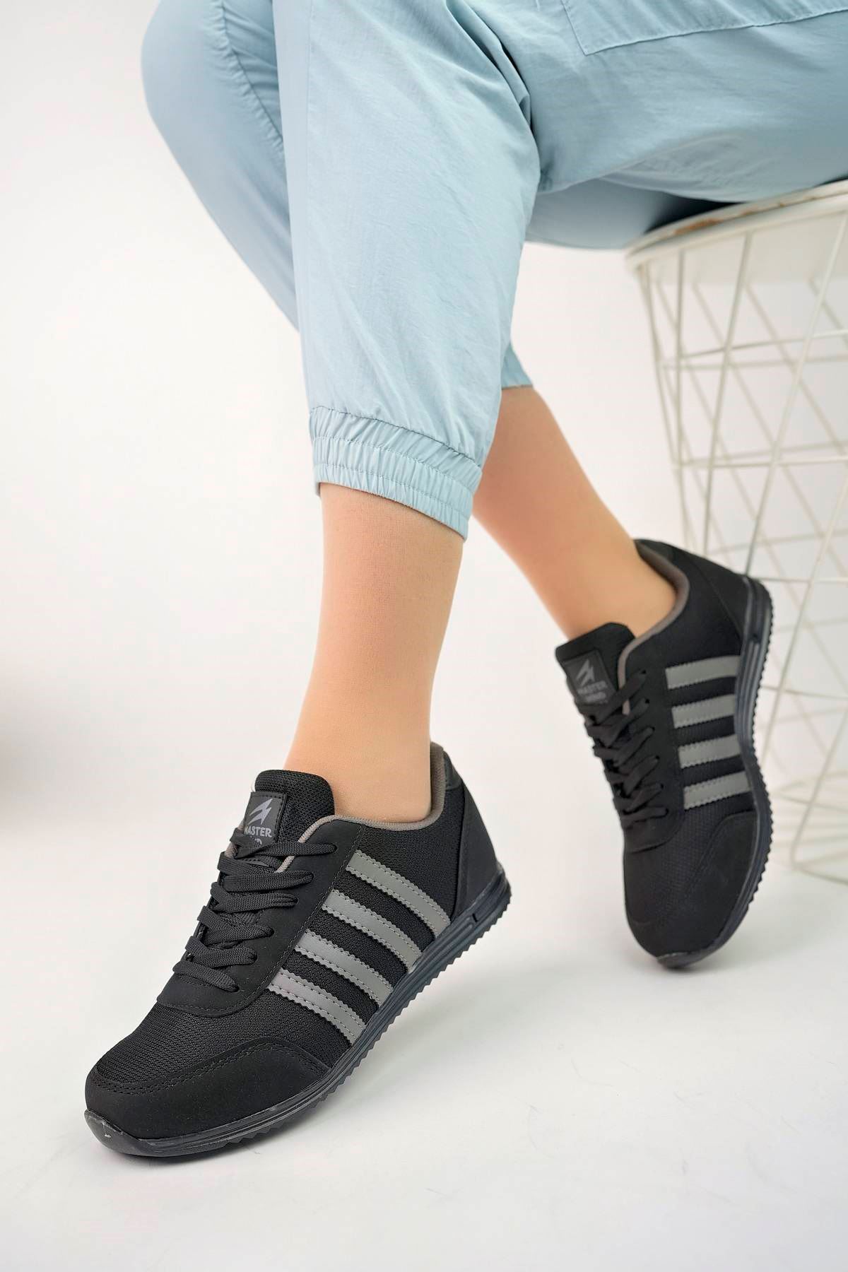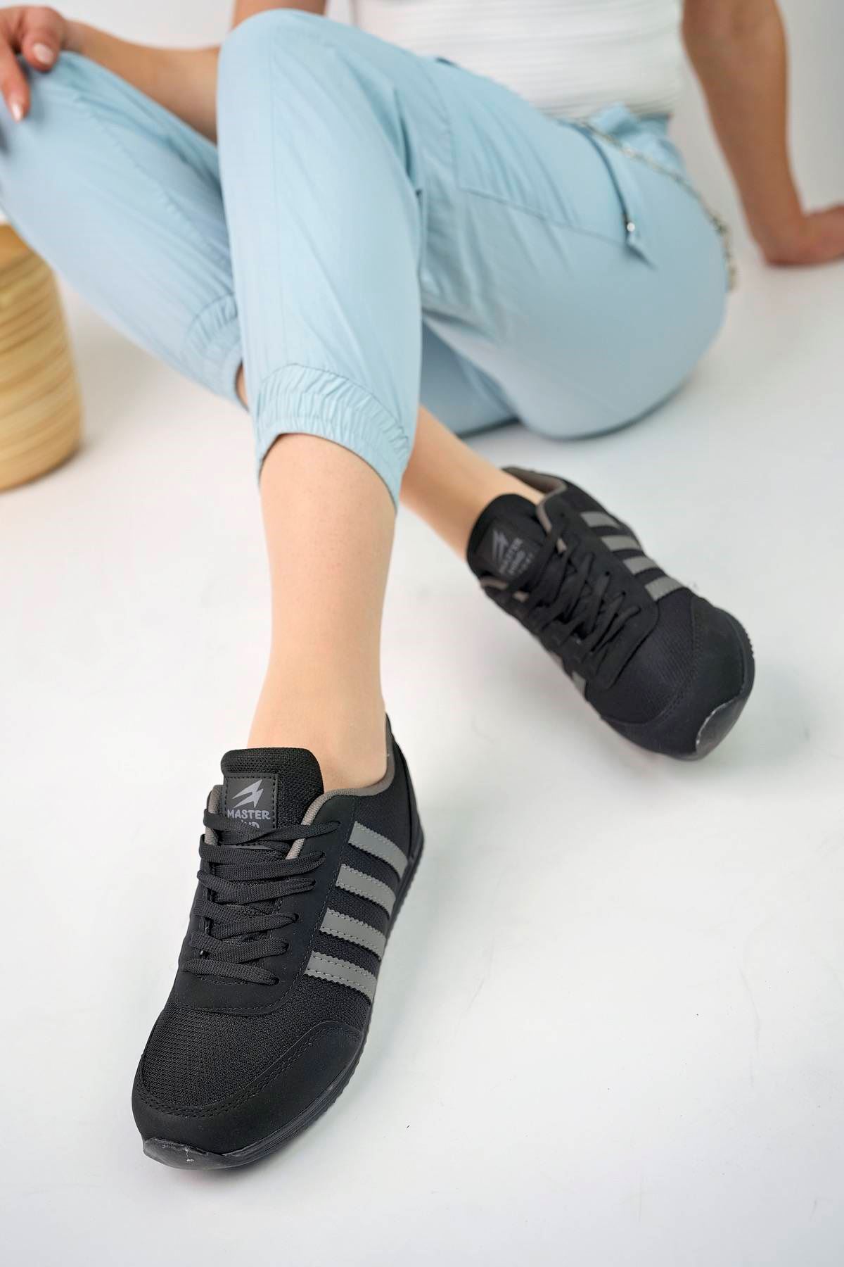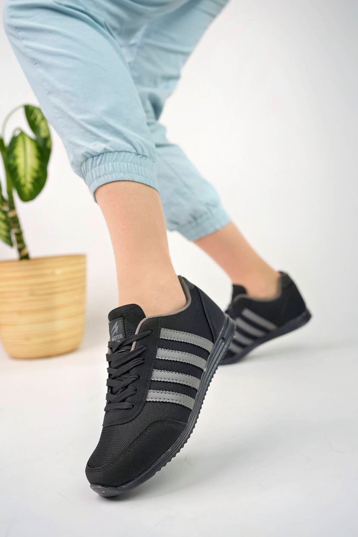 Bağcıklı Fileli Siyah Kadın Spor Ayakkabı