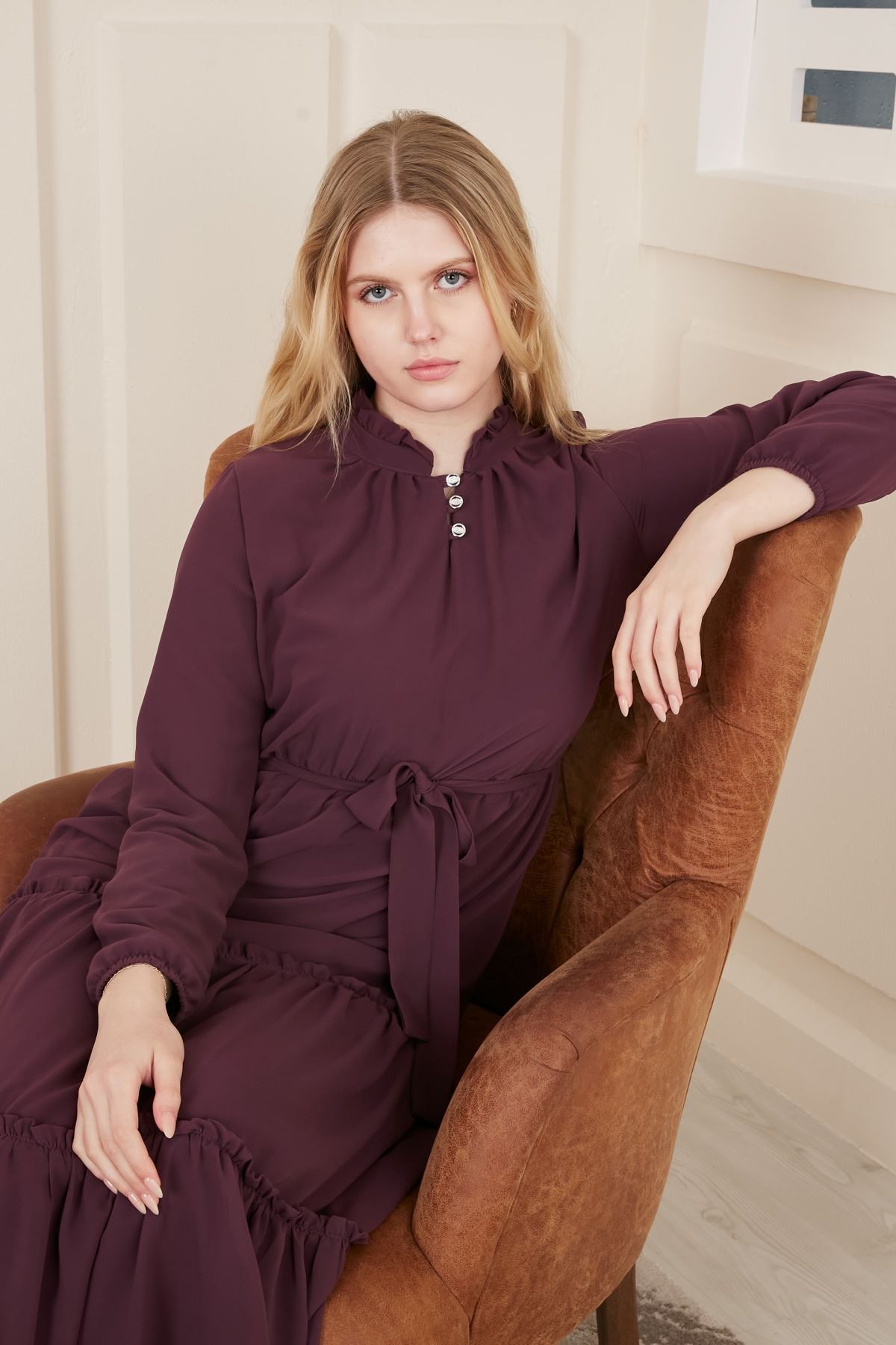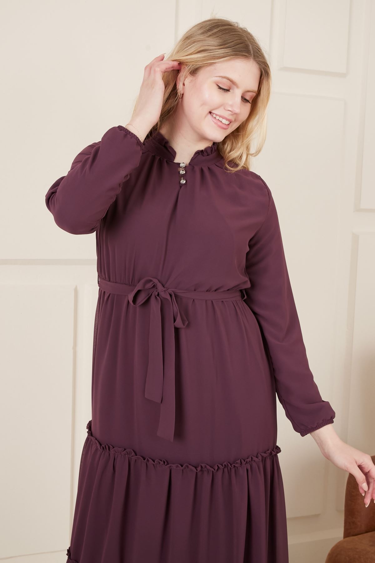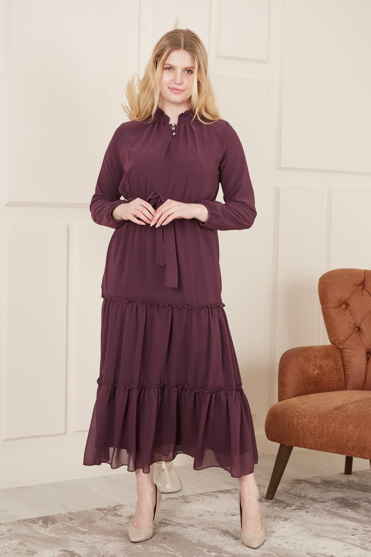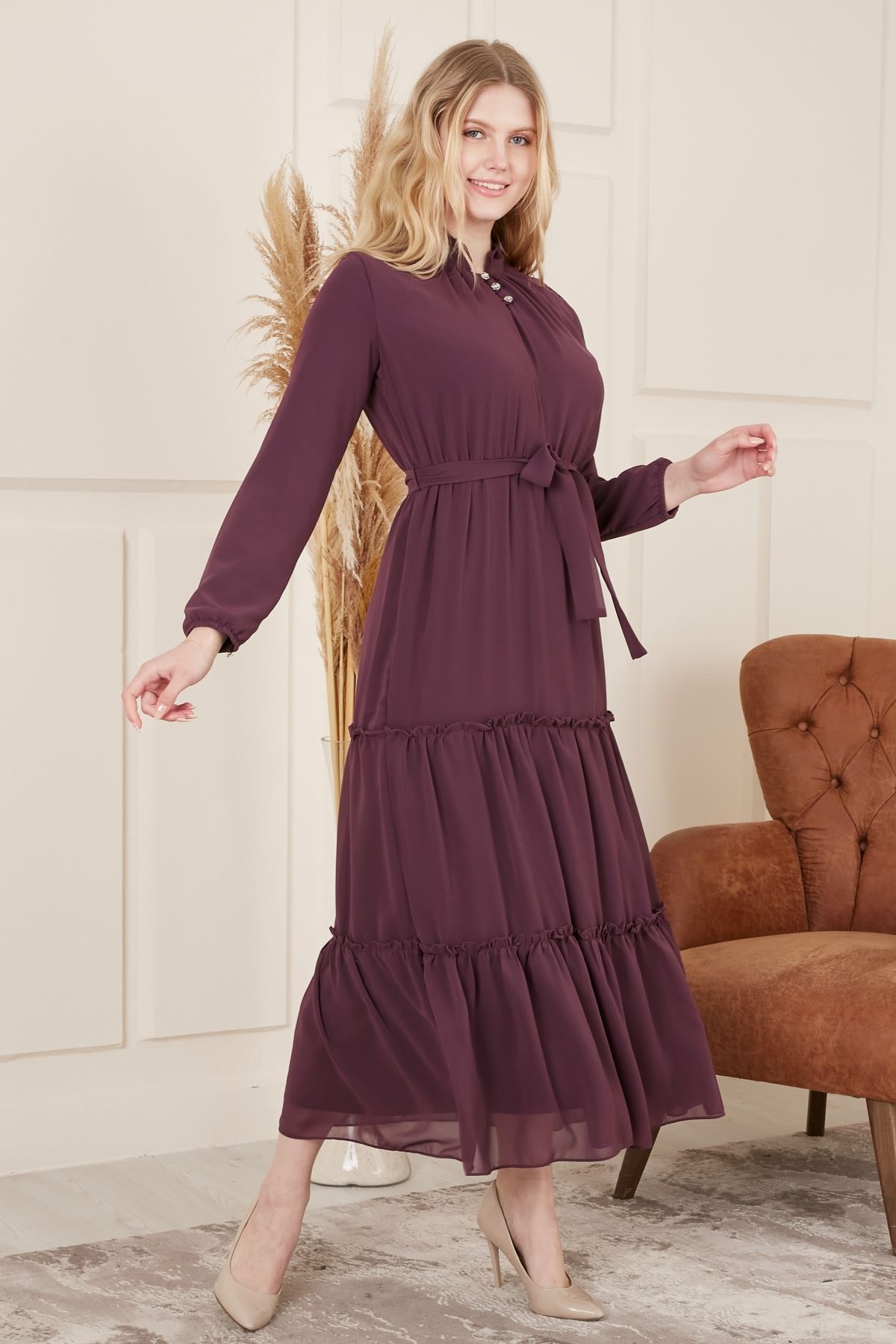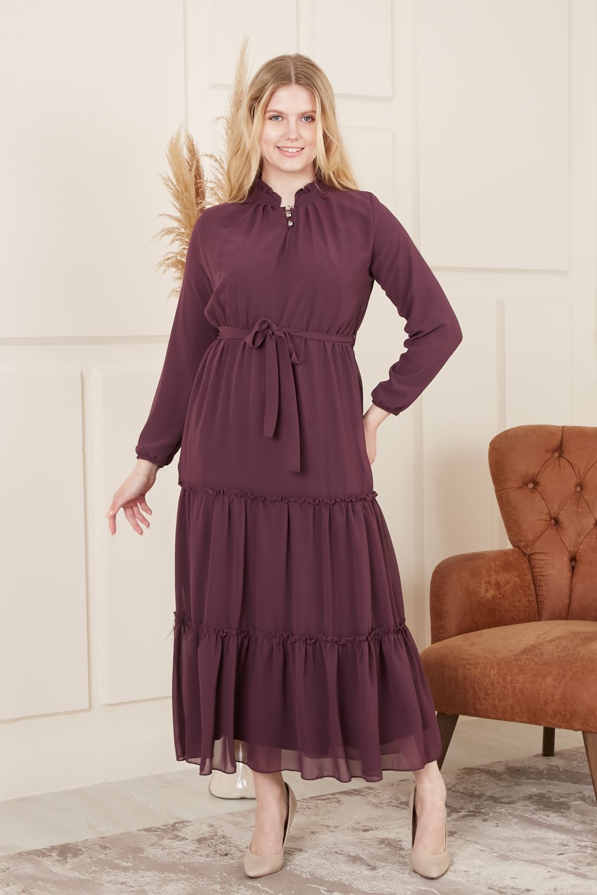 Beli Kuşaklı Şifon Kadın Elbise