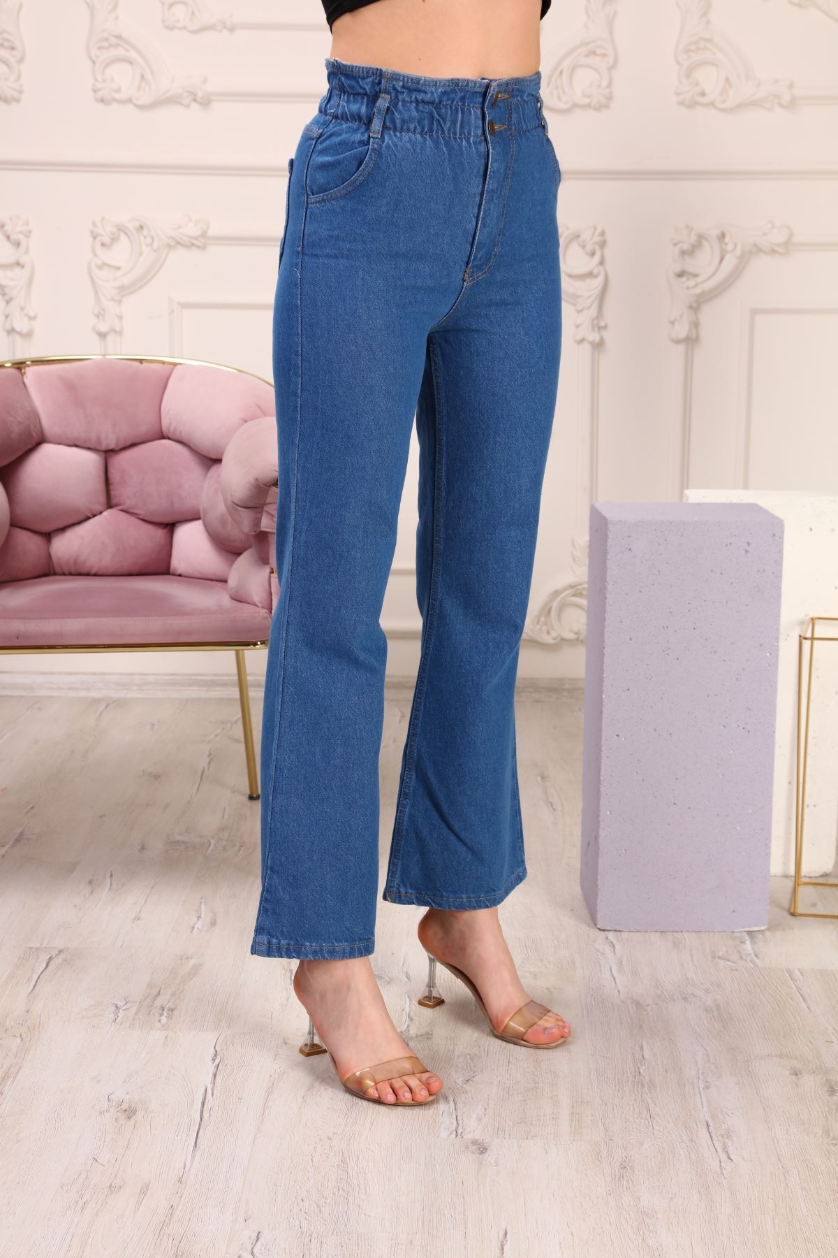 Beli Lastikli İspanyol Paça Kadın Kot Pantolon