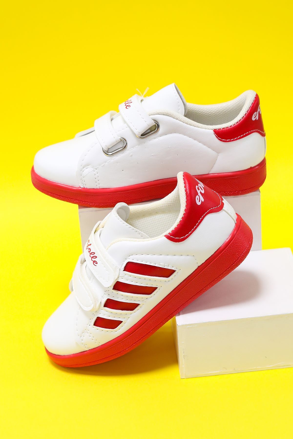 Beyaz Yanı Kırmızı Şeritli Çocuk Ayakkabı