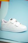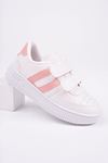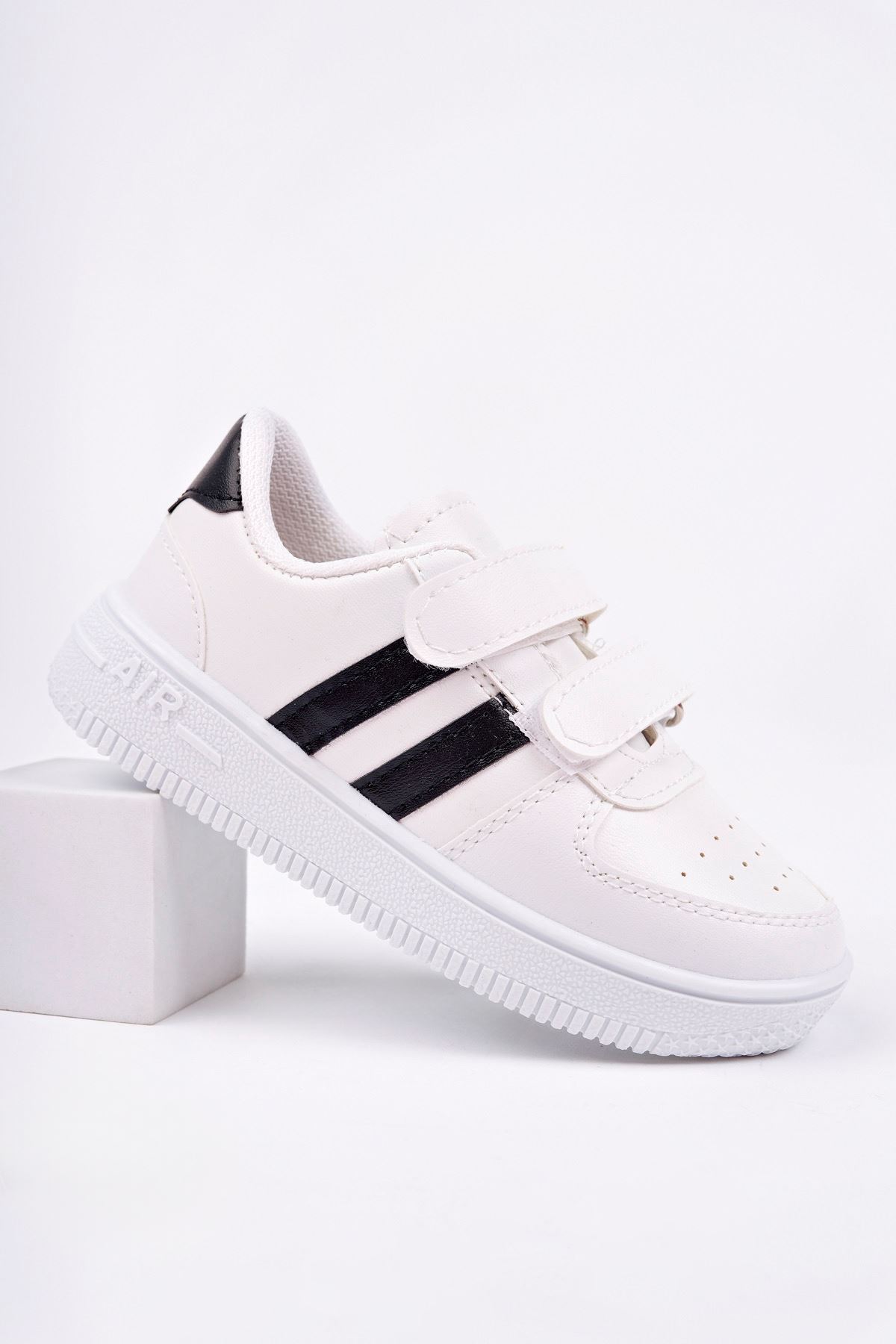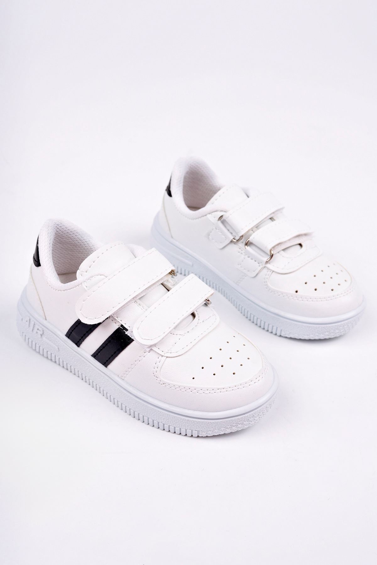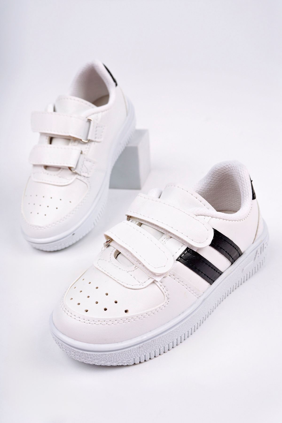 Beyaz Yanı Siyah Şeritli Cırtlı Çocuk Spor Ayakkabı