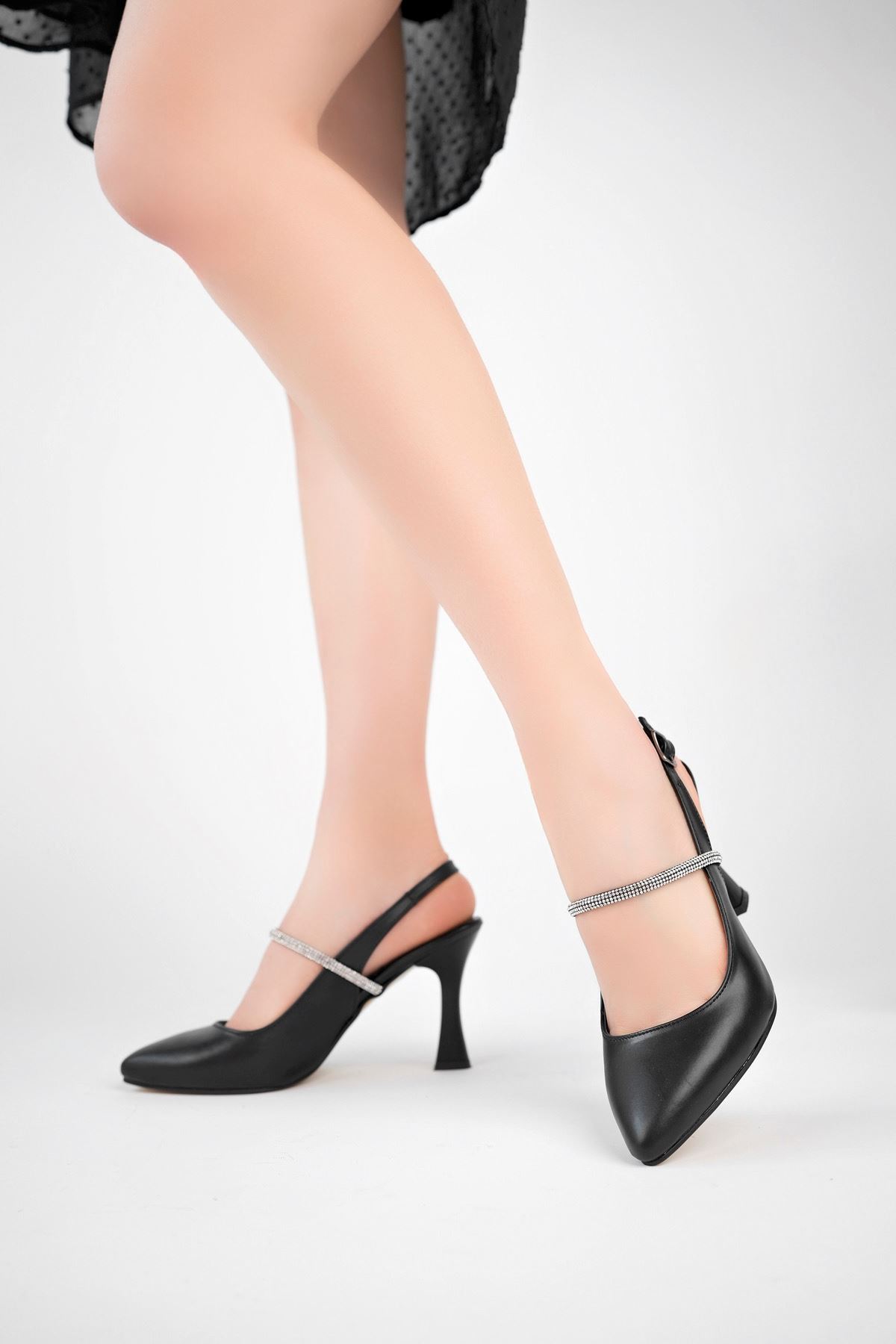 Biyesi Taşlı Siyah Cilt Kadın Ayakkabı