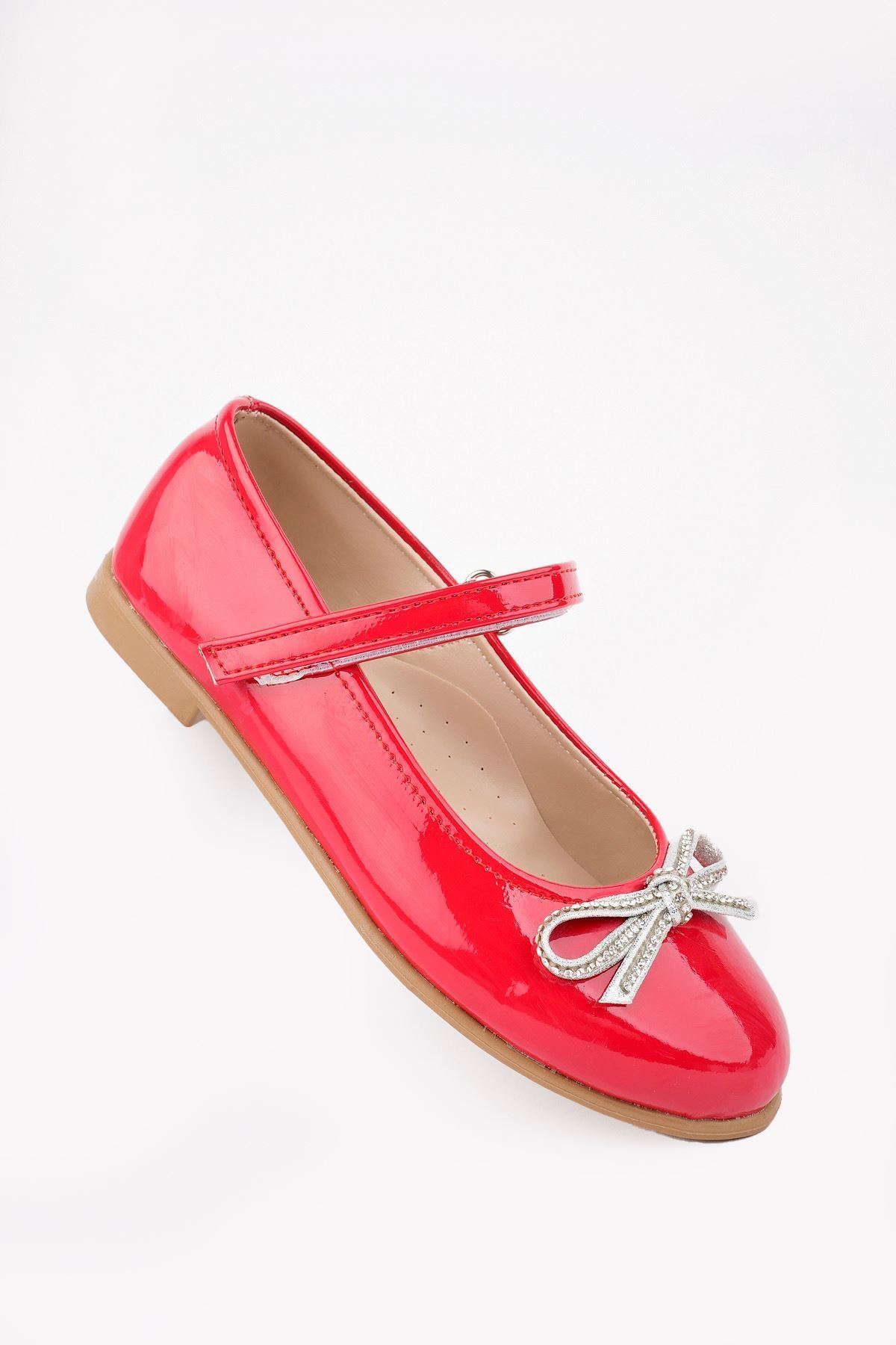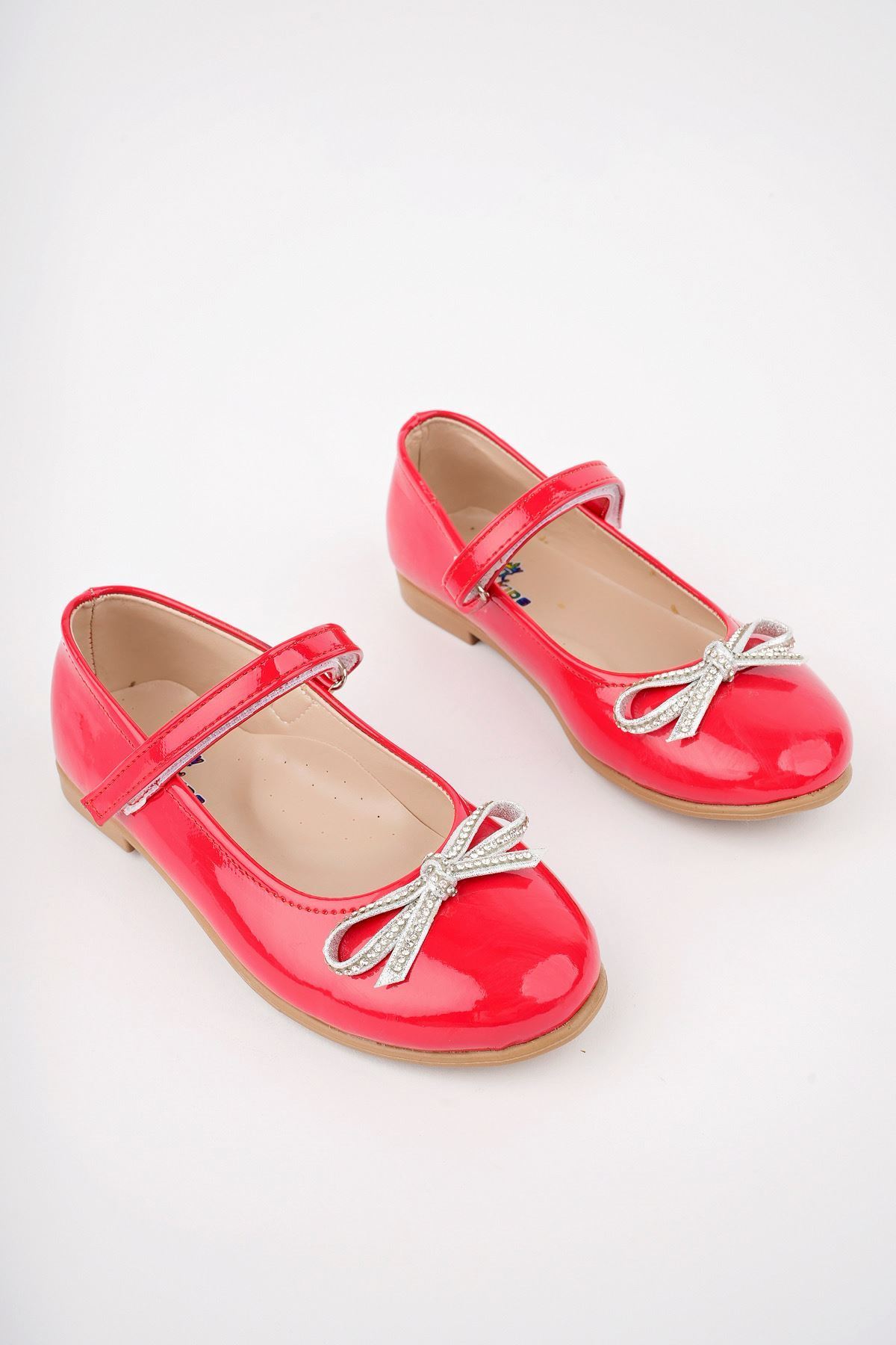 Bıyık Fiyonk Kırmızı Rugan Kız Bebe Ayakkabı
