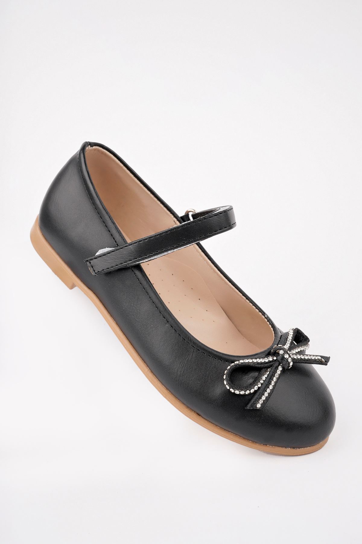 Bıyık Fiyonk Siyah Cilt Kız Çocuk Ayakkabı