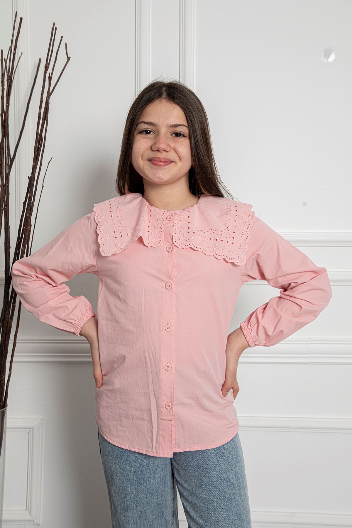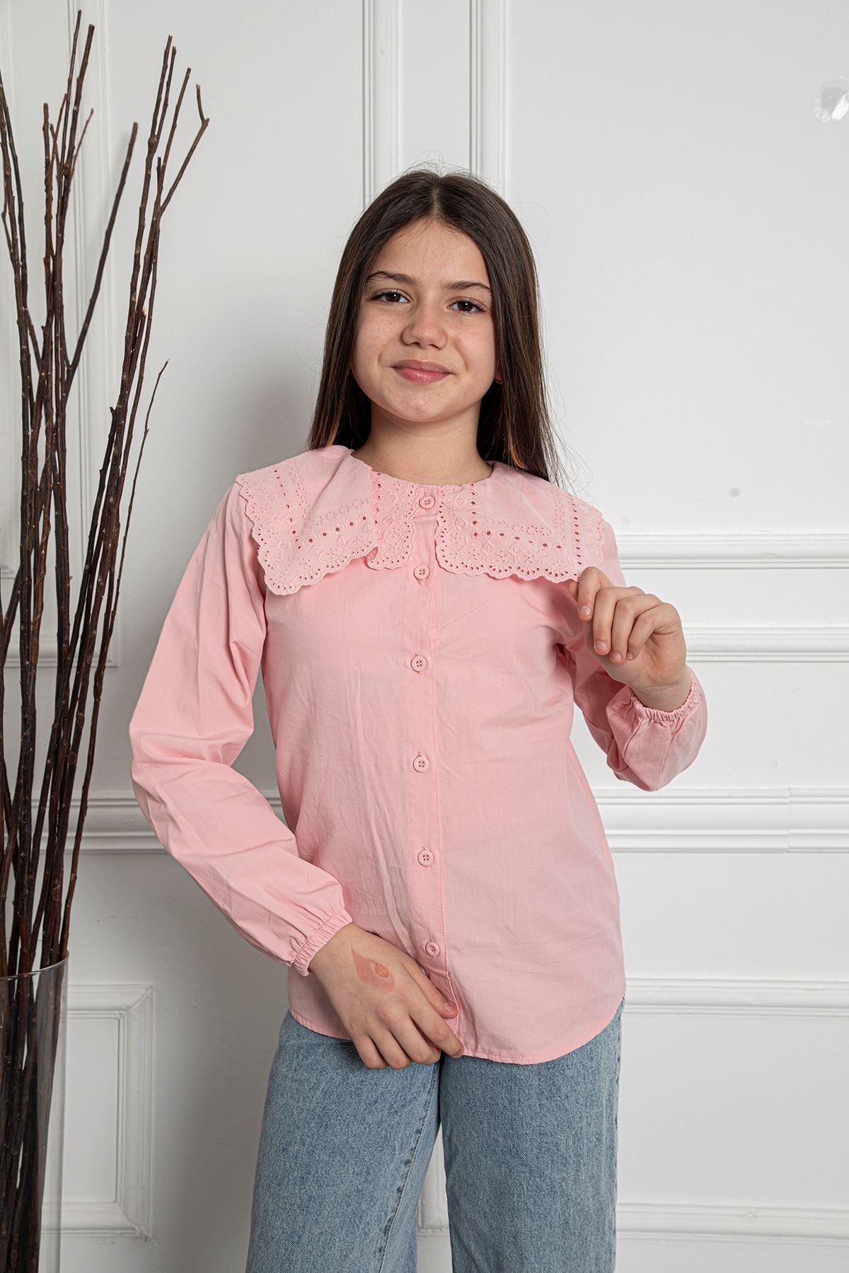 Büyük Brode Yaka Kız Çocuk Gömlek