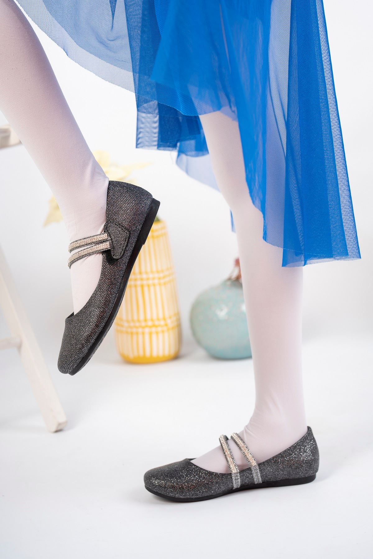 Çatal Baretli Kalpli Siyah Star Kız Çocuk Ayakkabı