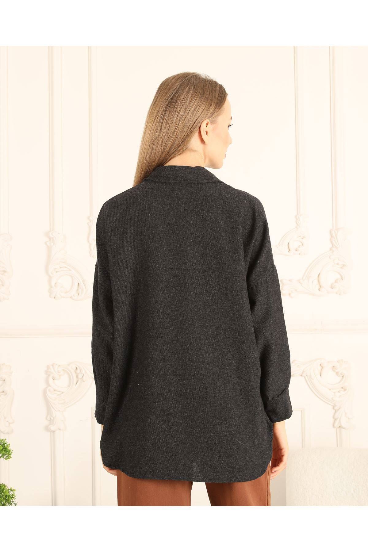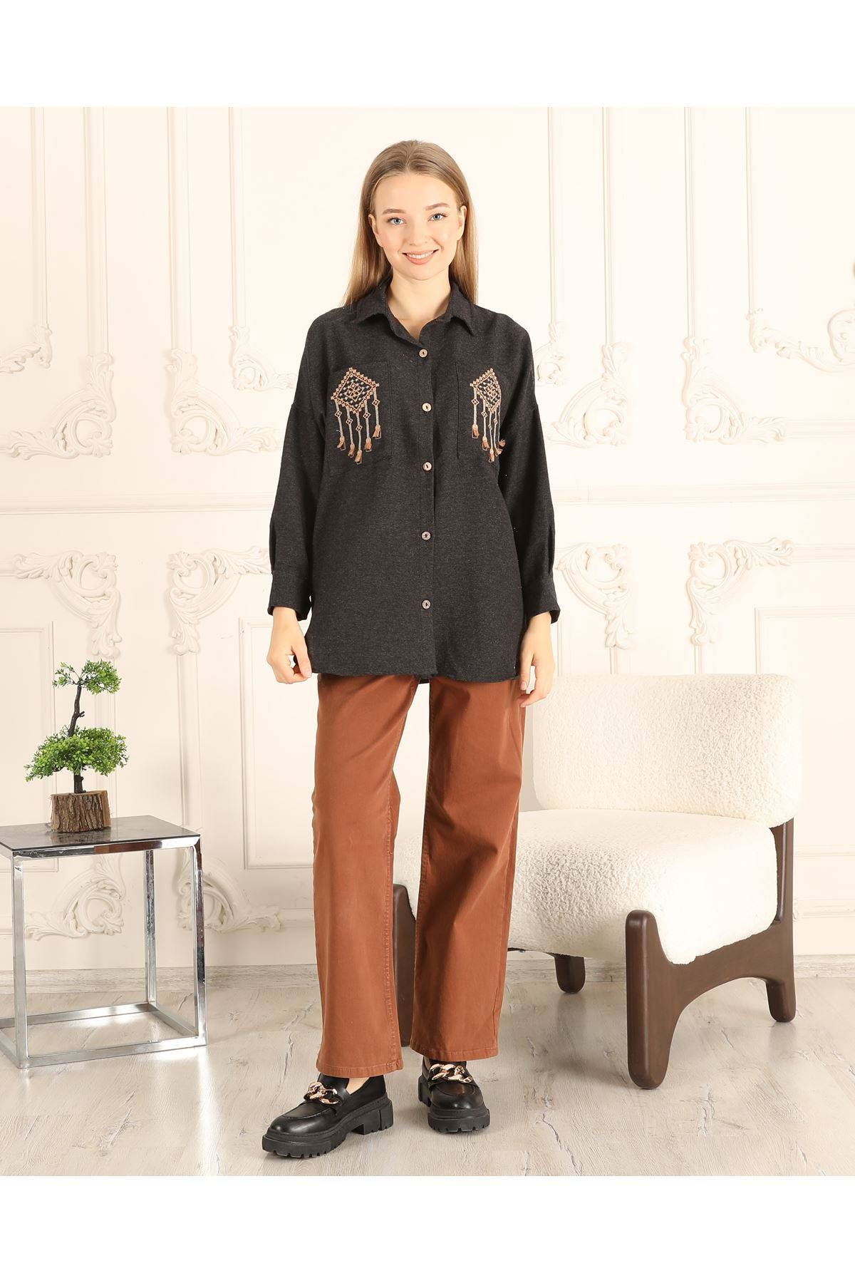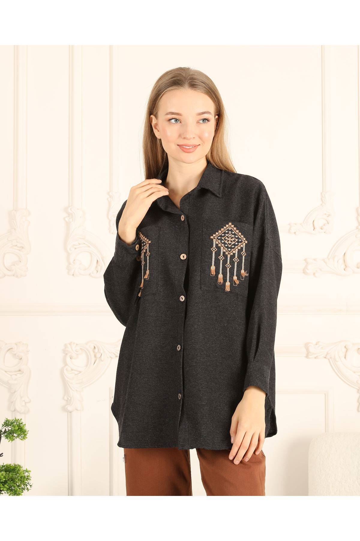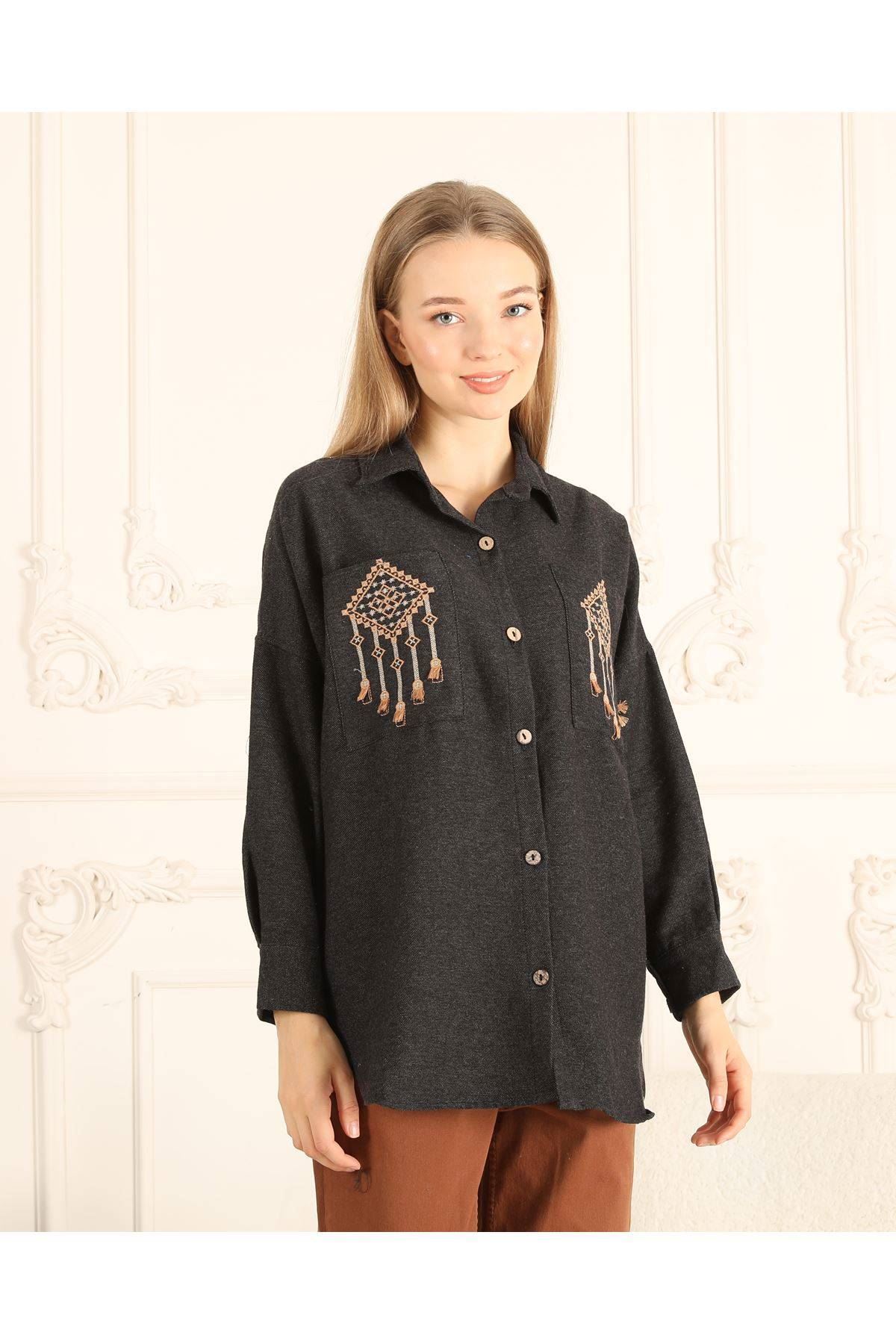 Cepleri Nakışlı Kadın Gömlek
