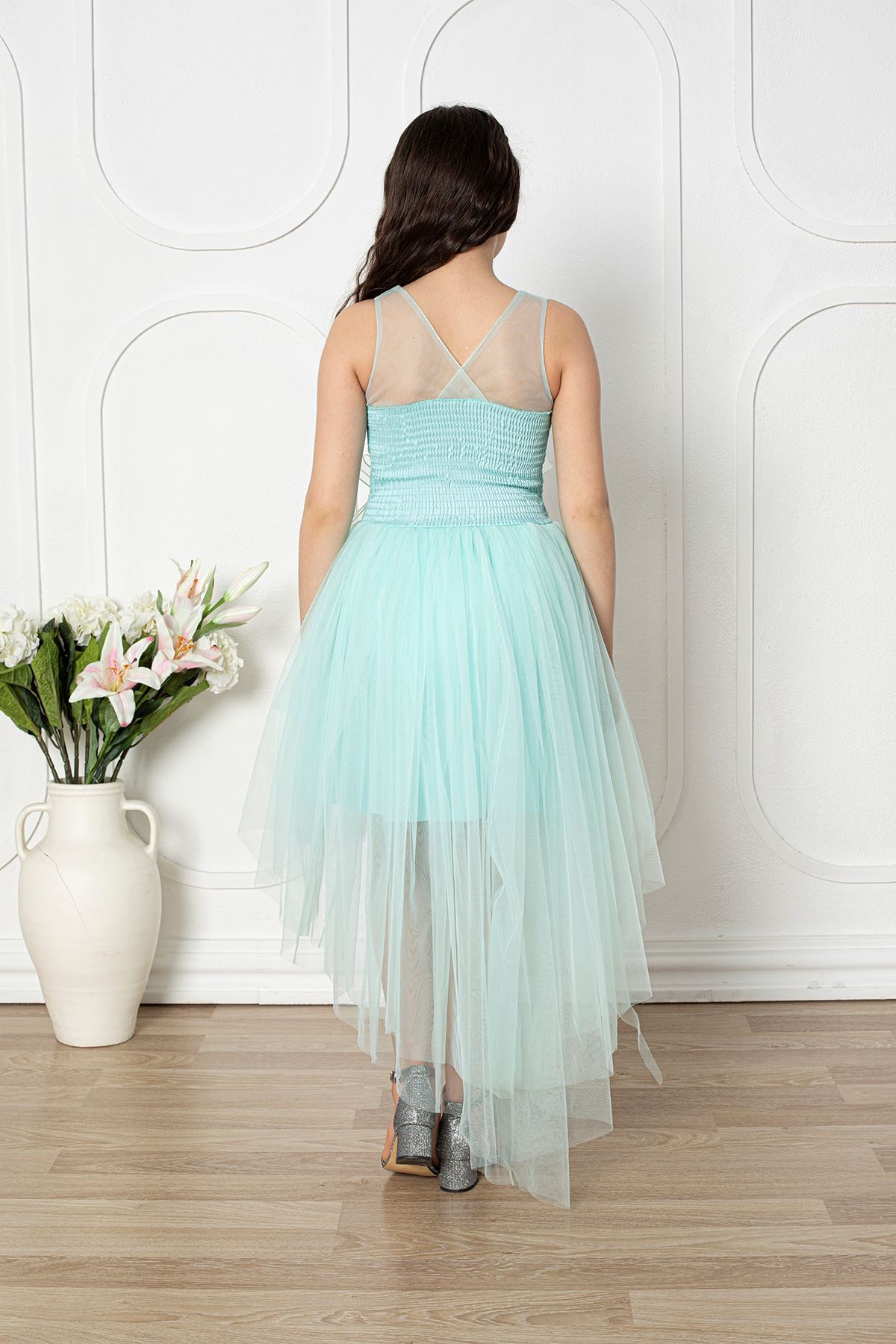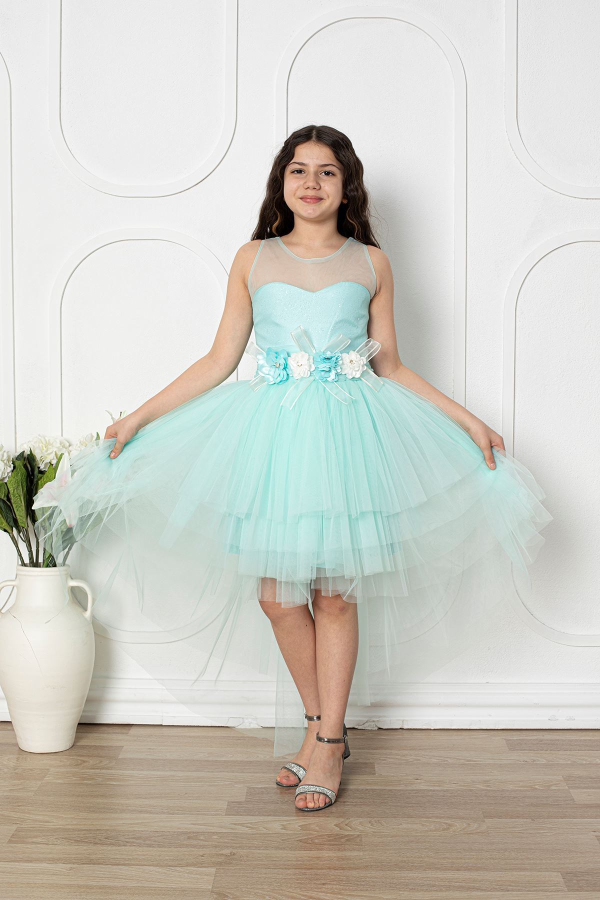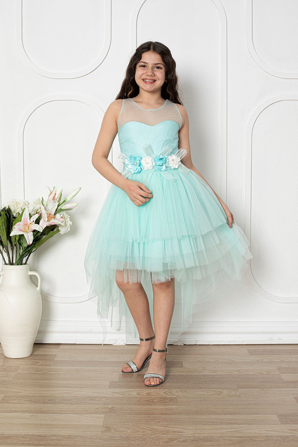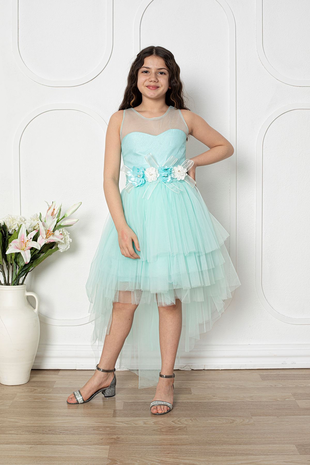 Çiçekli Kız Çocuk Abiye Elbise