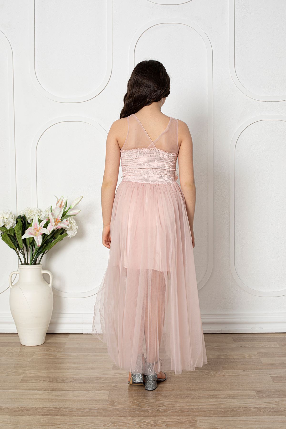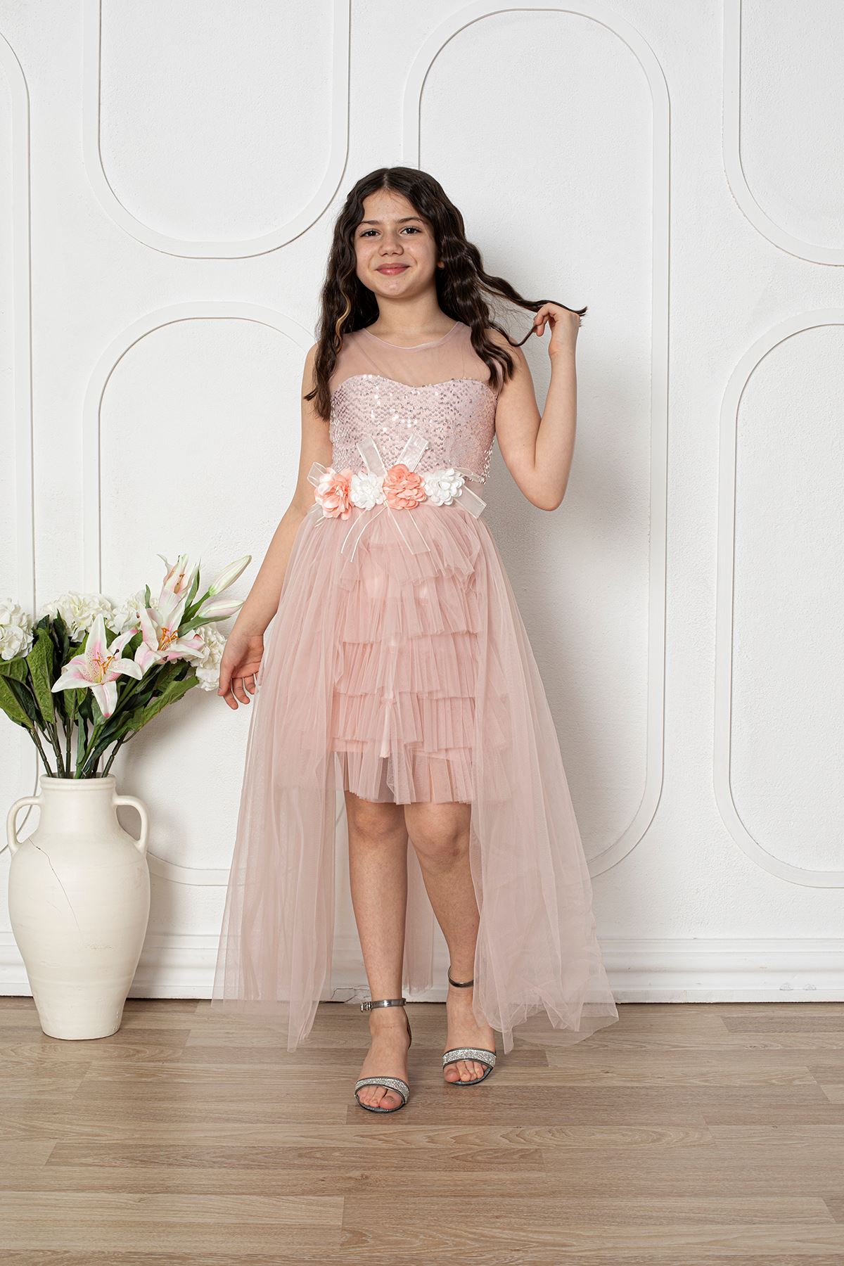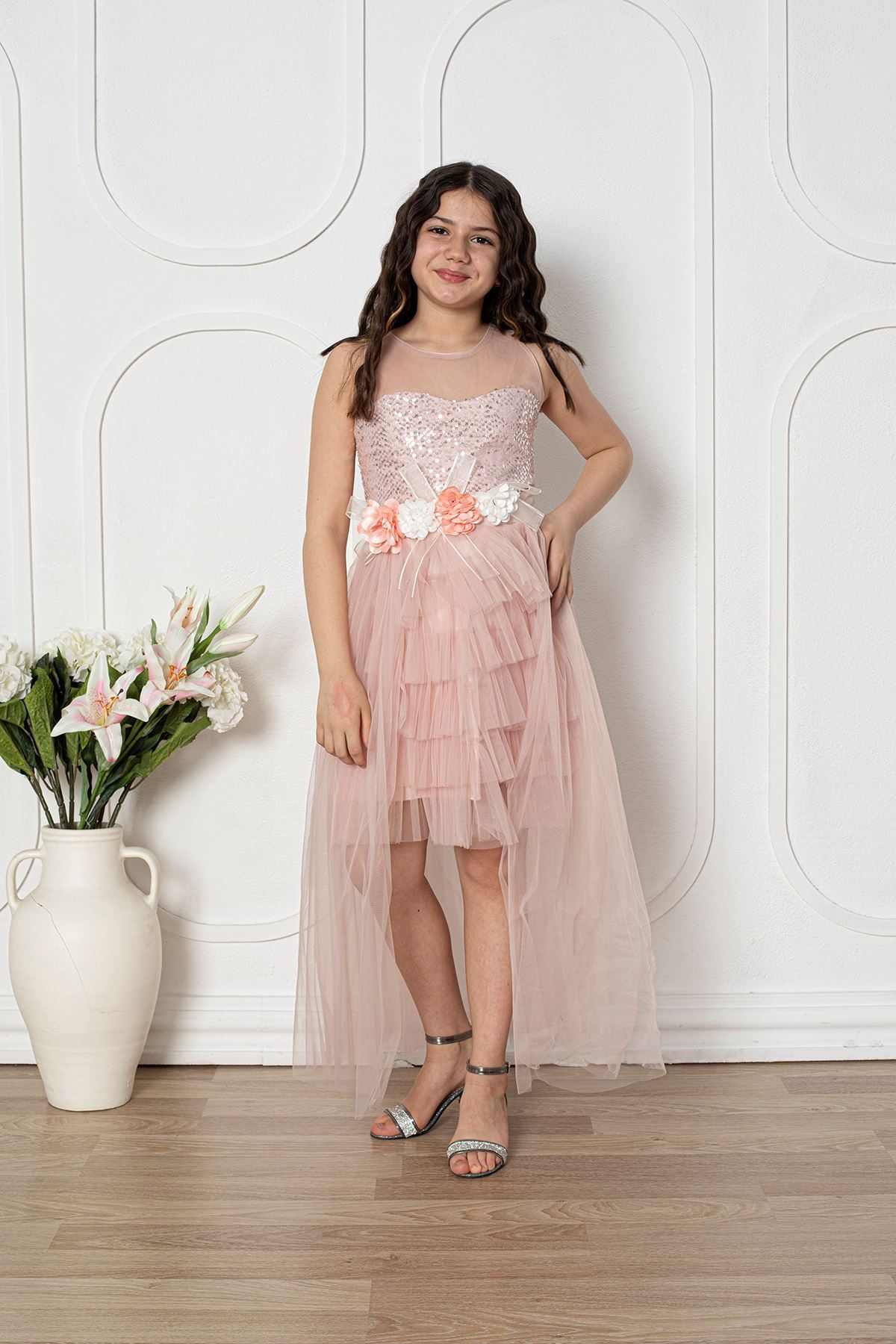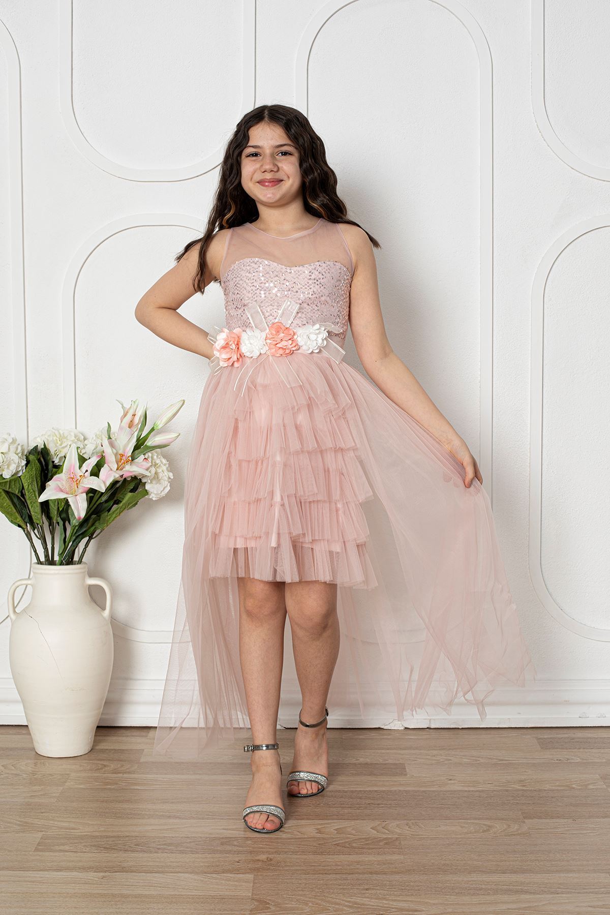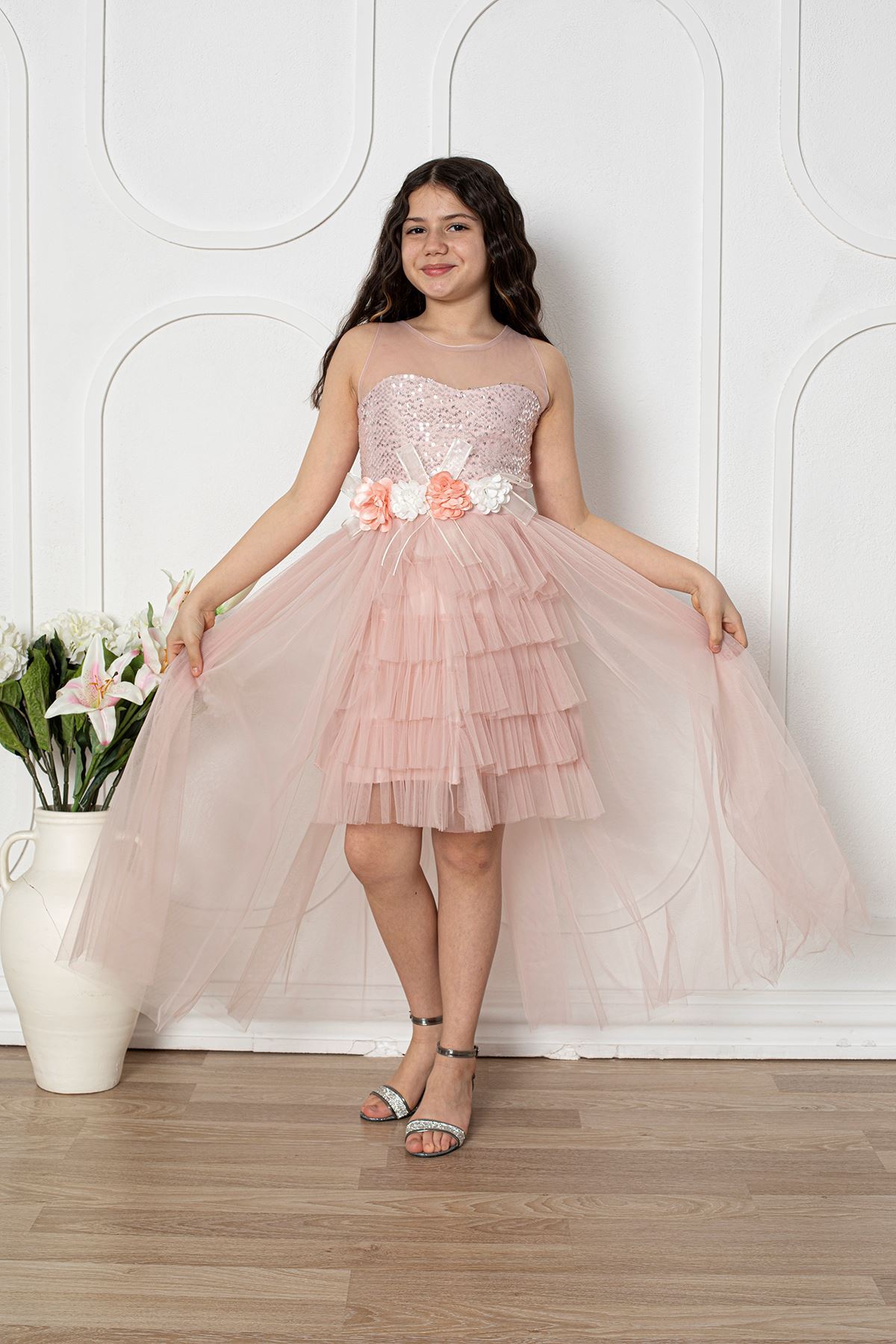 Çiçekli Kız Çocuk Abiye Elbise