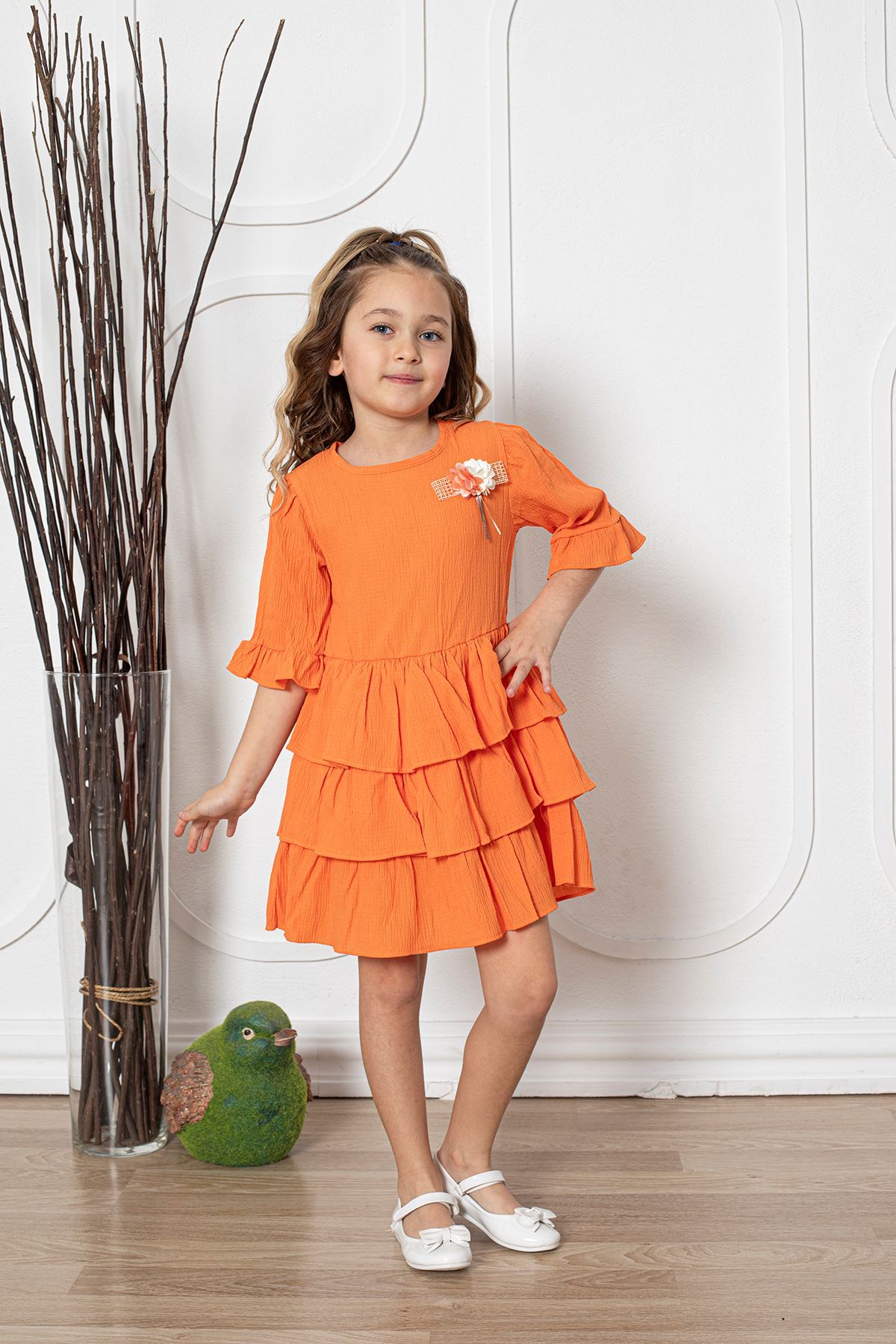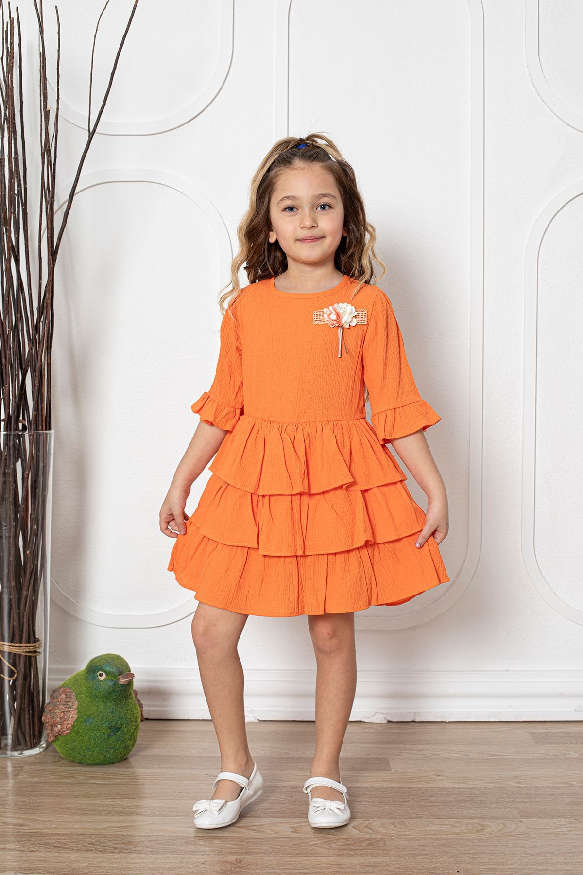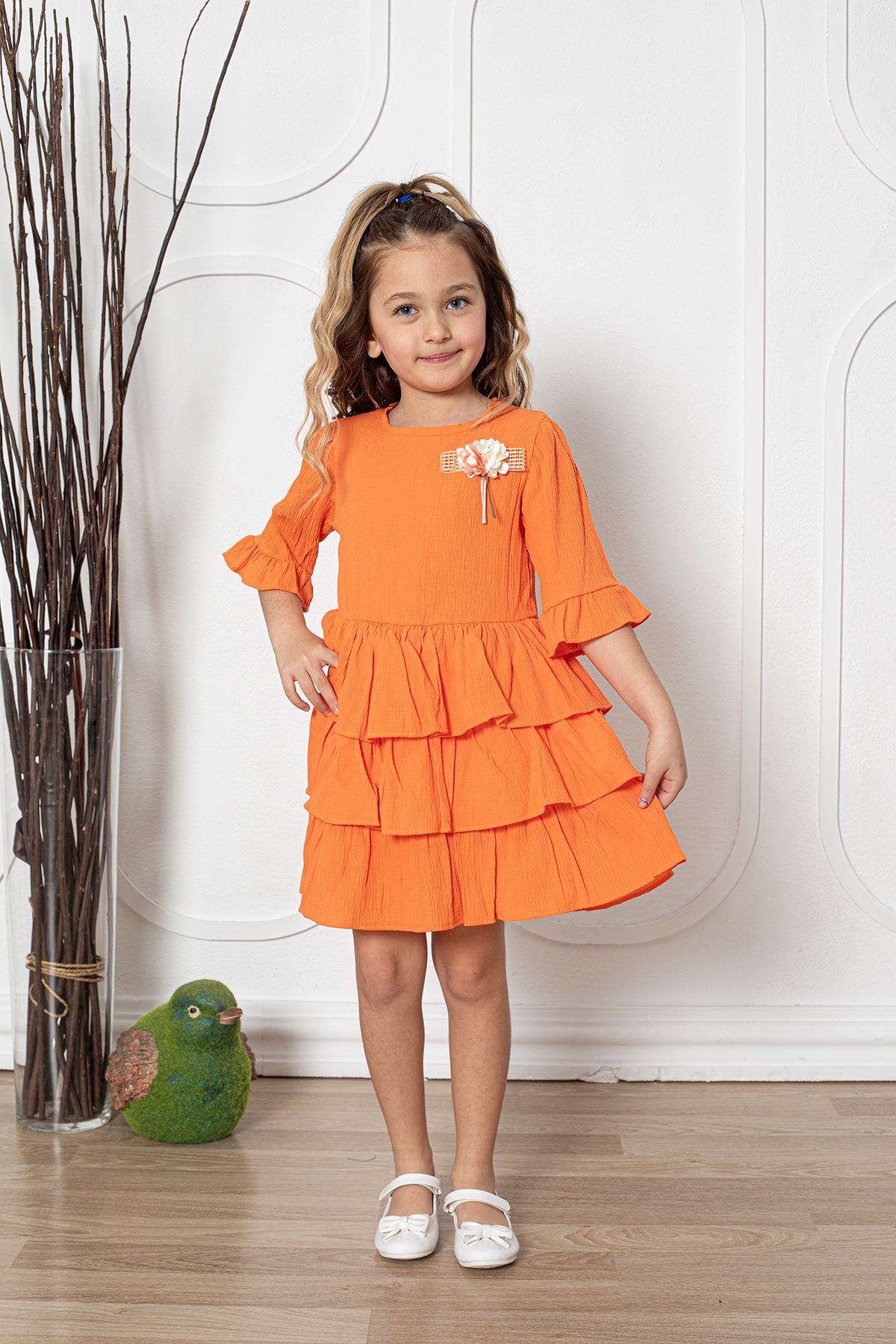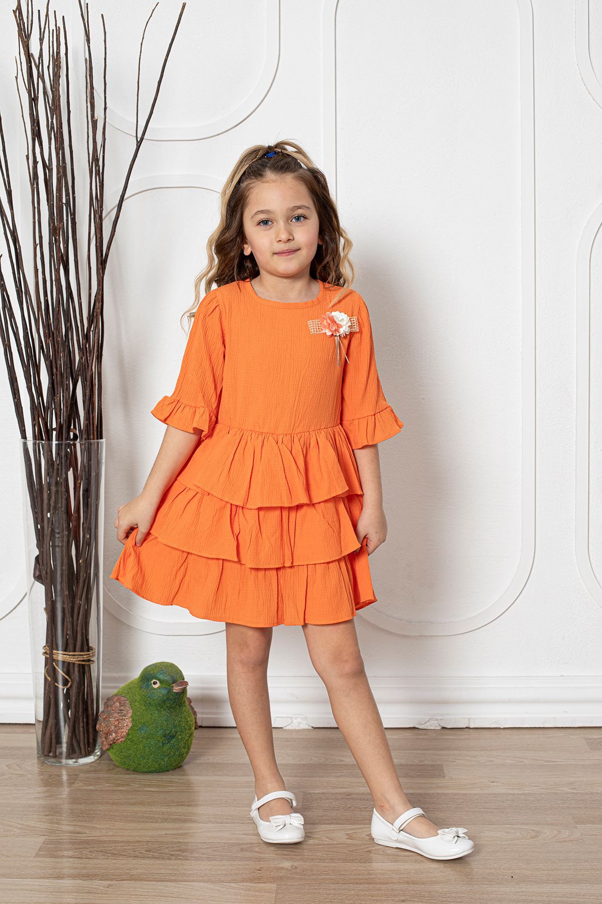 Çiçekli Kız Çocuk Elbise