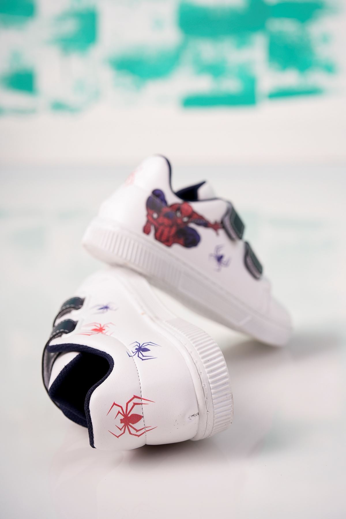 Cırtlı Lacivert Baskılı Beyaz Çocuk Ayakkabı