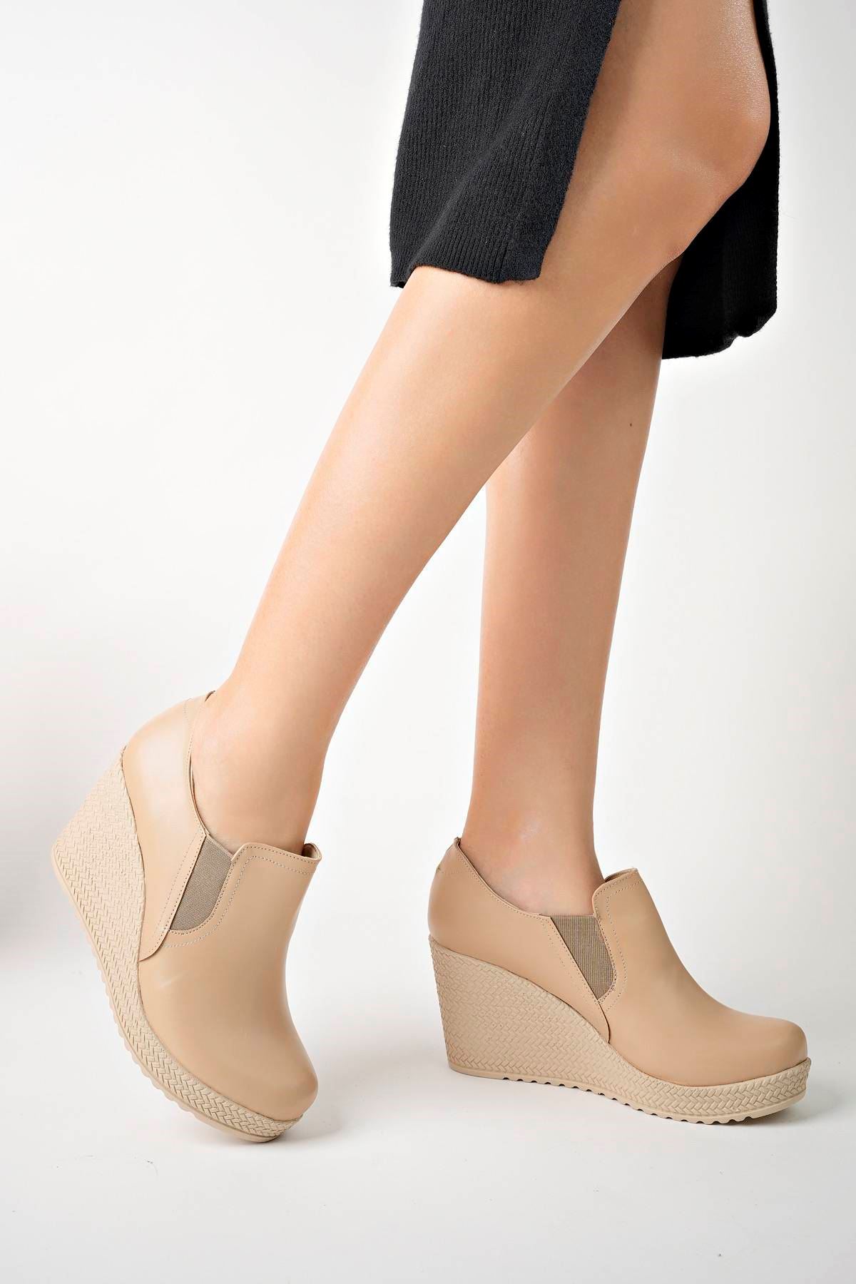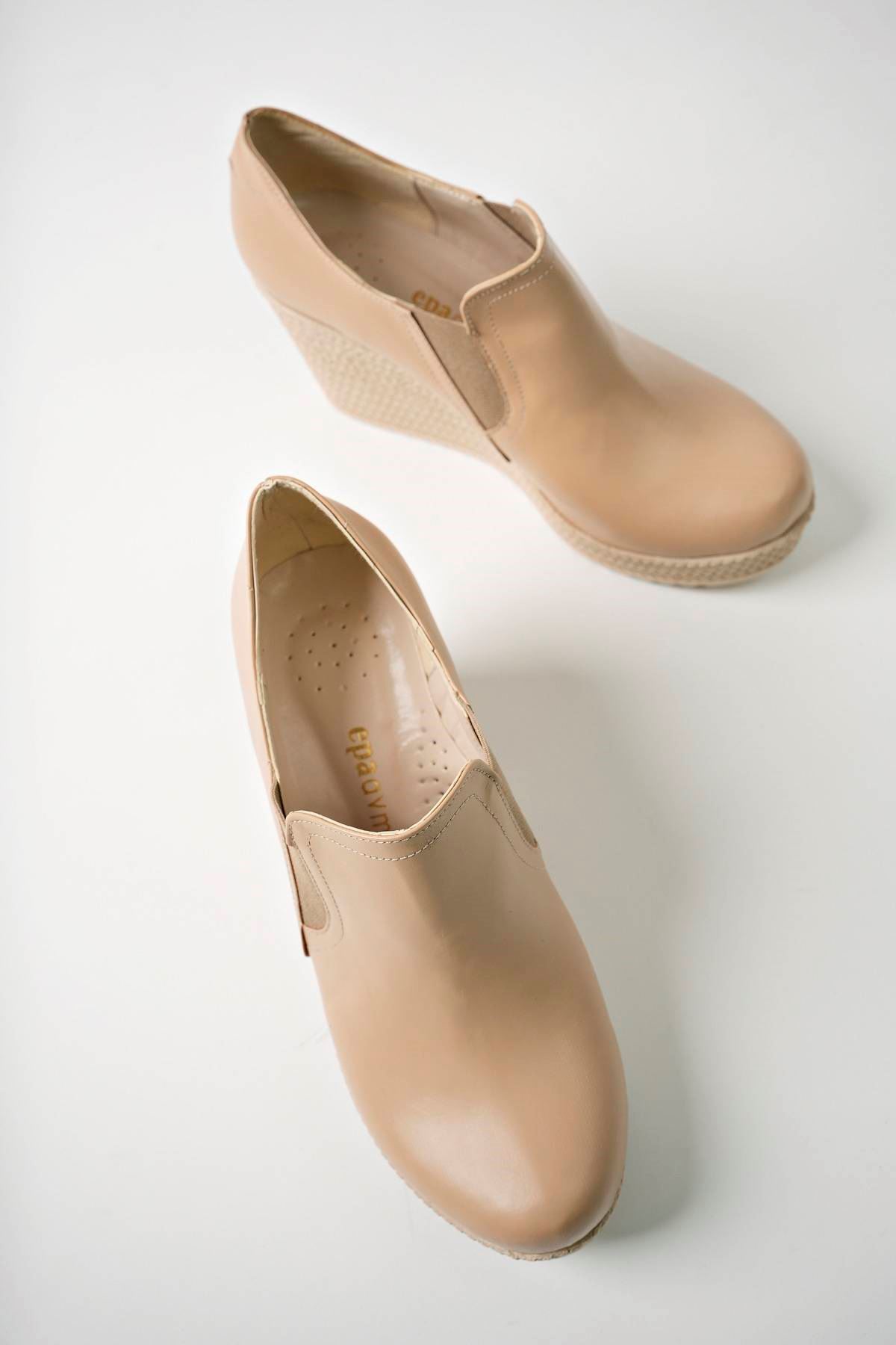 Dolgu Taban Çift Lastikli Nut Cilt Ayakkabı