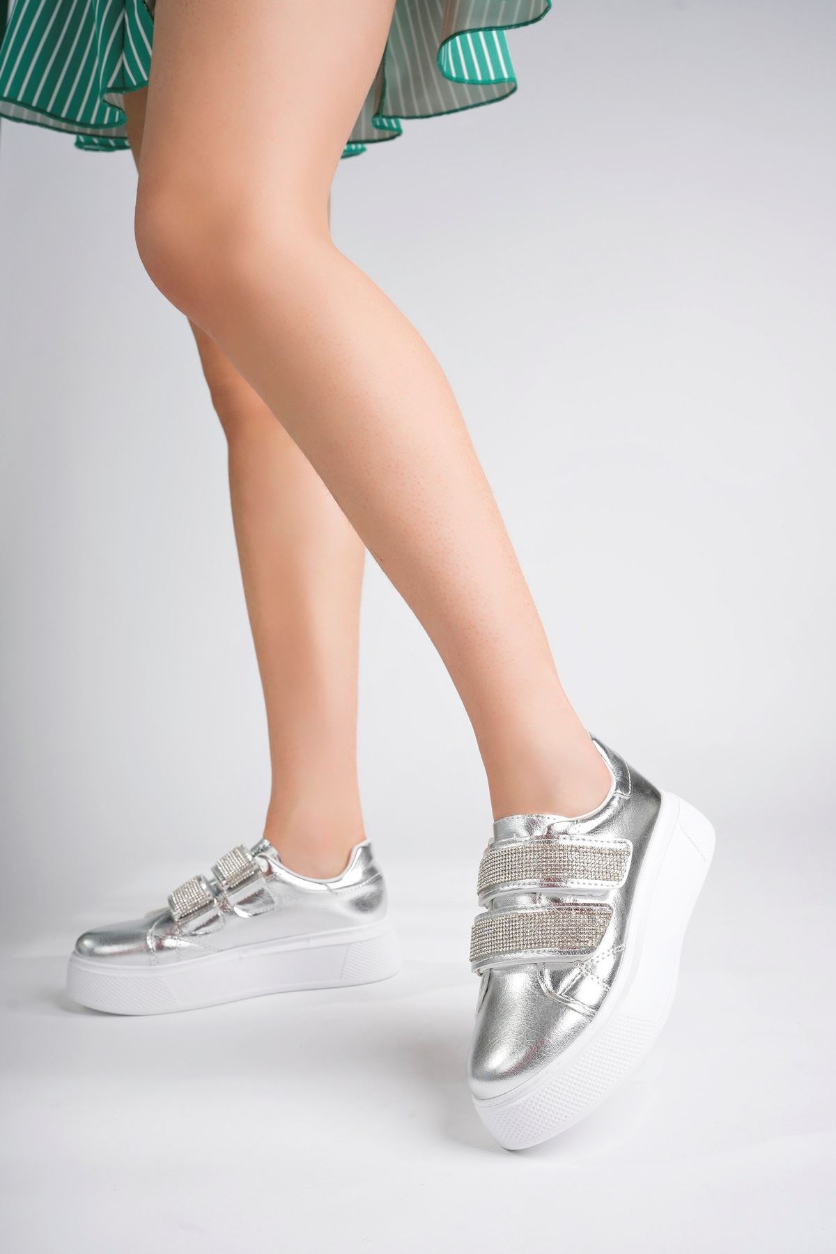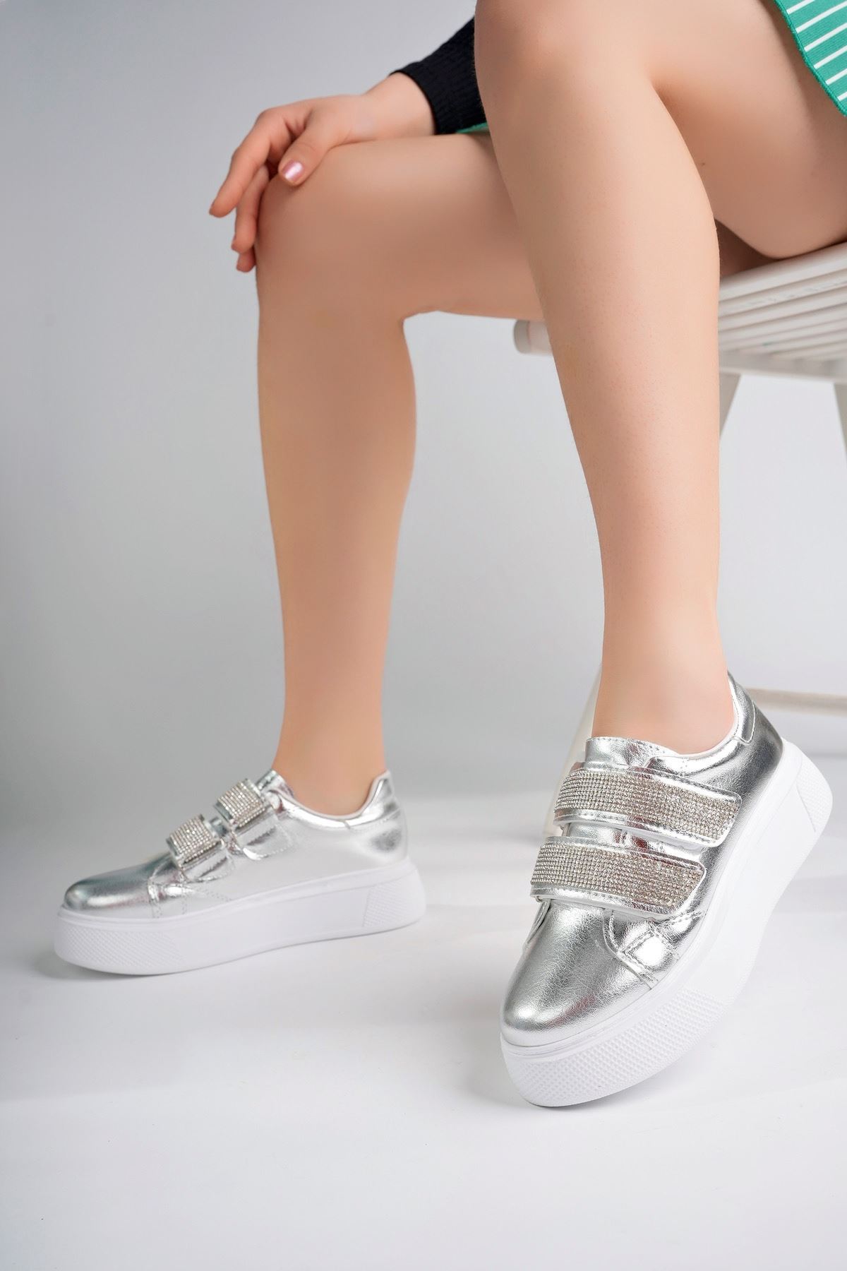 Dolgu Taban Cırtlı Gümüş Kadın Ayakkabı