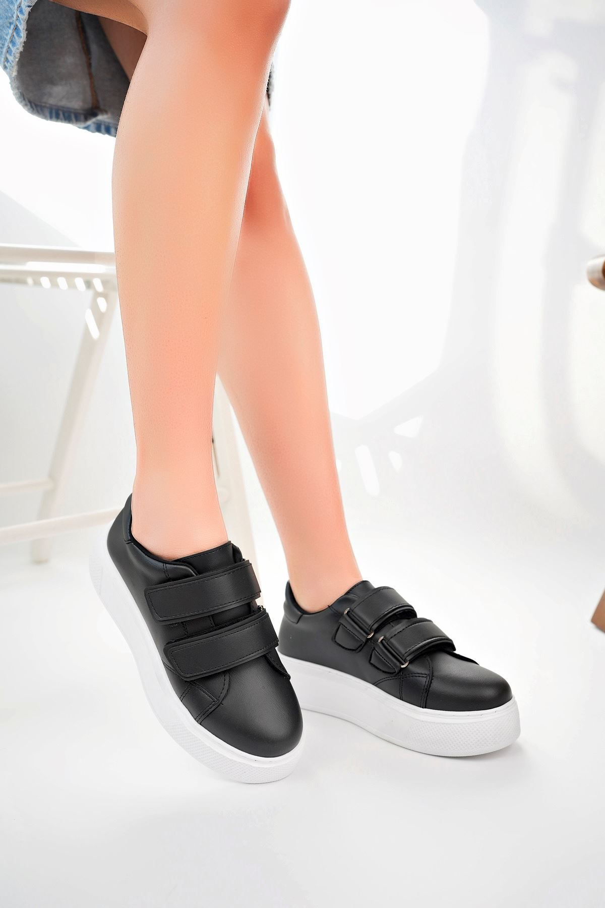 Dolgu Taban Cırtlı Siyah Tabanı Beyaz Kadın Ayakkabı
