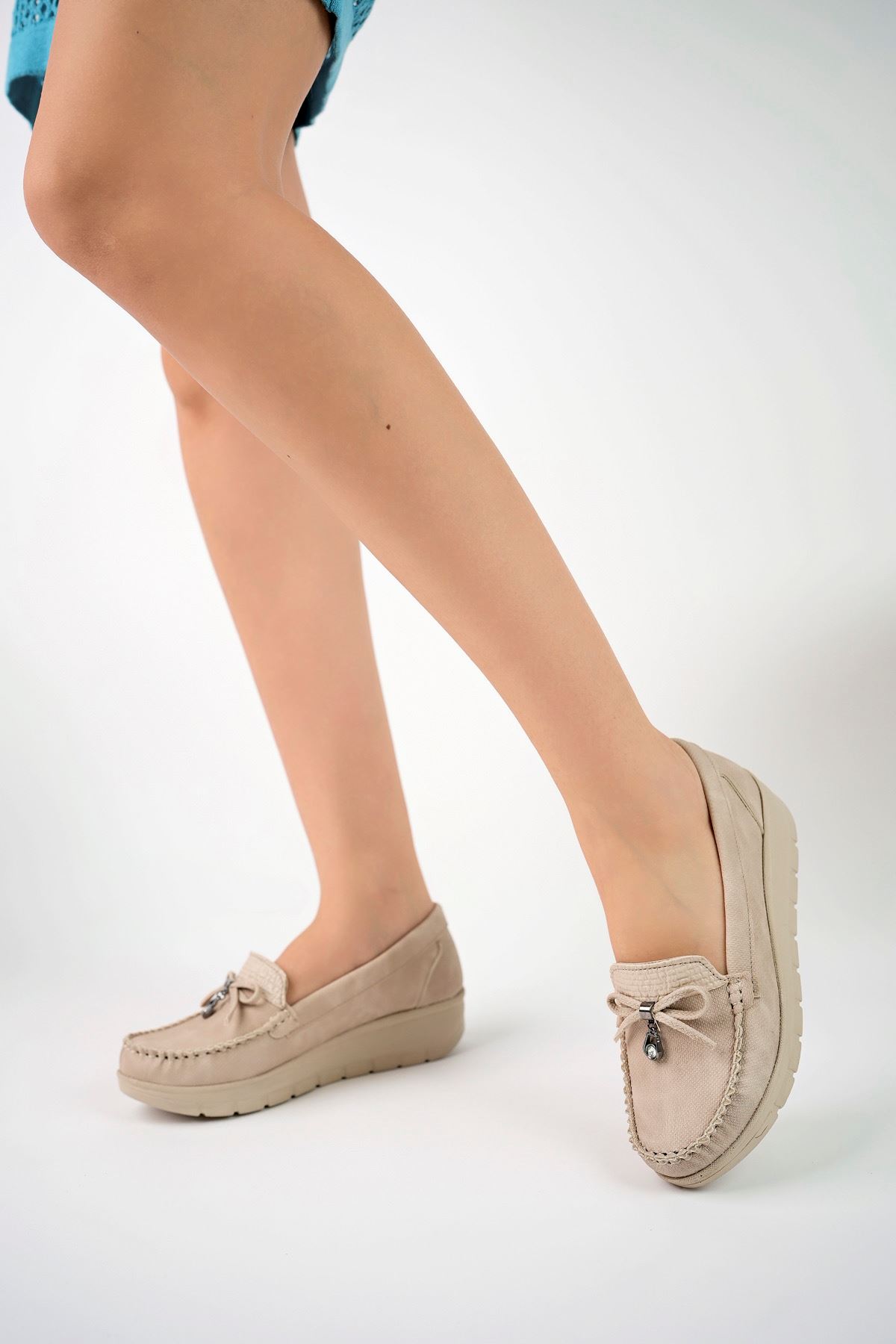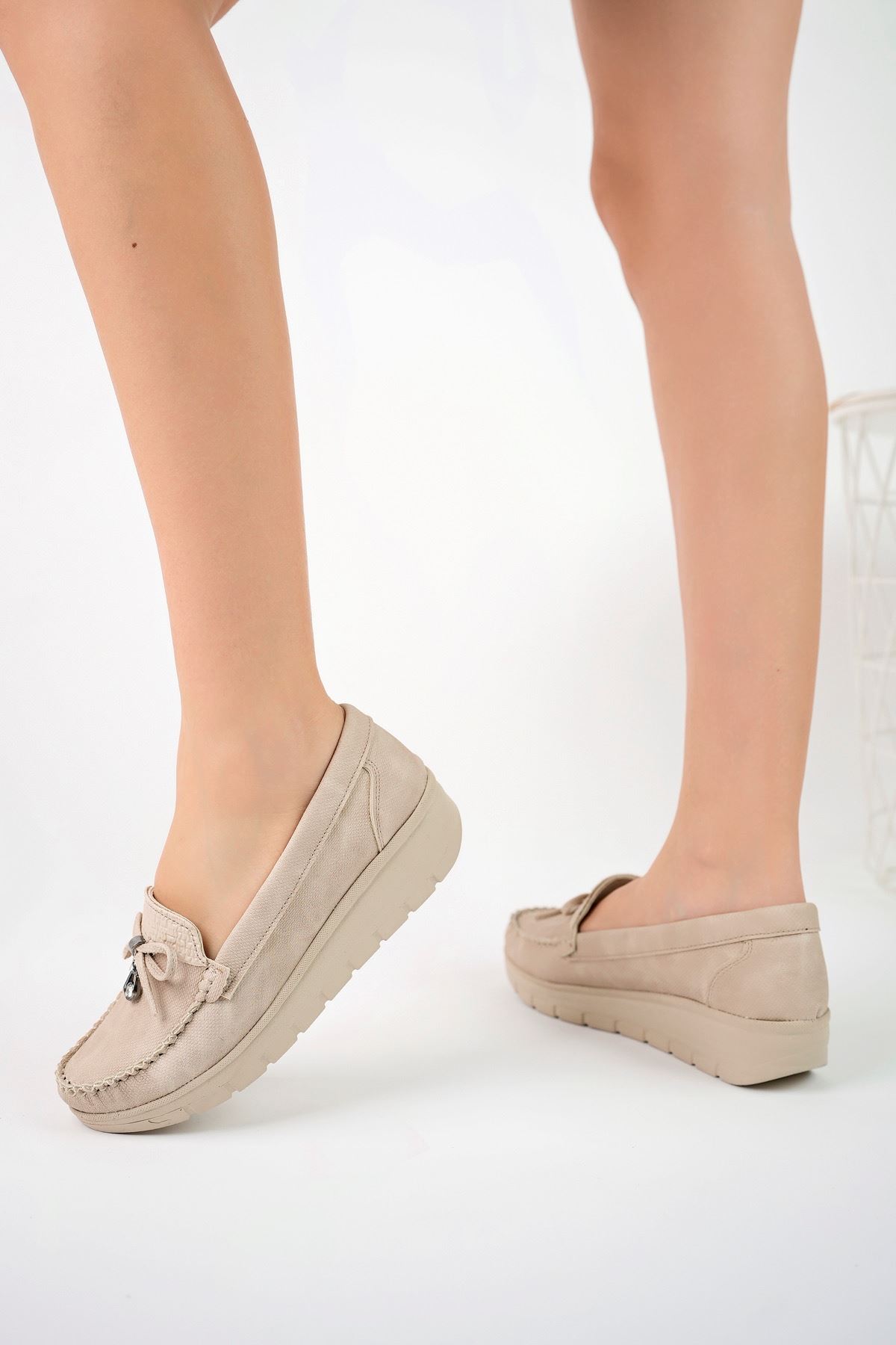 Dolgu Taban Dili Rugan Krem Kot Kadın Ayakkabı
