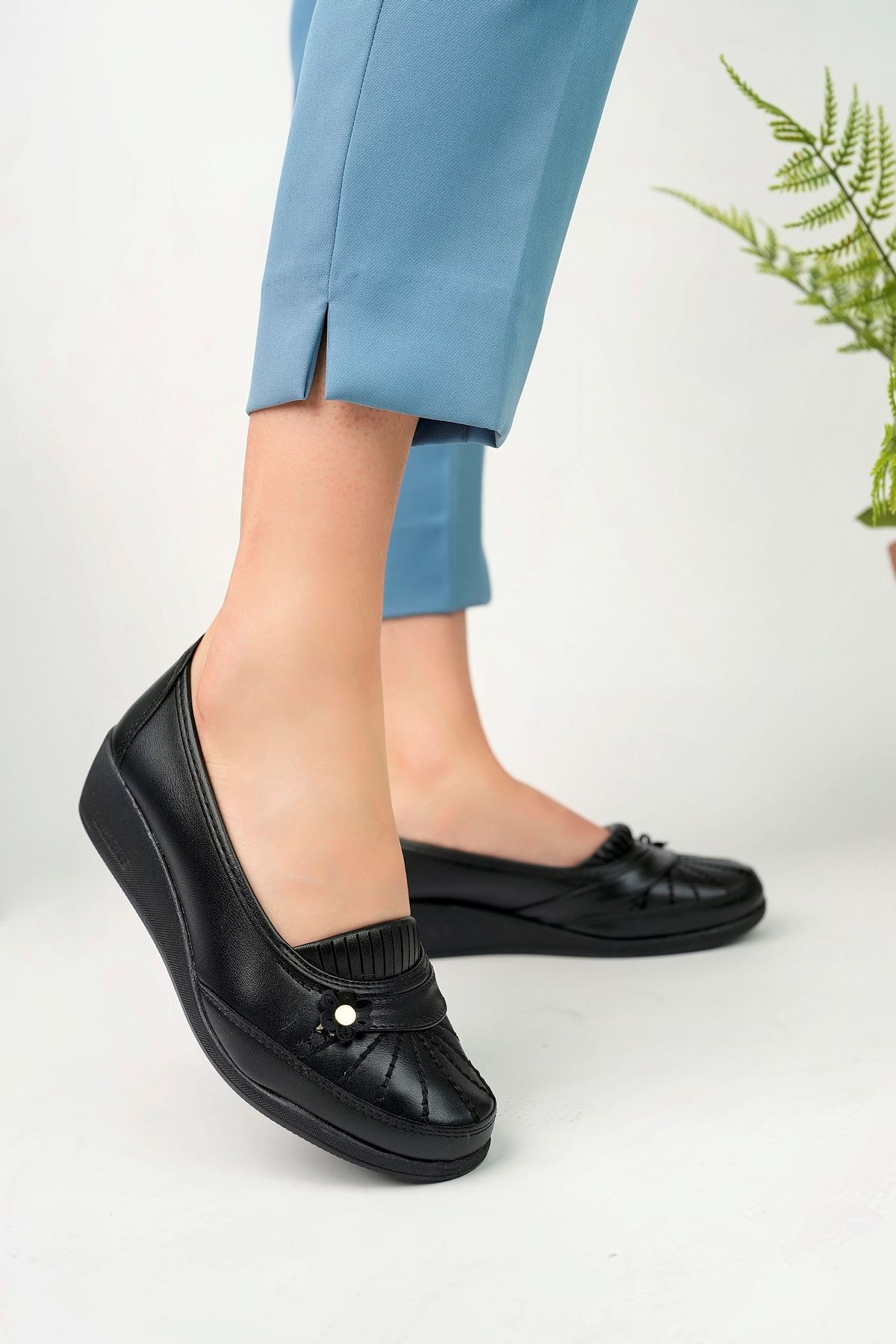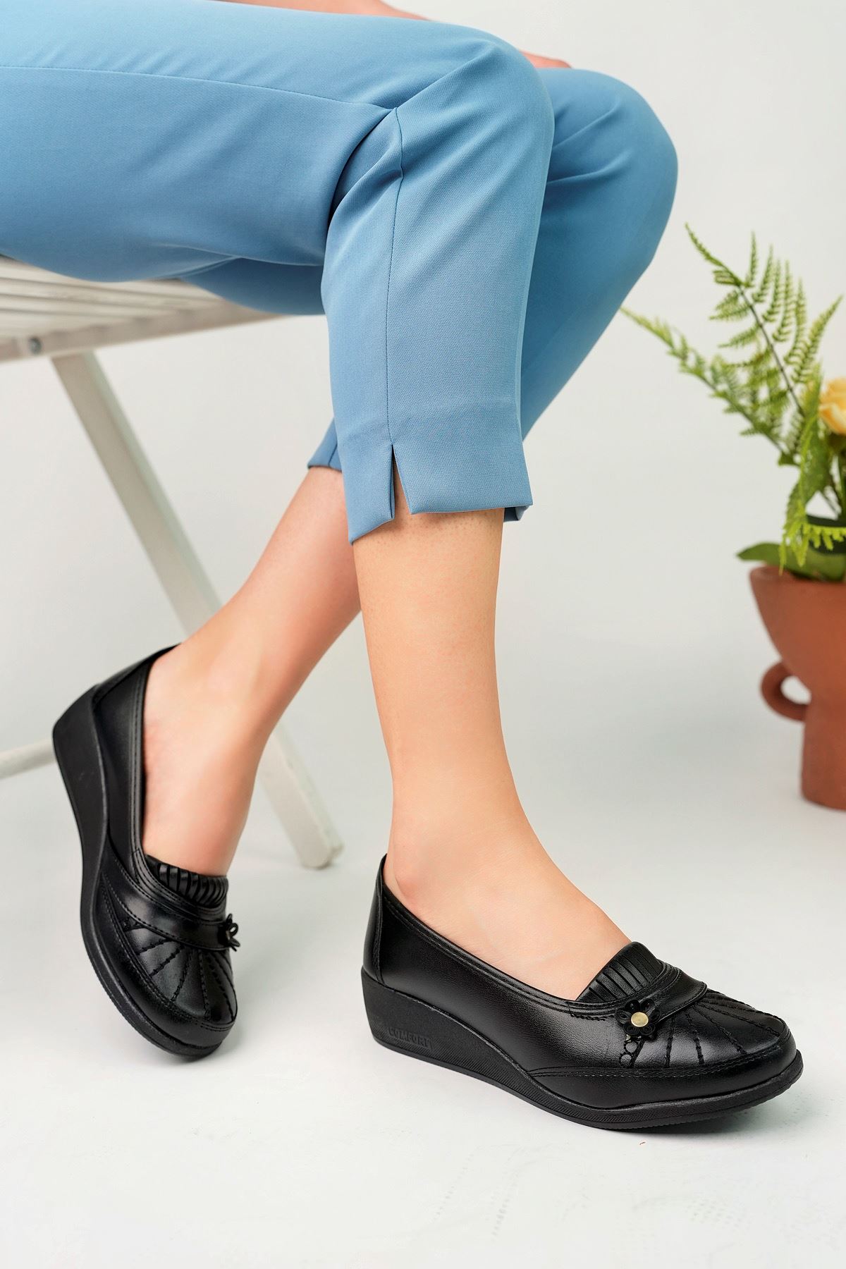 Dolgu Taban Ortopedik Siyah Ayakkabı